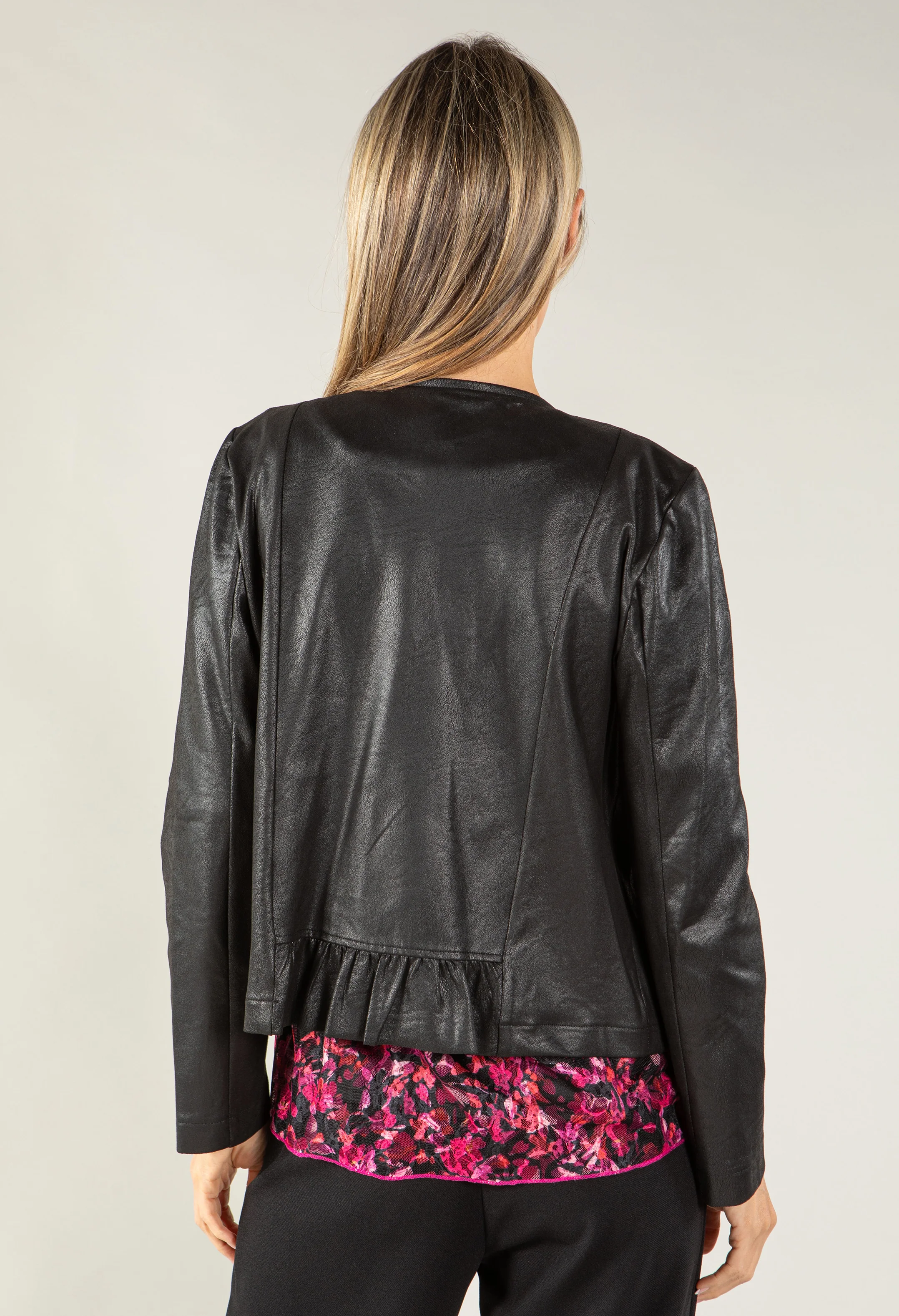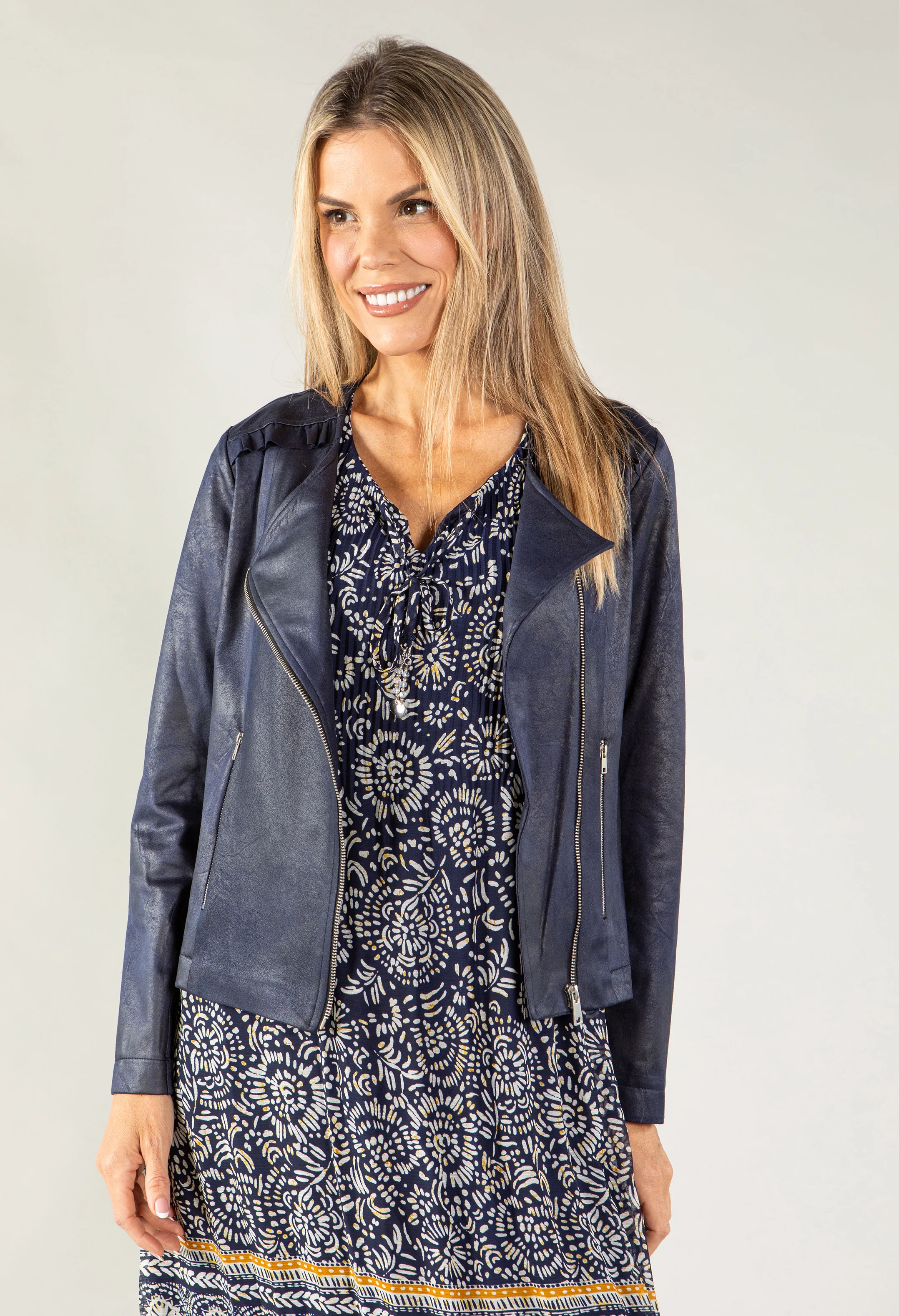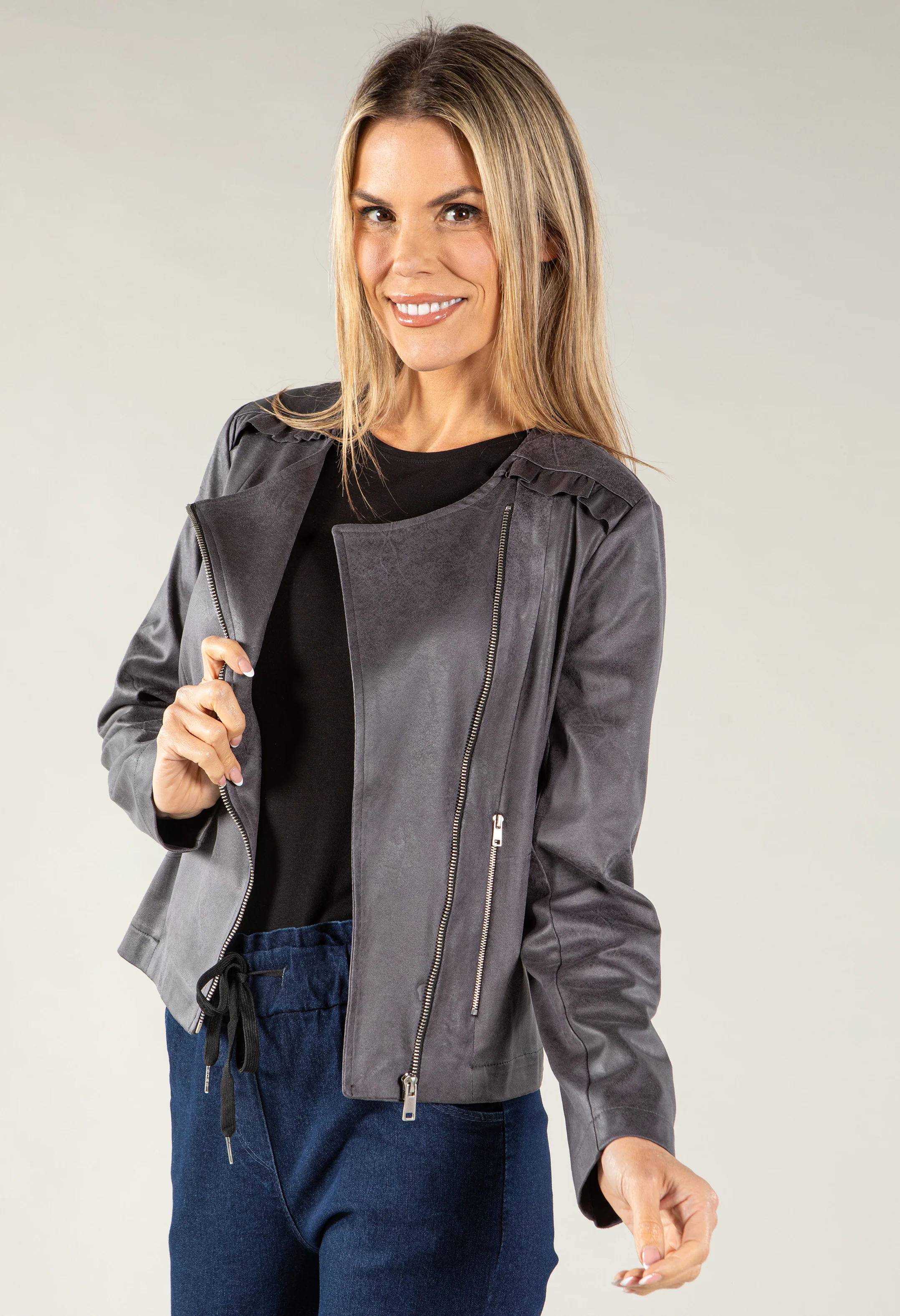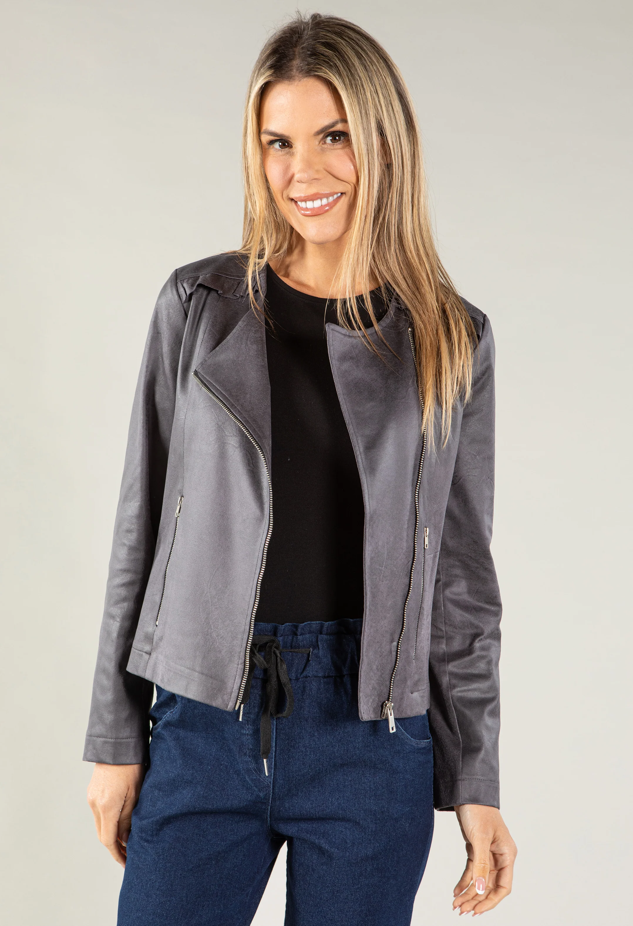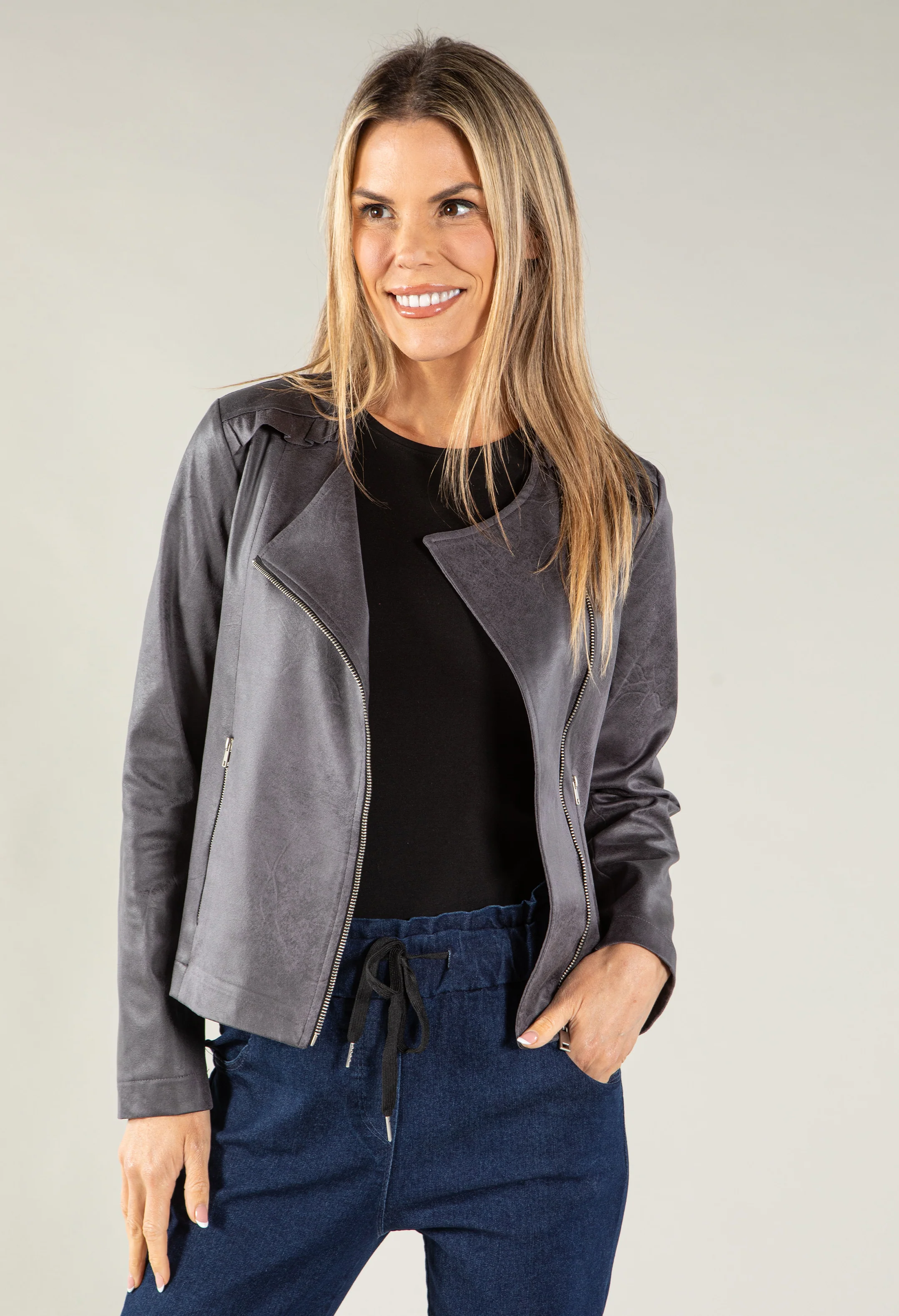Vintage Faux Leather Biker Jacket in Charcoal Grey