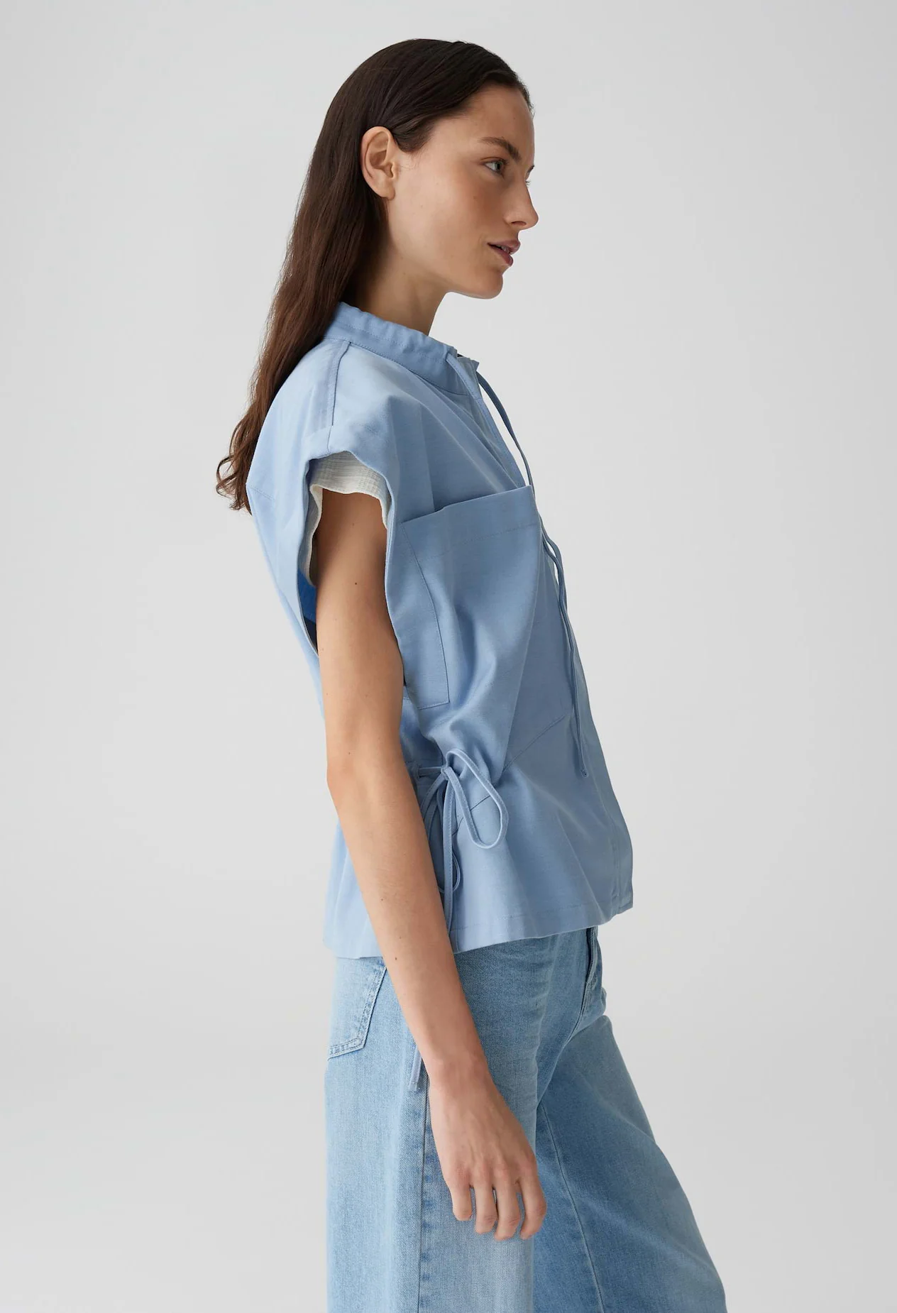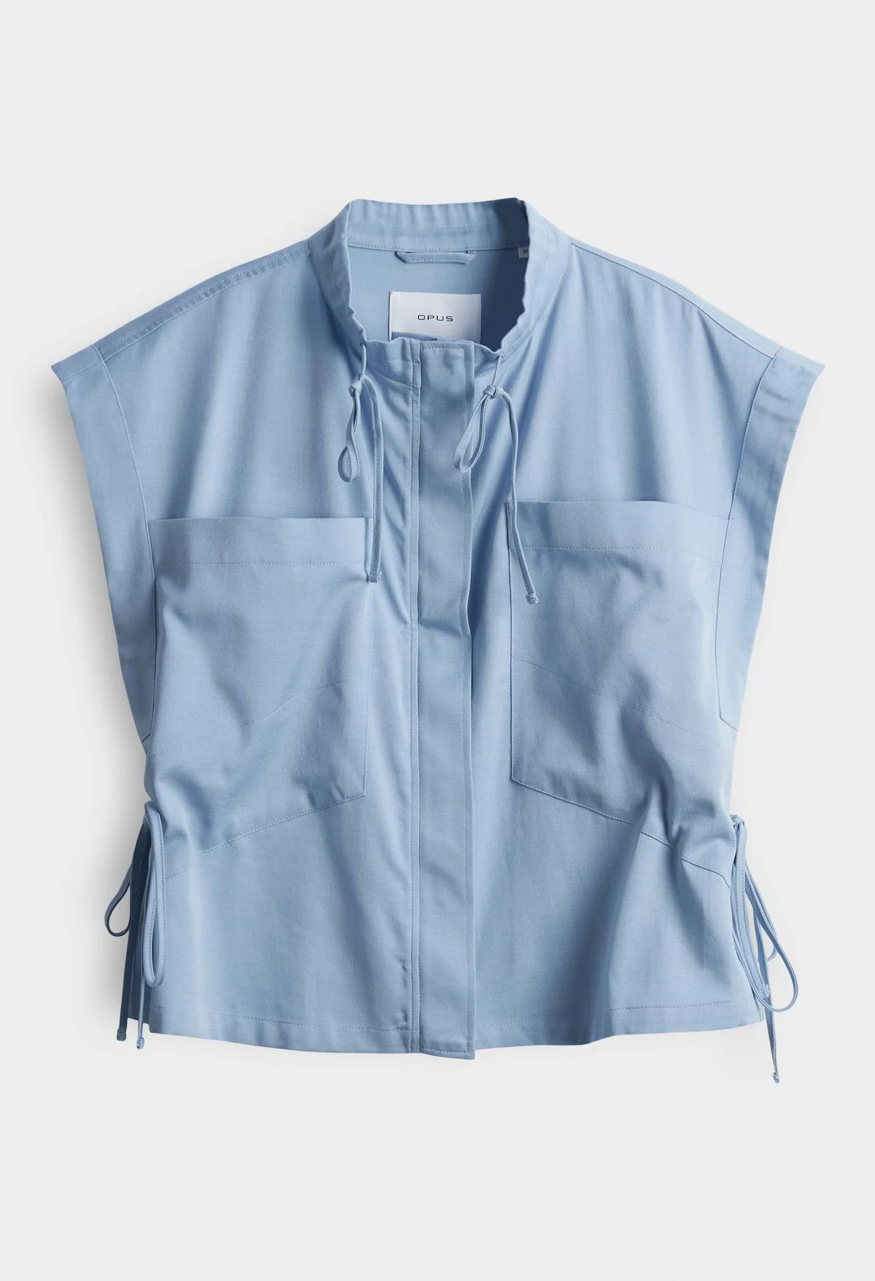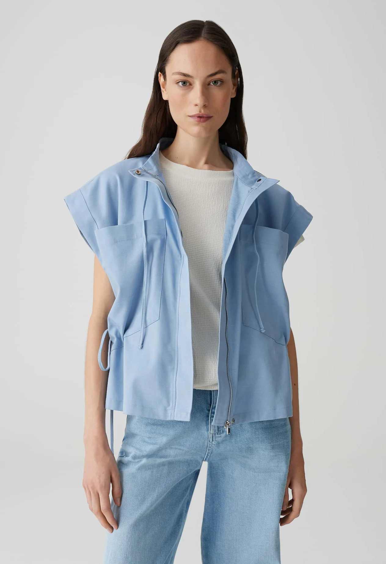 ZIP THROUGH CARDIGAN IN WHITE WITH NAVY STRIPES.