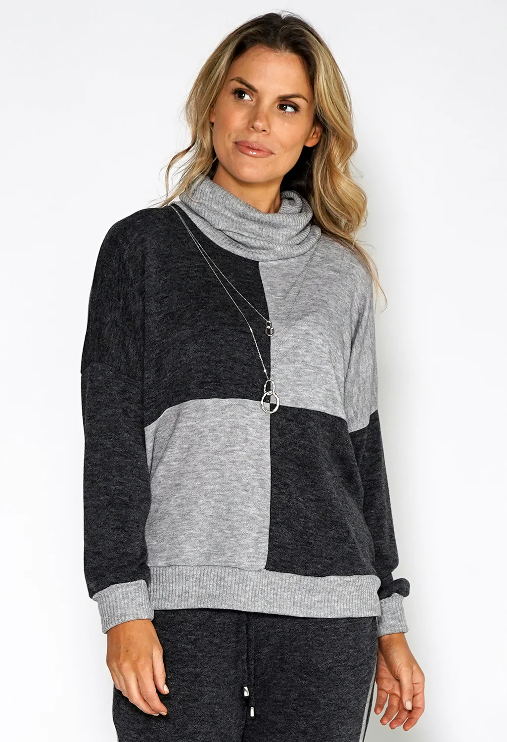 Lux Lounge Grey Knit Jumper with Necklace Detail