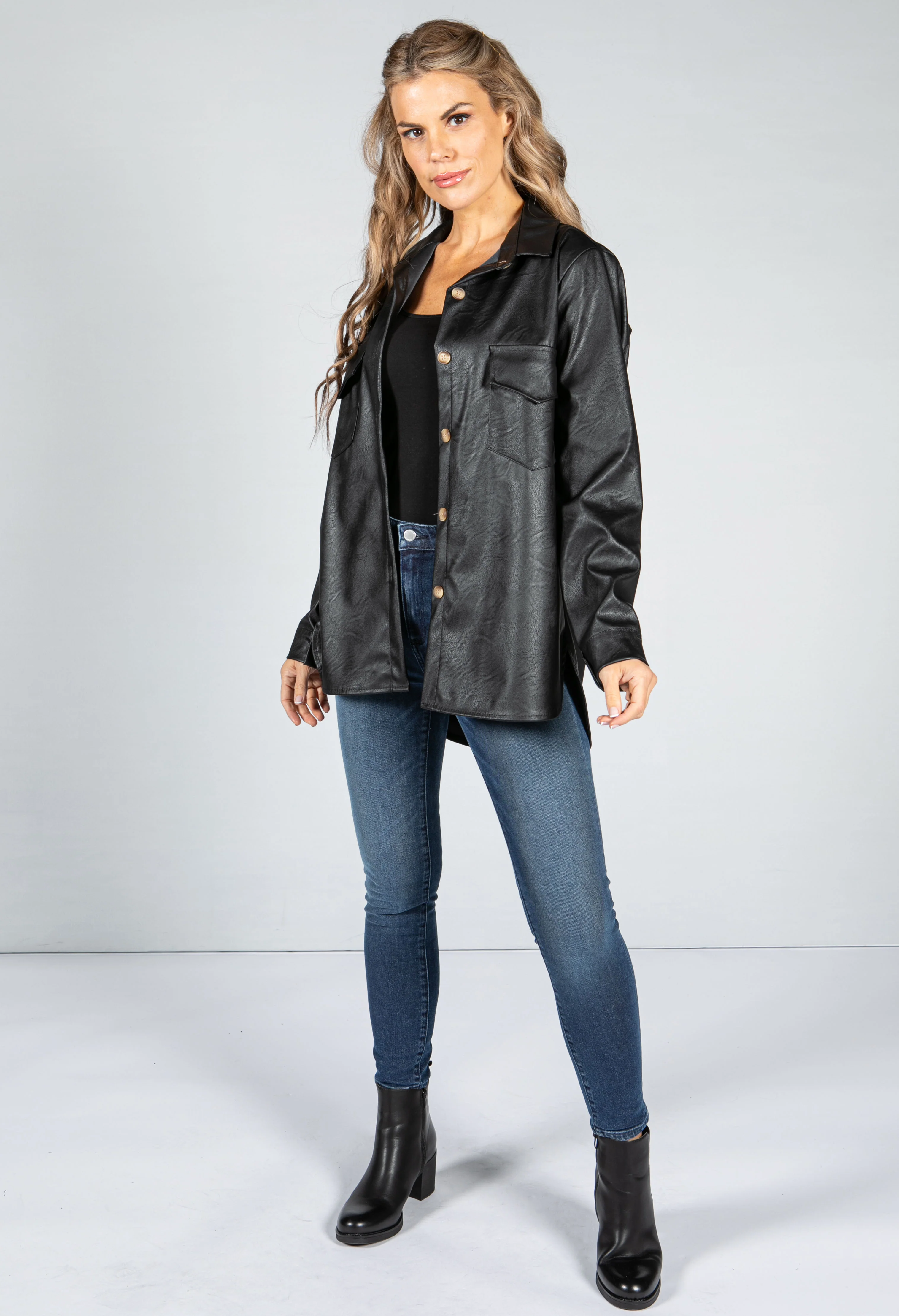 Vintage Faux Leather Biker Jacket in Charcoal Grey