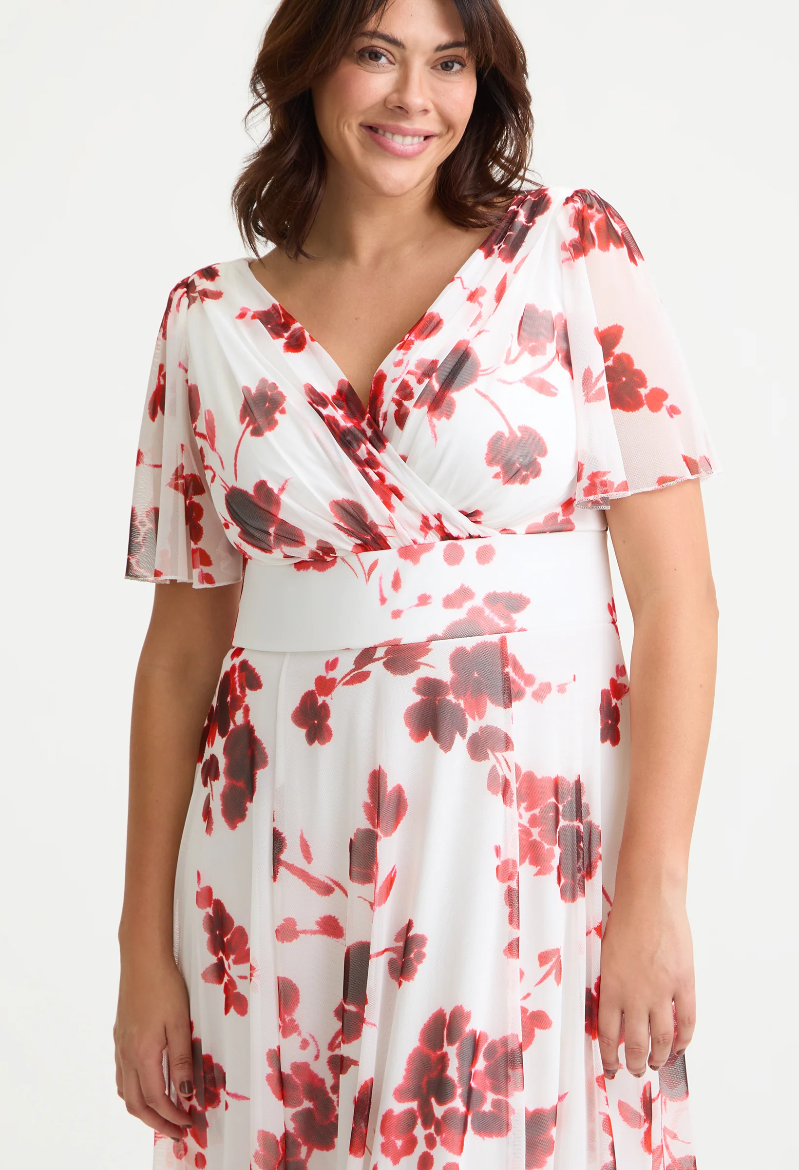 Victoria Angel Sleeve Mesh Midi Curve+ Dress