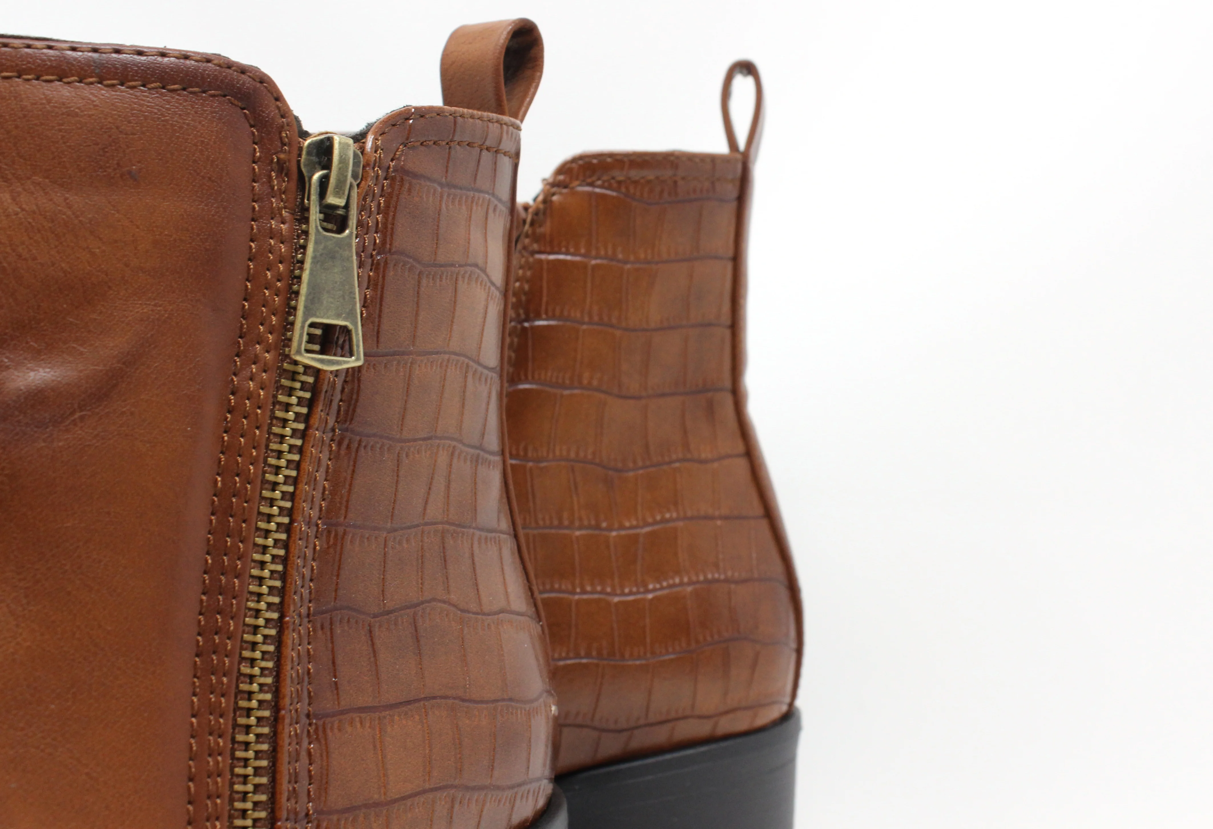 Faux Vintage Leather Jacket with Gold Bead Embellishment