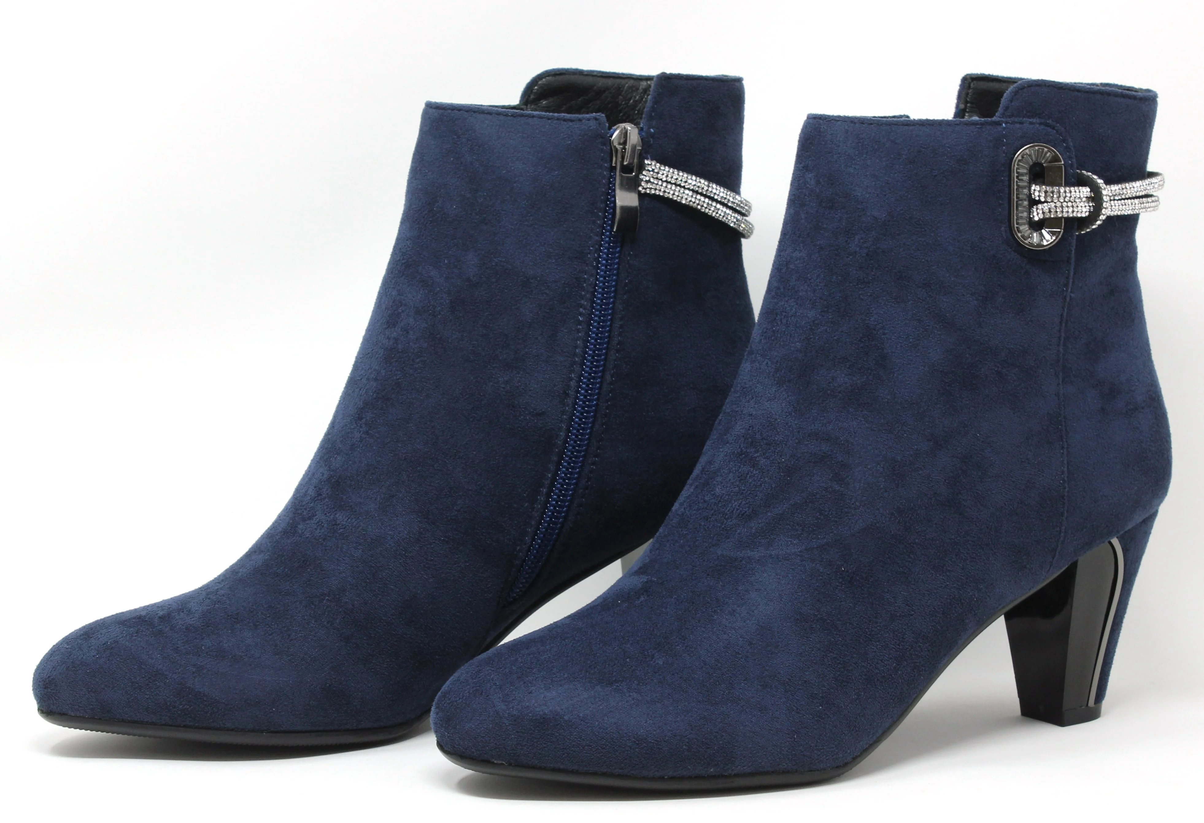 Dk Grey Microfibre Plain Front, Side Zip Block Heel Ankle Boot