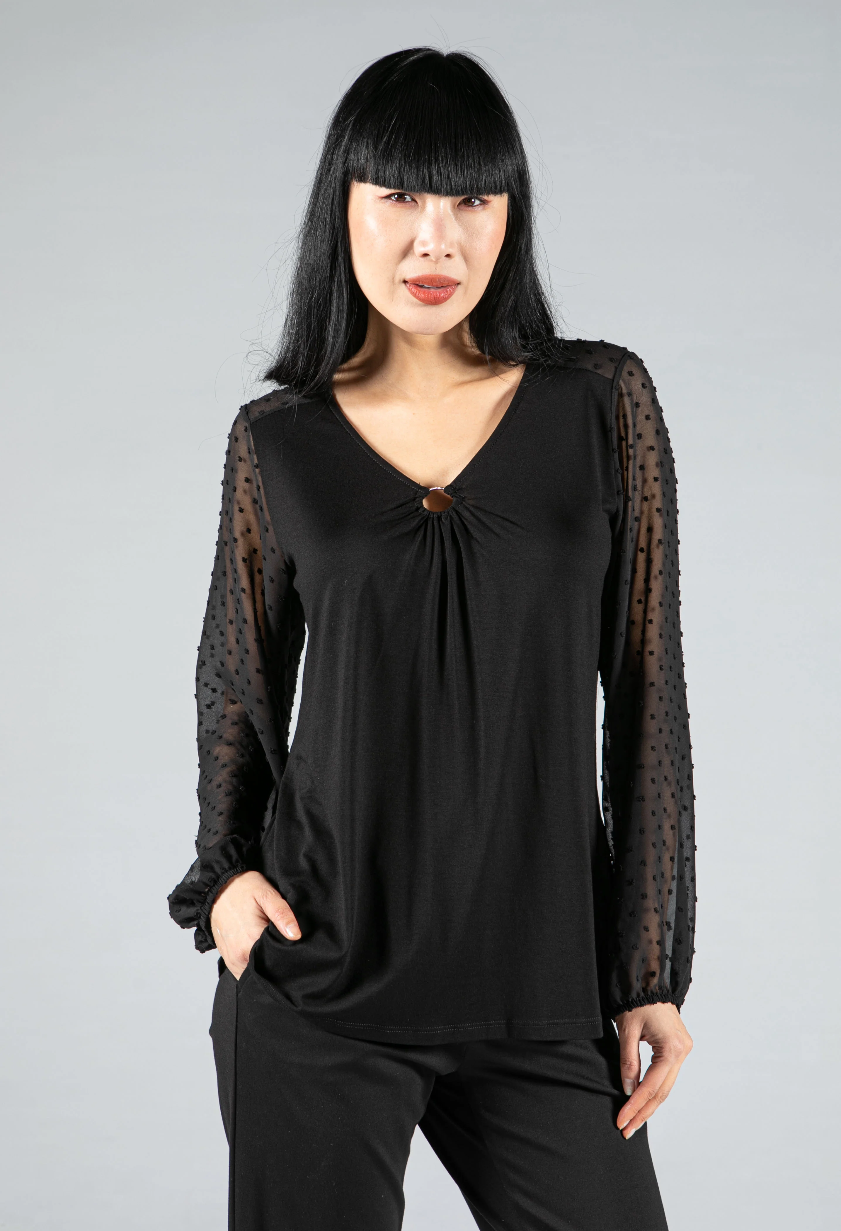 Dot Embroidery Ring Detail Blouse