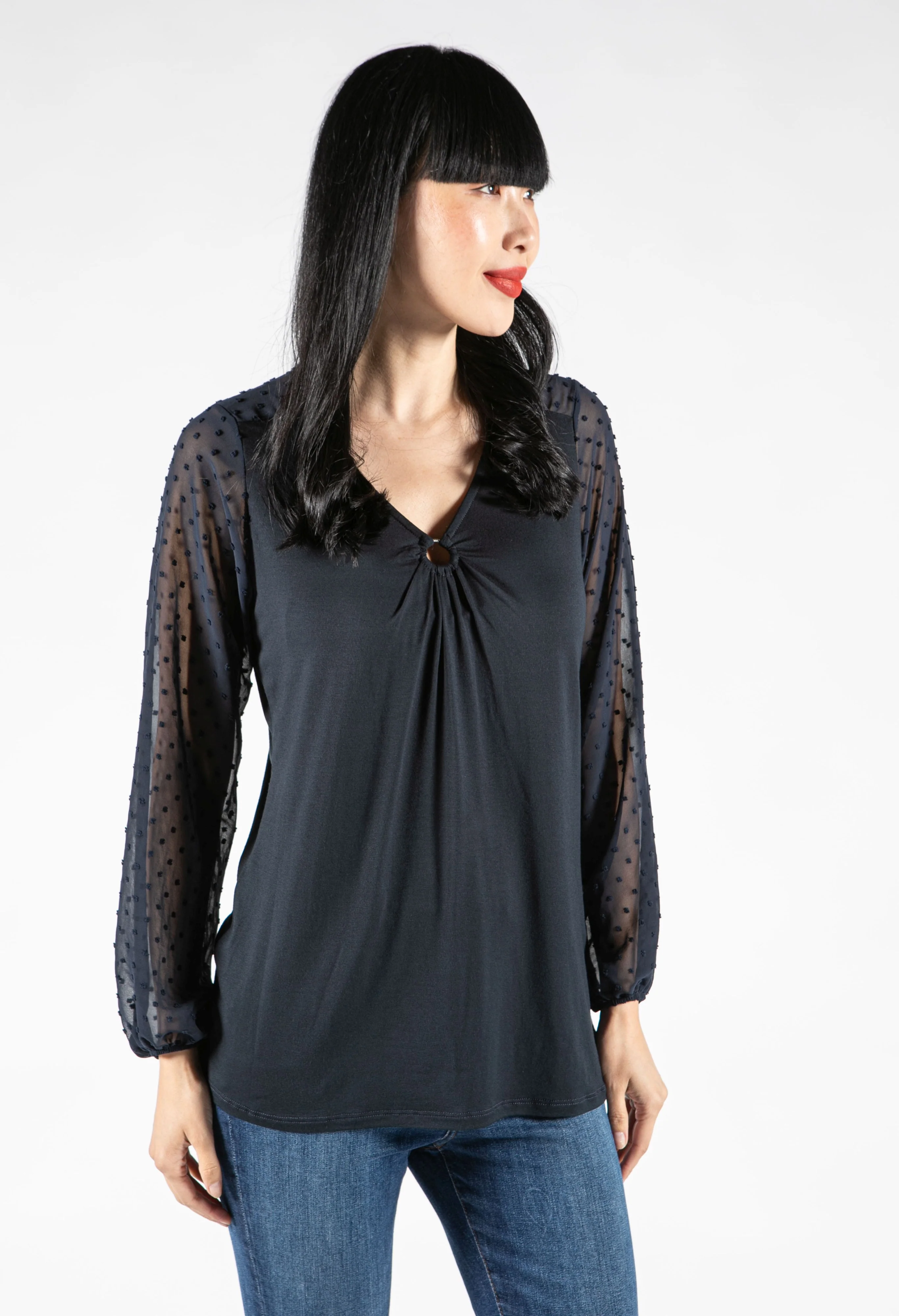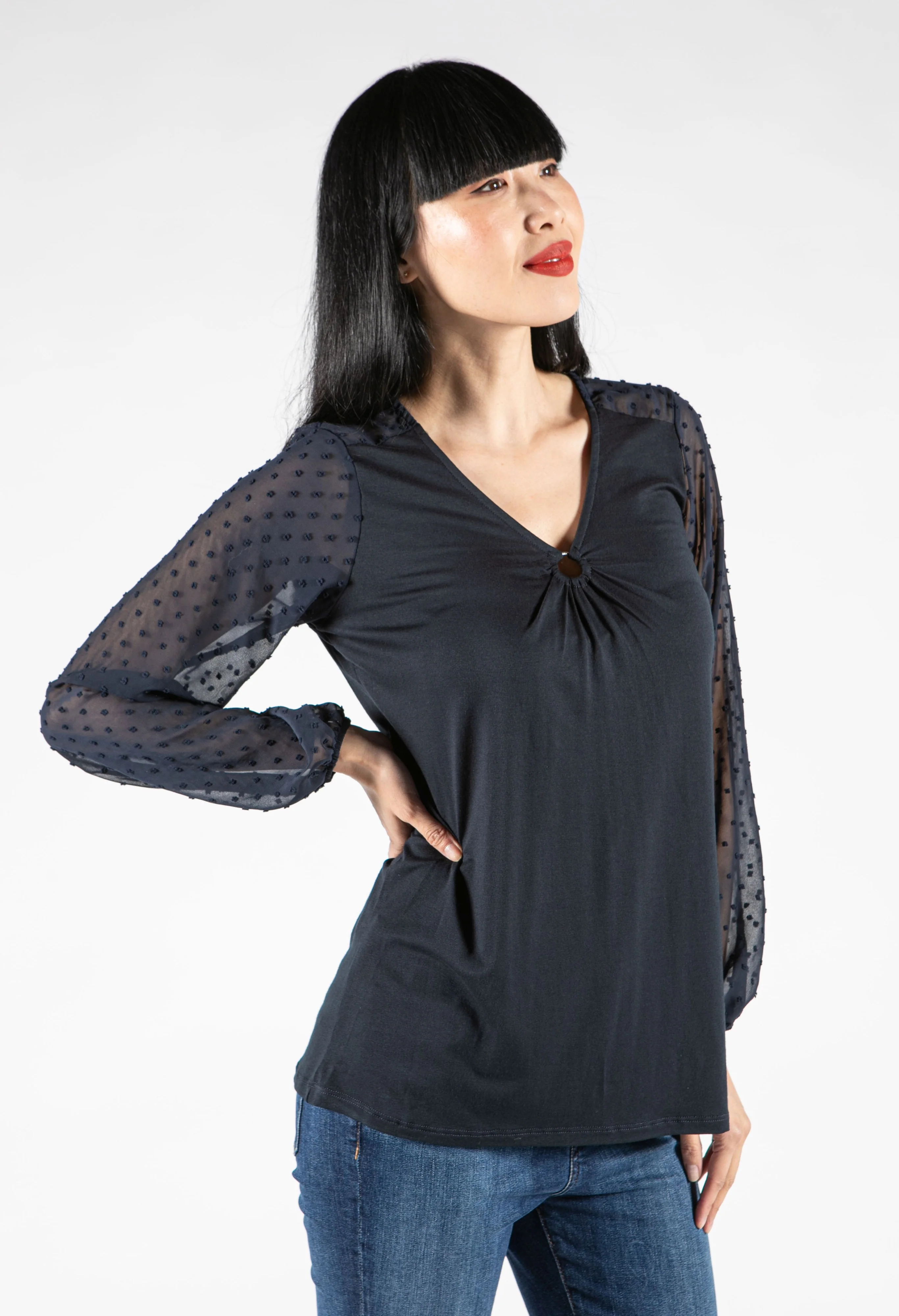 Dot Embroidery Detail Top