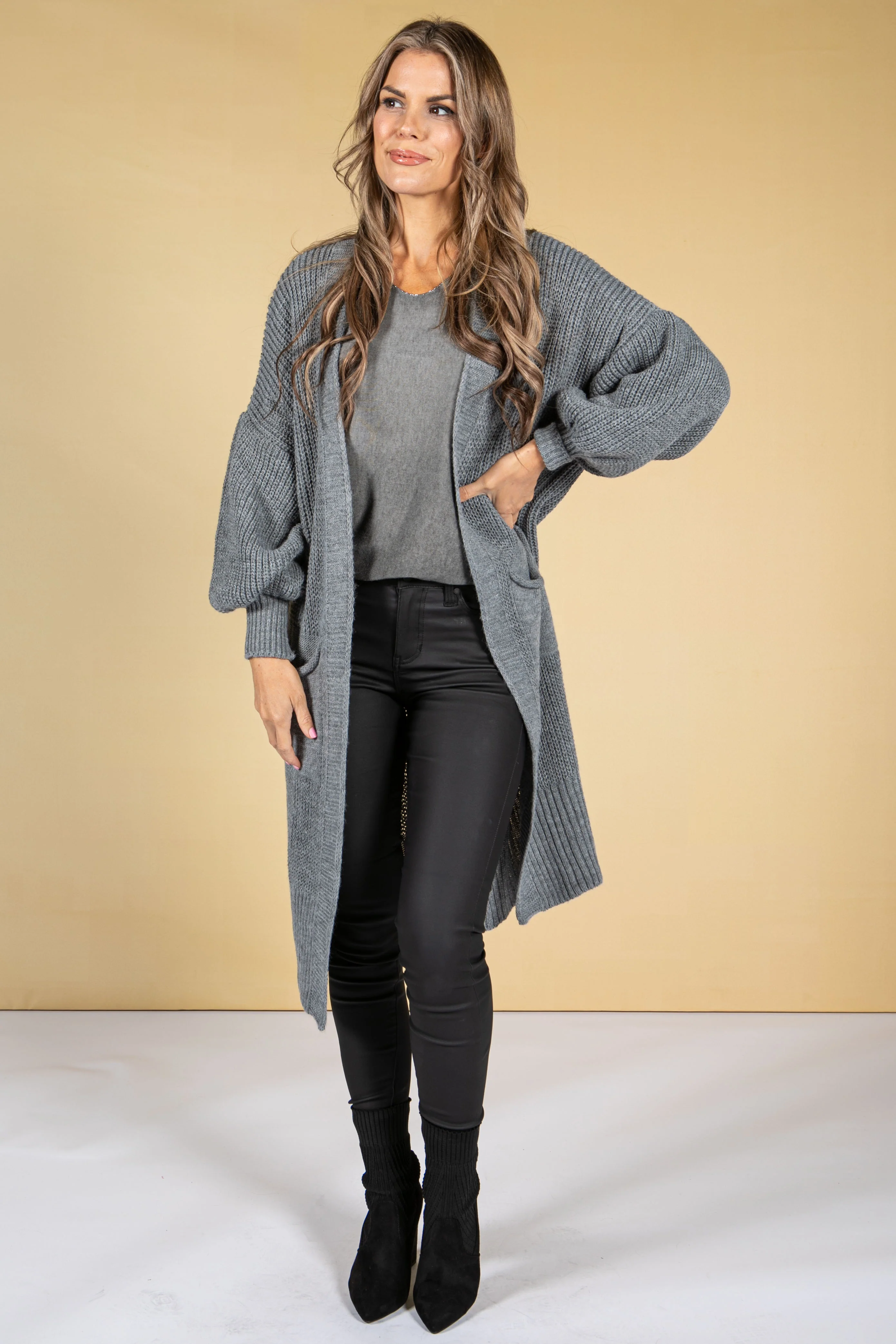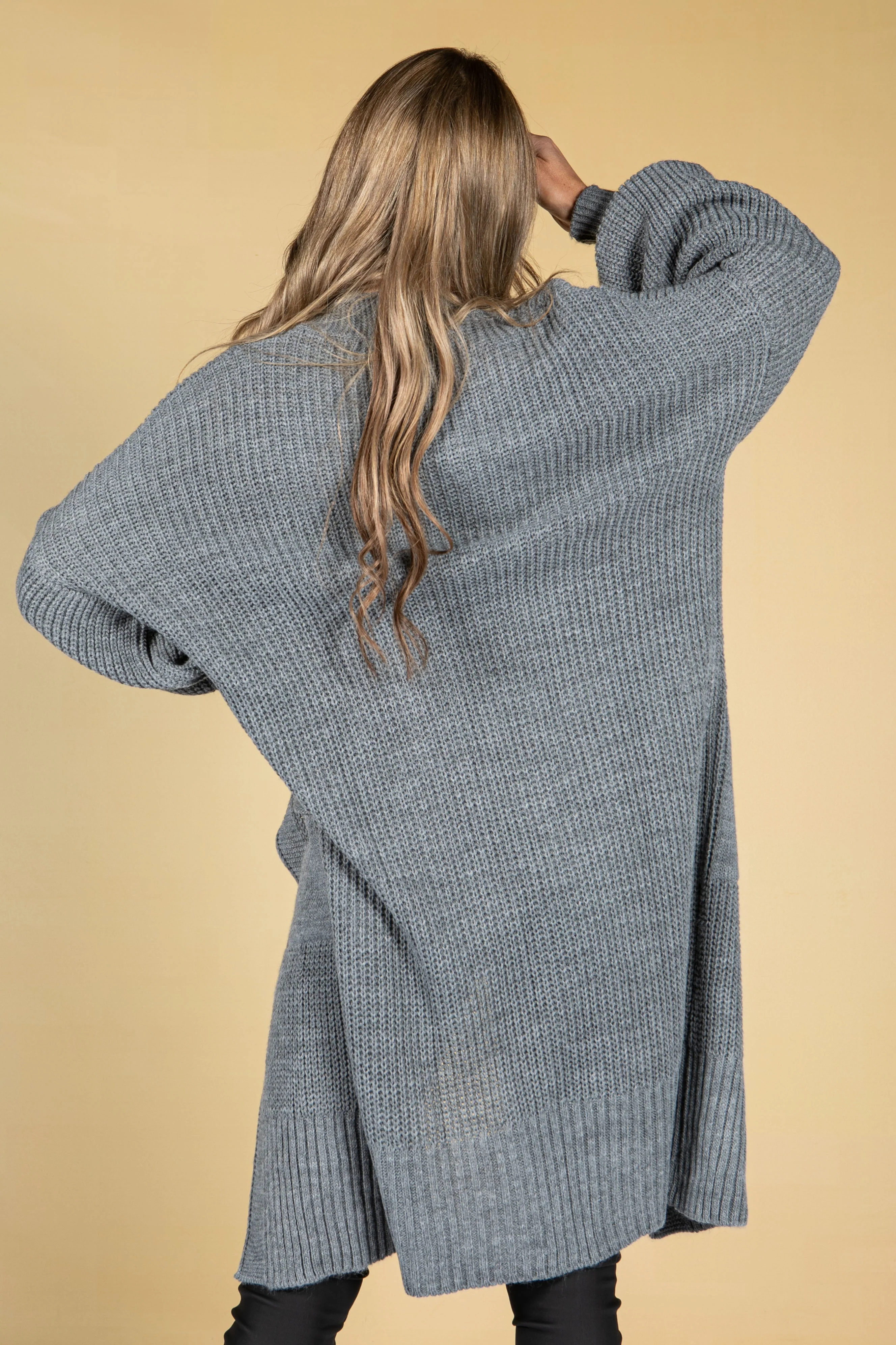 Cosy Chunky Knit Longline Cardigan in Cool Grey