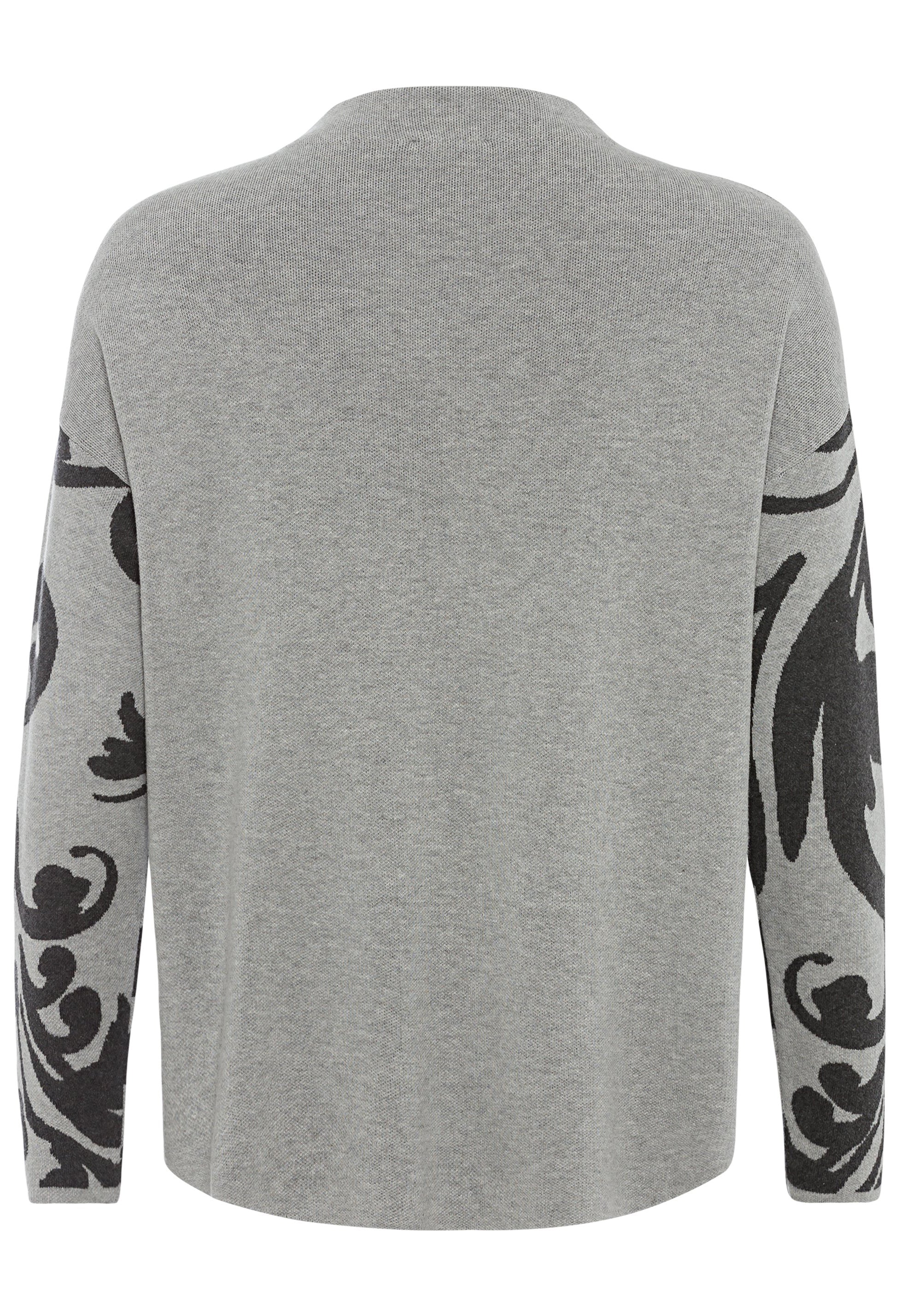 Cotton Blend Long Sleeve Funnel Neckl Intarsia Sweater