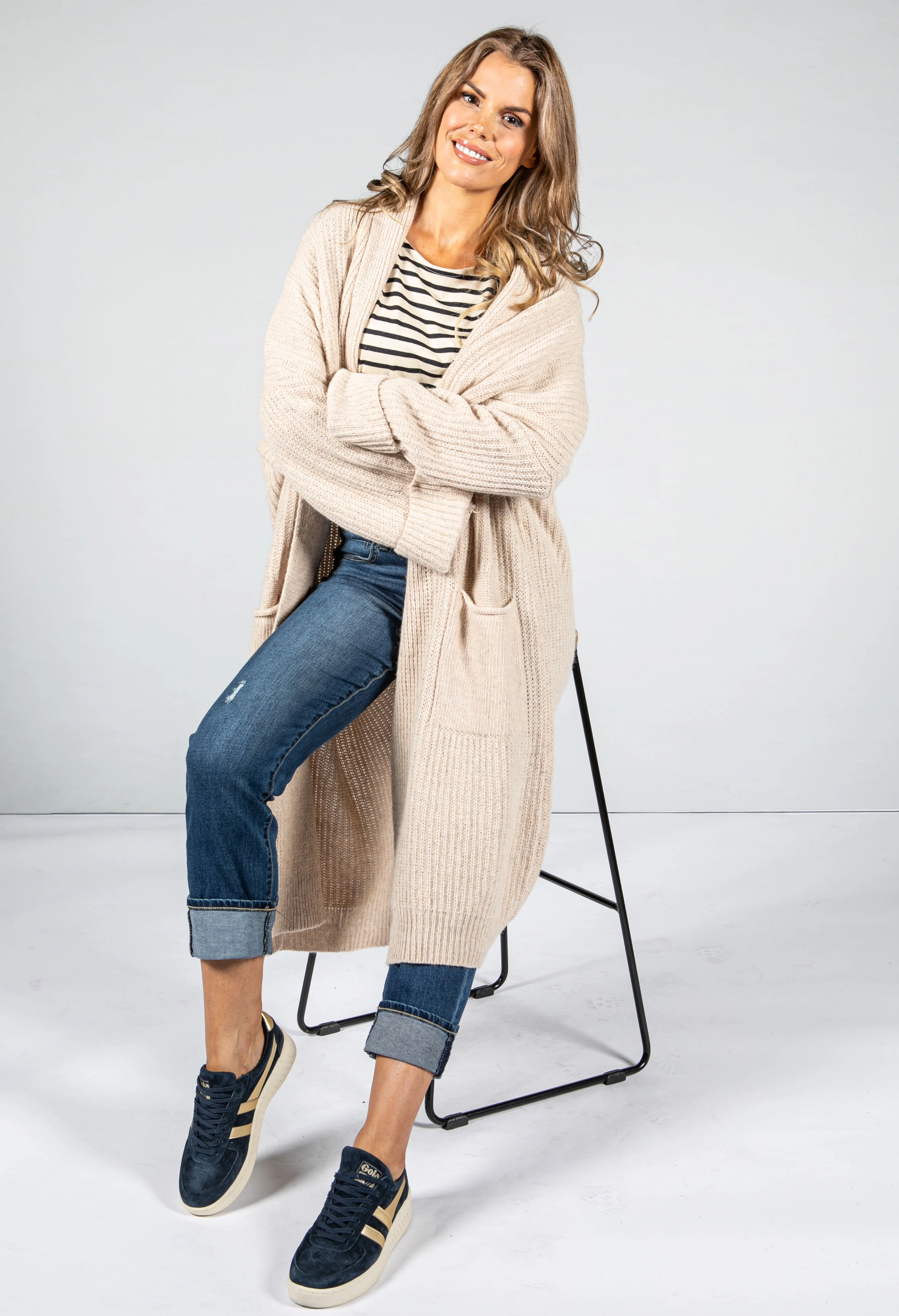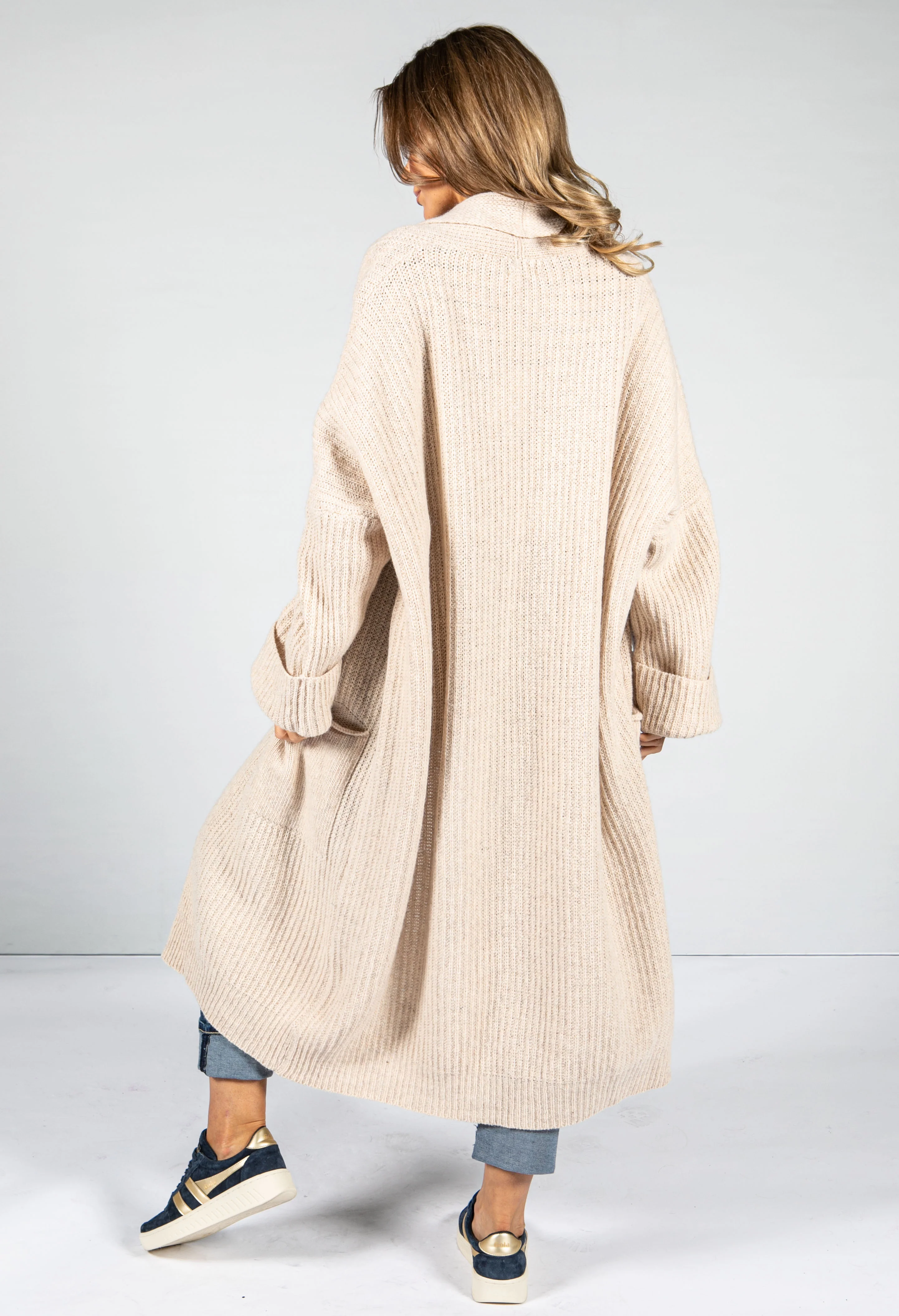 COSY CHUNKY KNIT LONGLINE CARDIGAN IN Sand