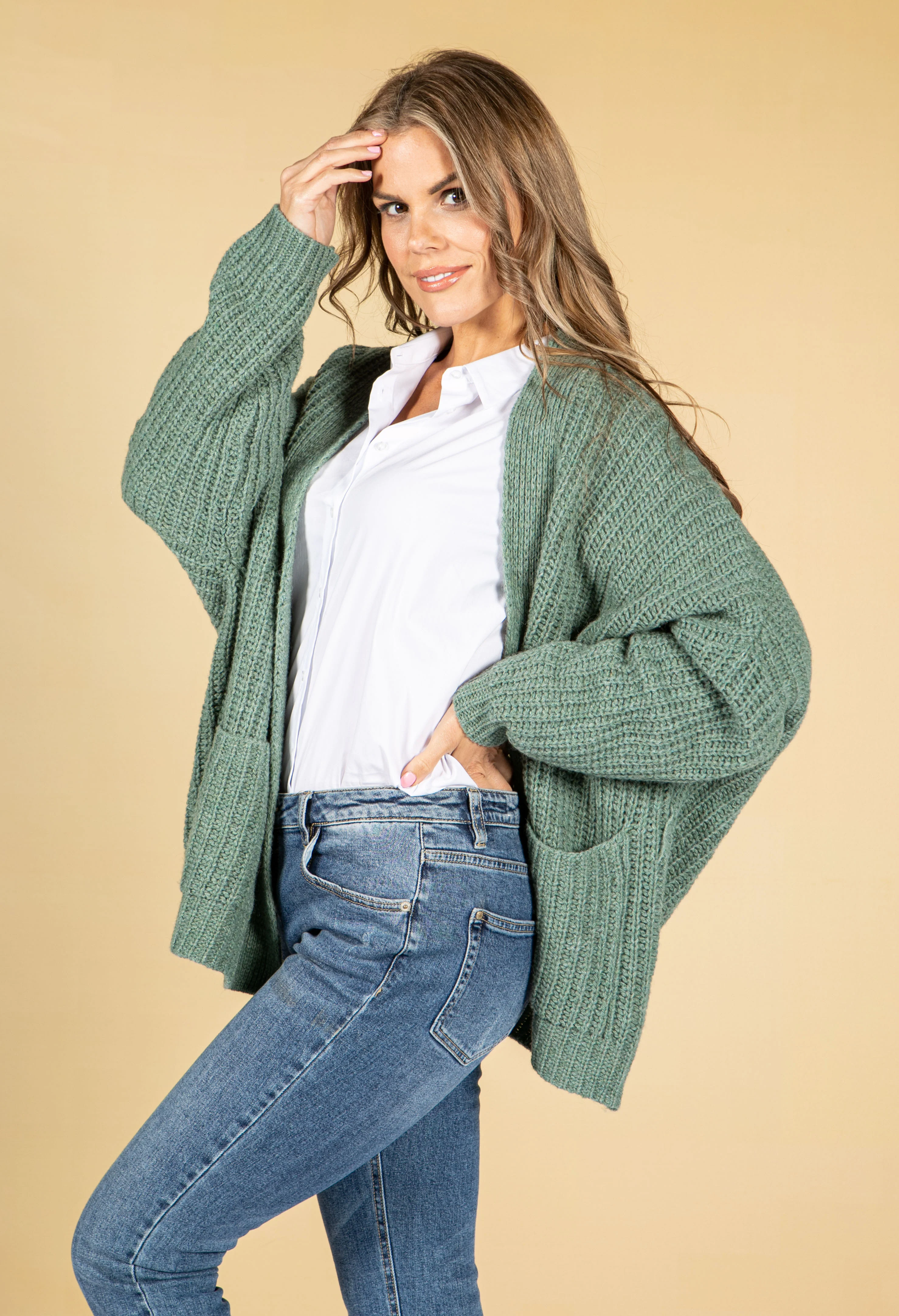 Cosy Chunky Knit Cardigan in Sage
