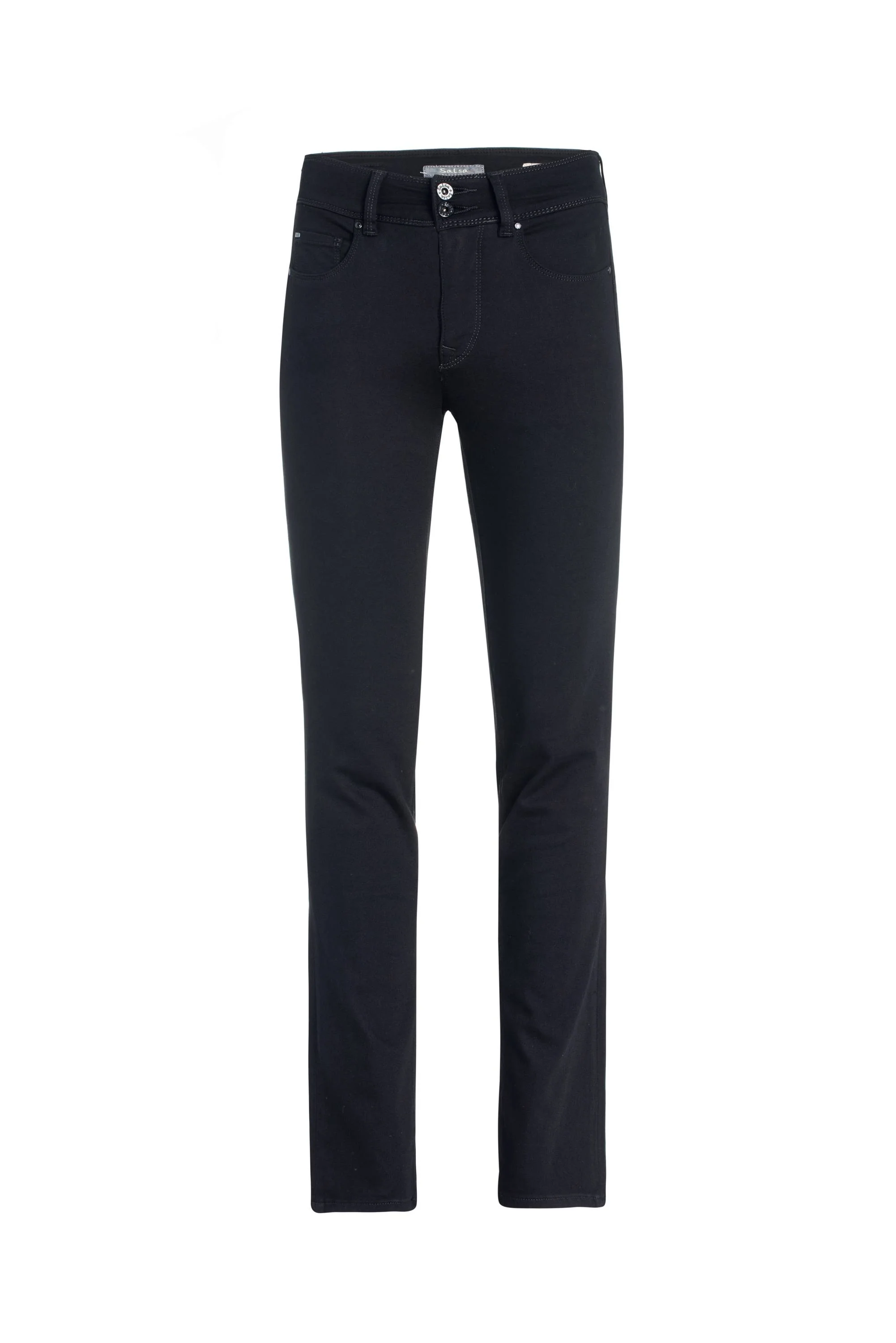 Black Pull Up Trousers with Rhinestone Pocket Details