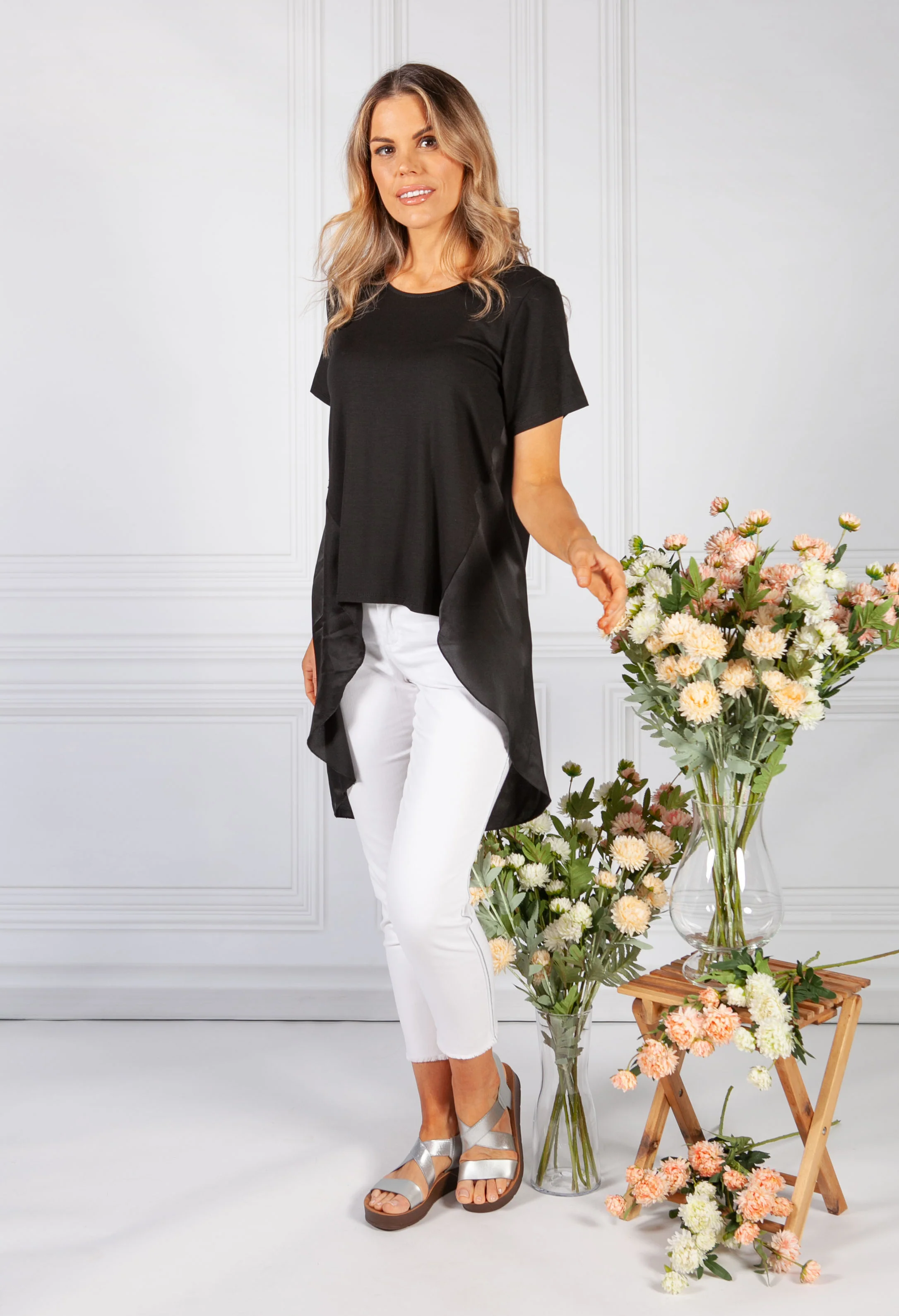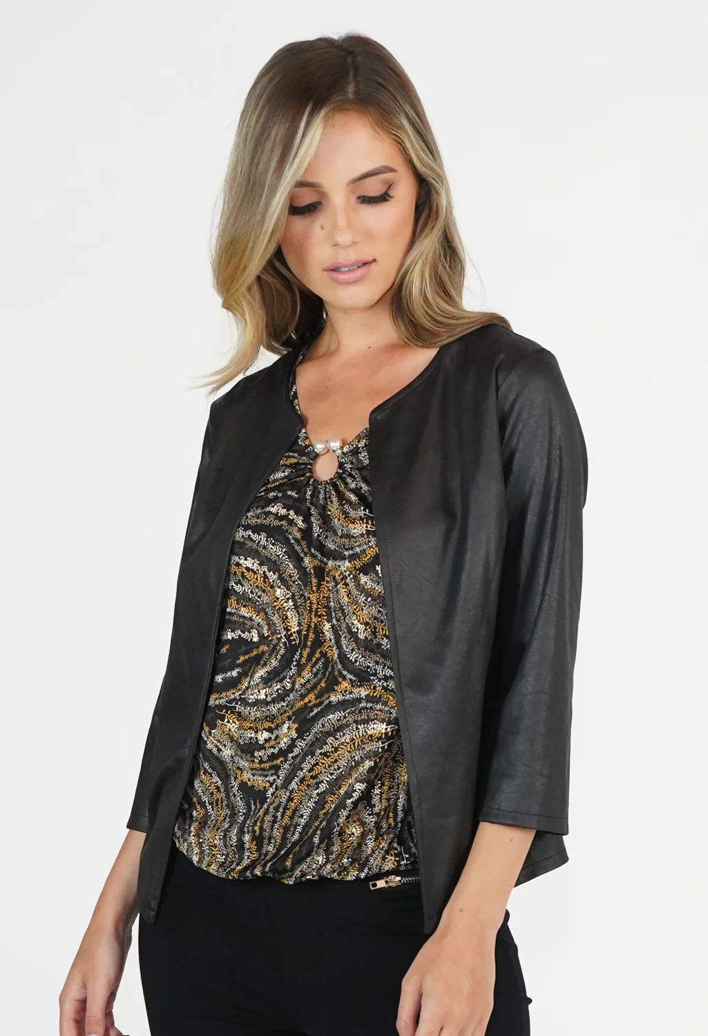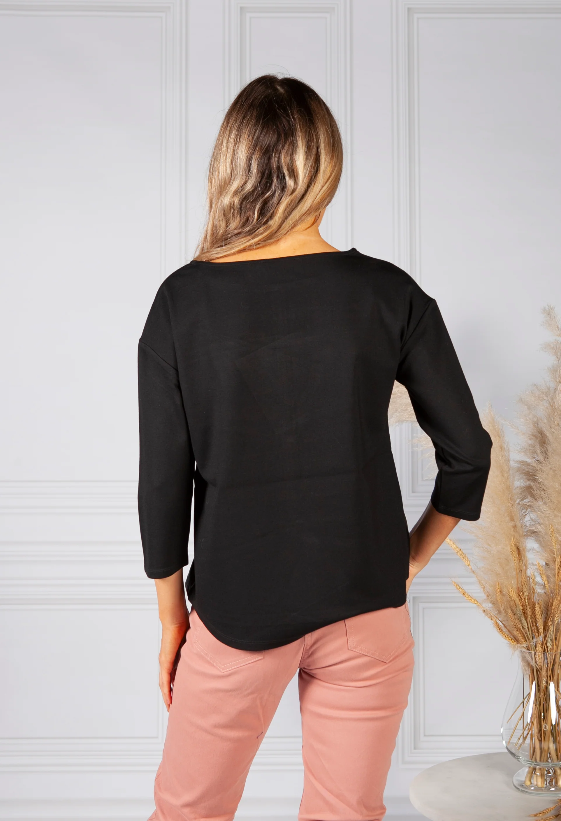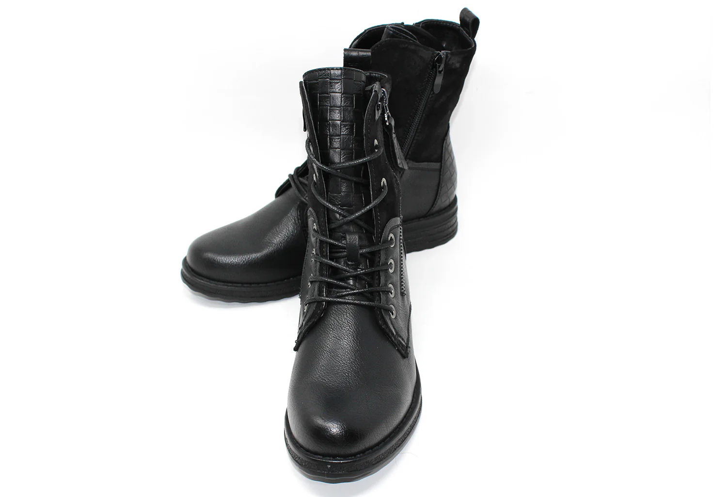 Black Leather Look Plain Front, Side Zip Block Heel Ankle Boot