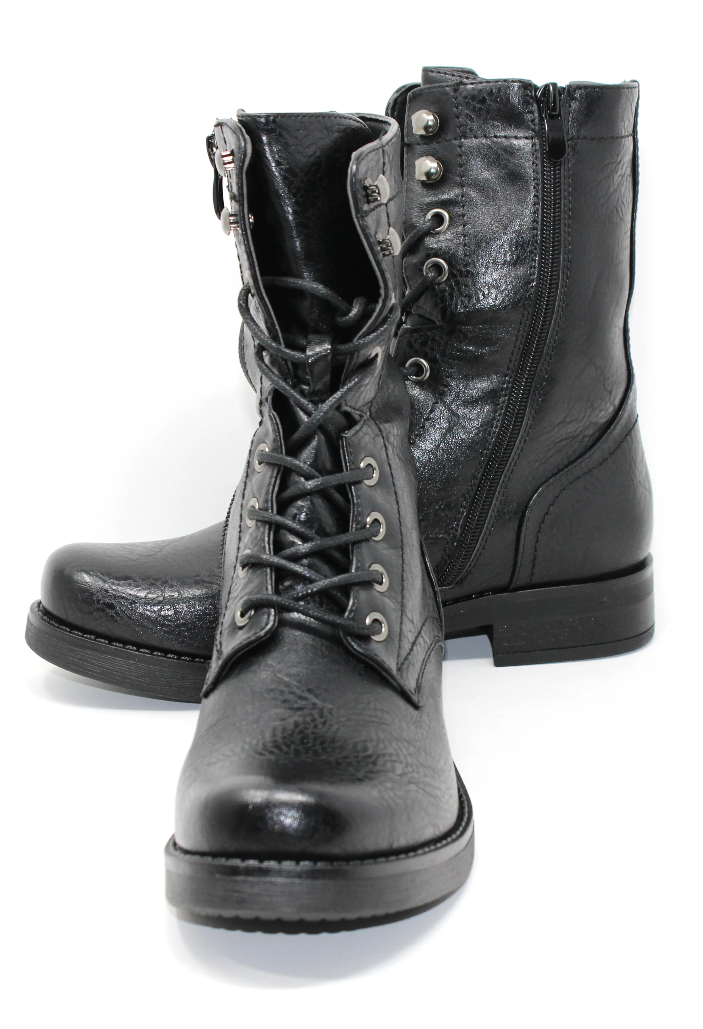 Black Leather Look Side Zip Plain Front Long Leg Boot
