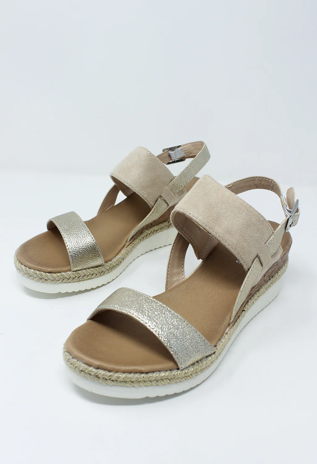 Beige Lightweight Ankle Strap Wedge Sandal-1