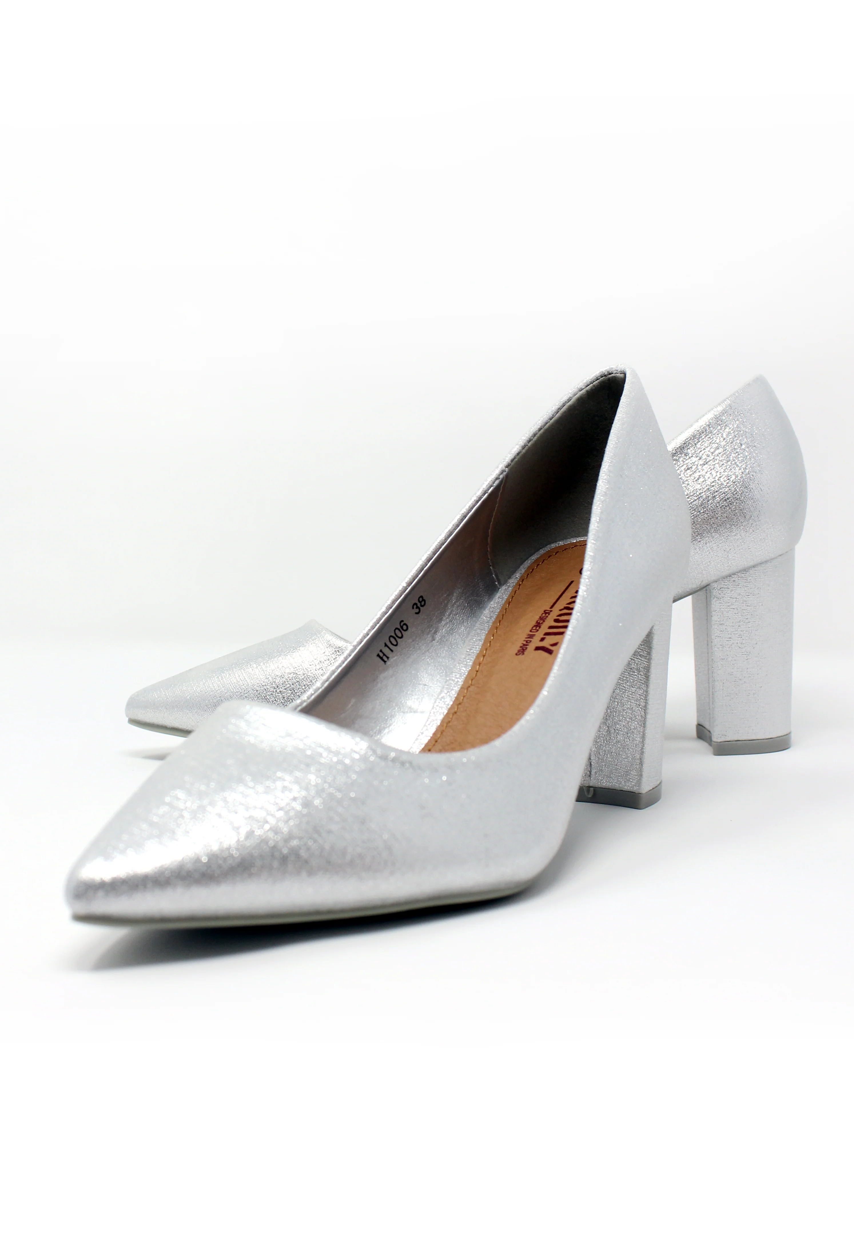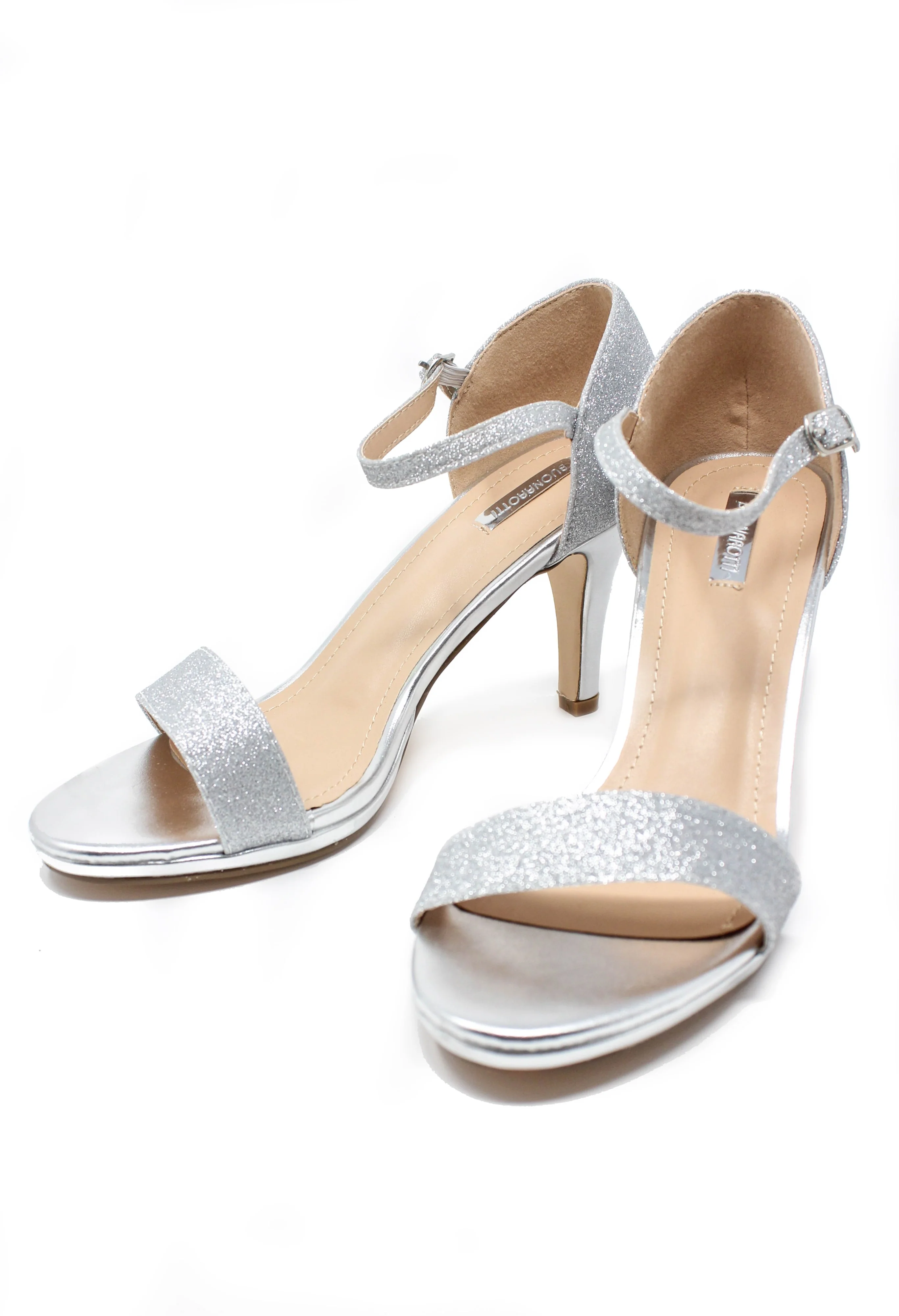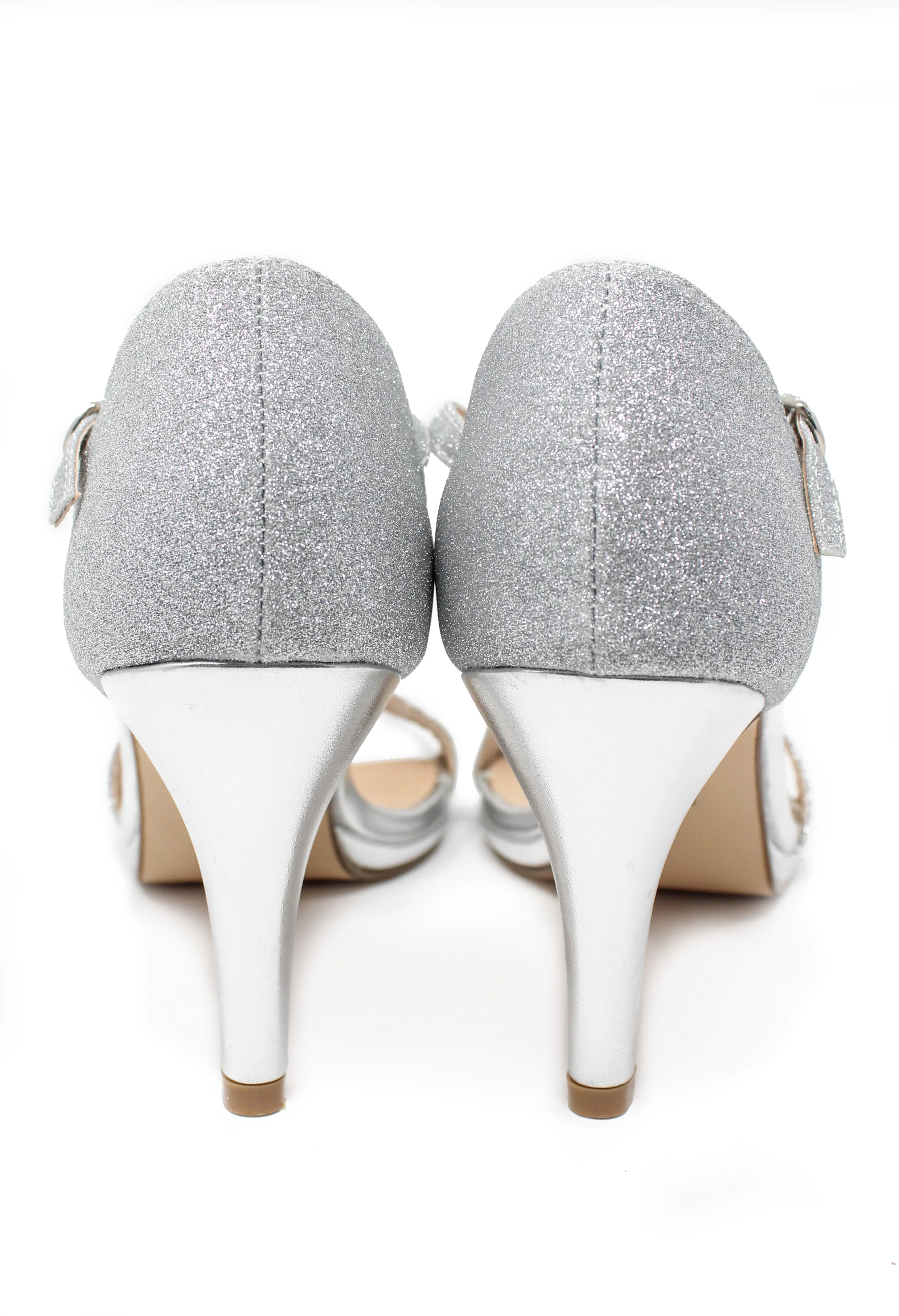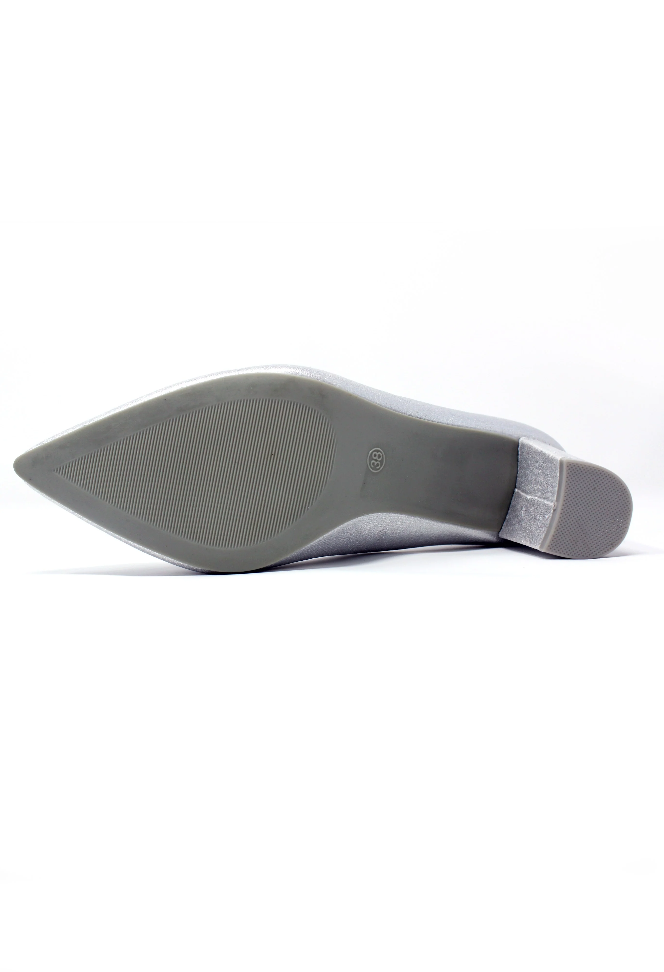 Silver Mid Heel Peep Toe Shoe with Mesh Detail