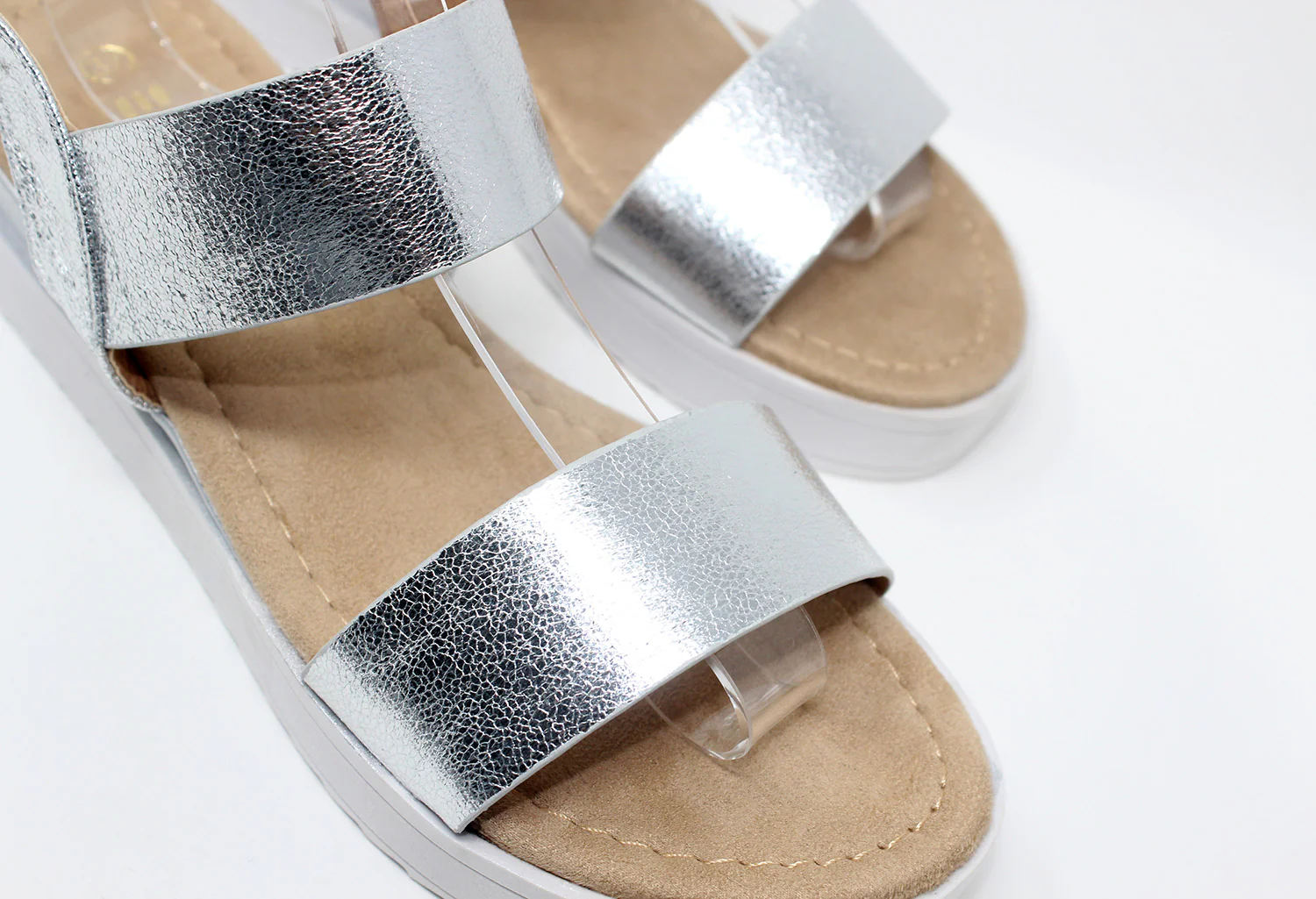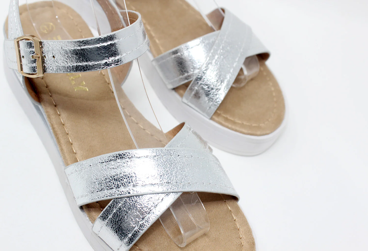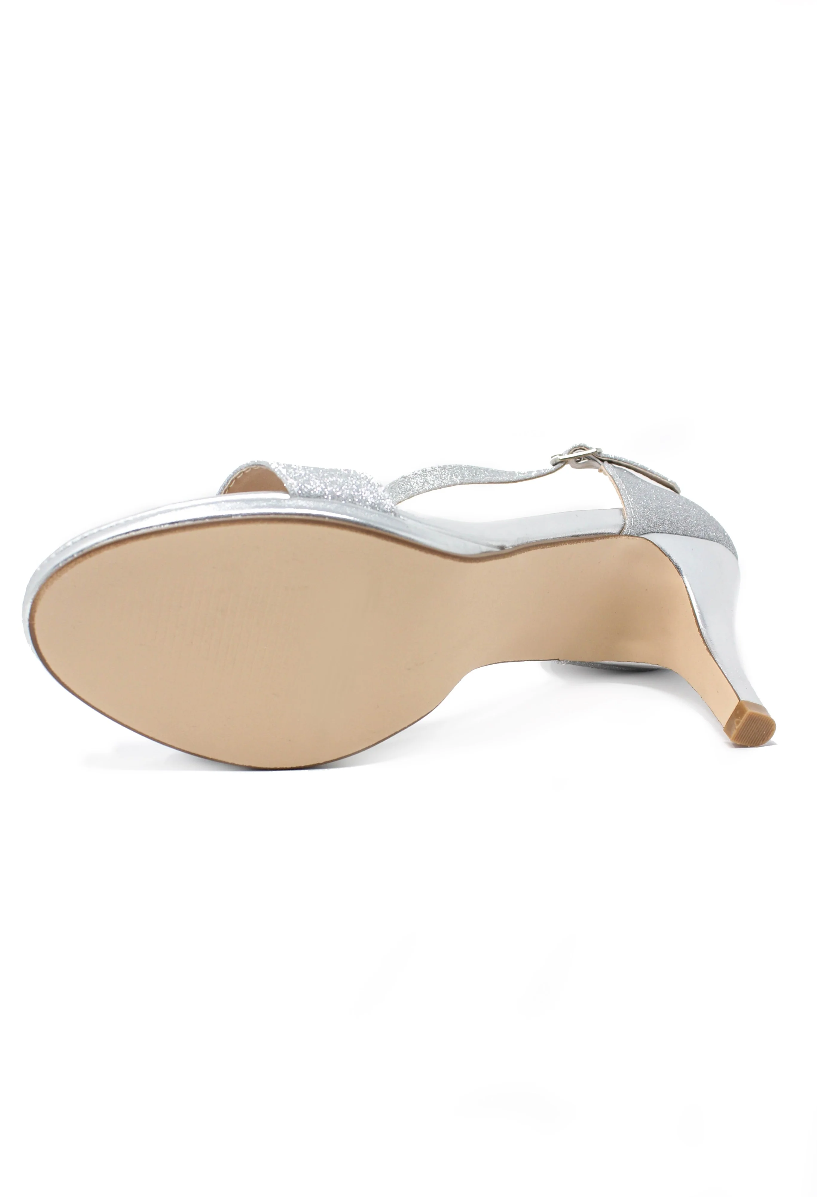Silver Mid Heel Peep Toe Shoe with Mesh Detail