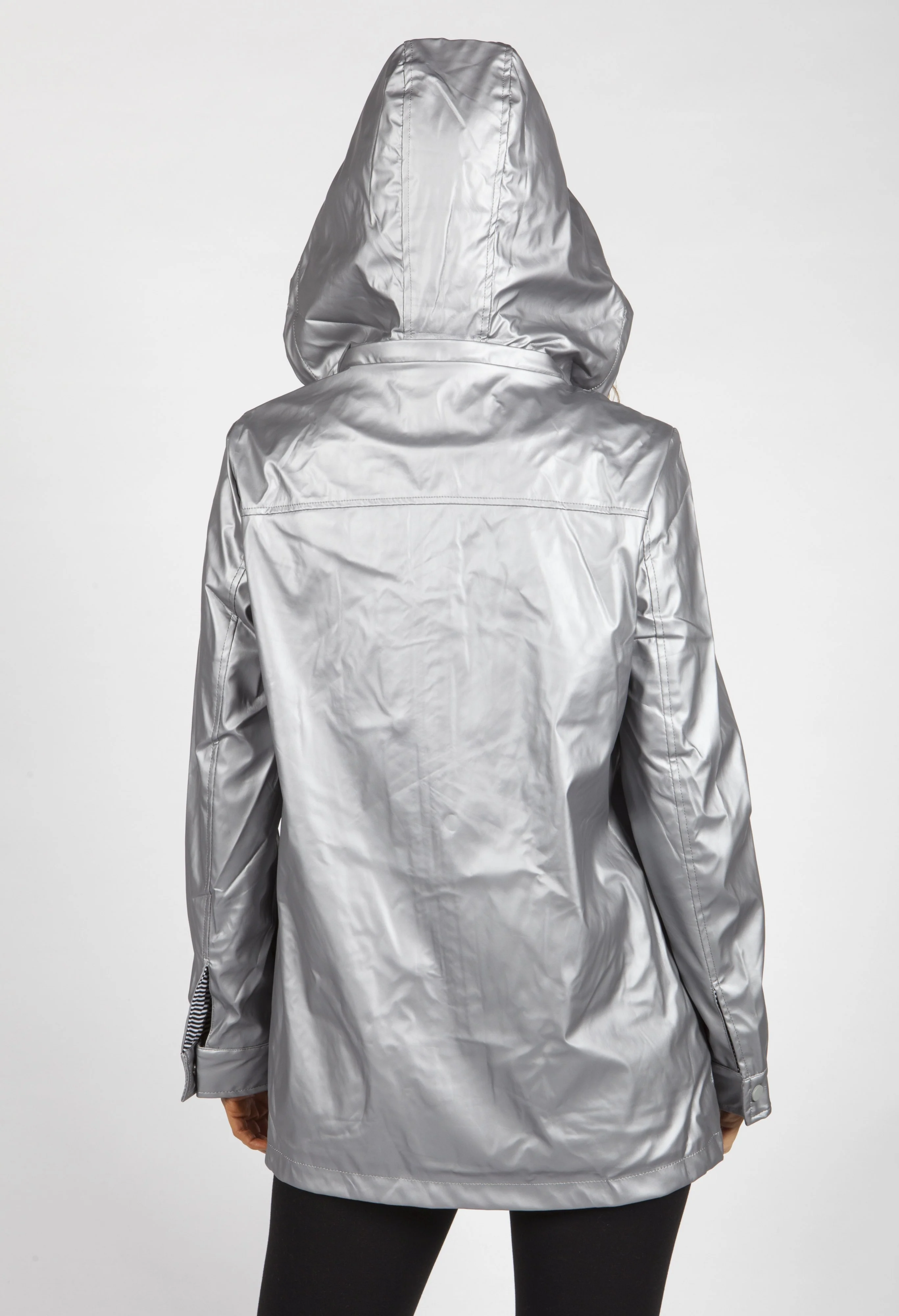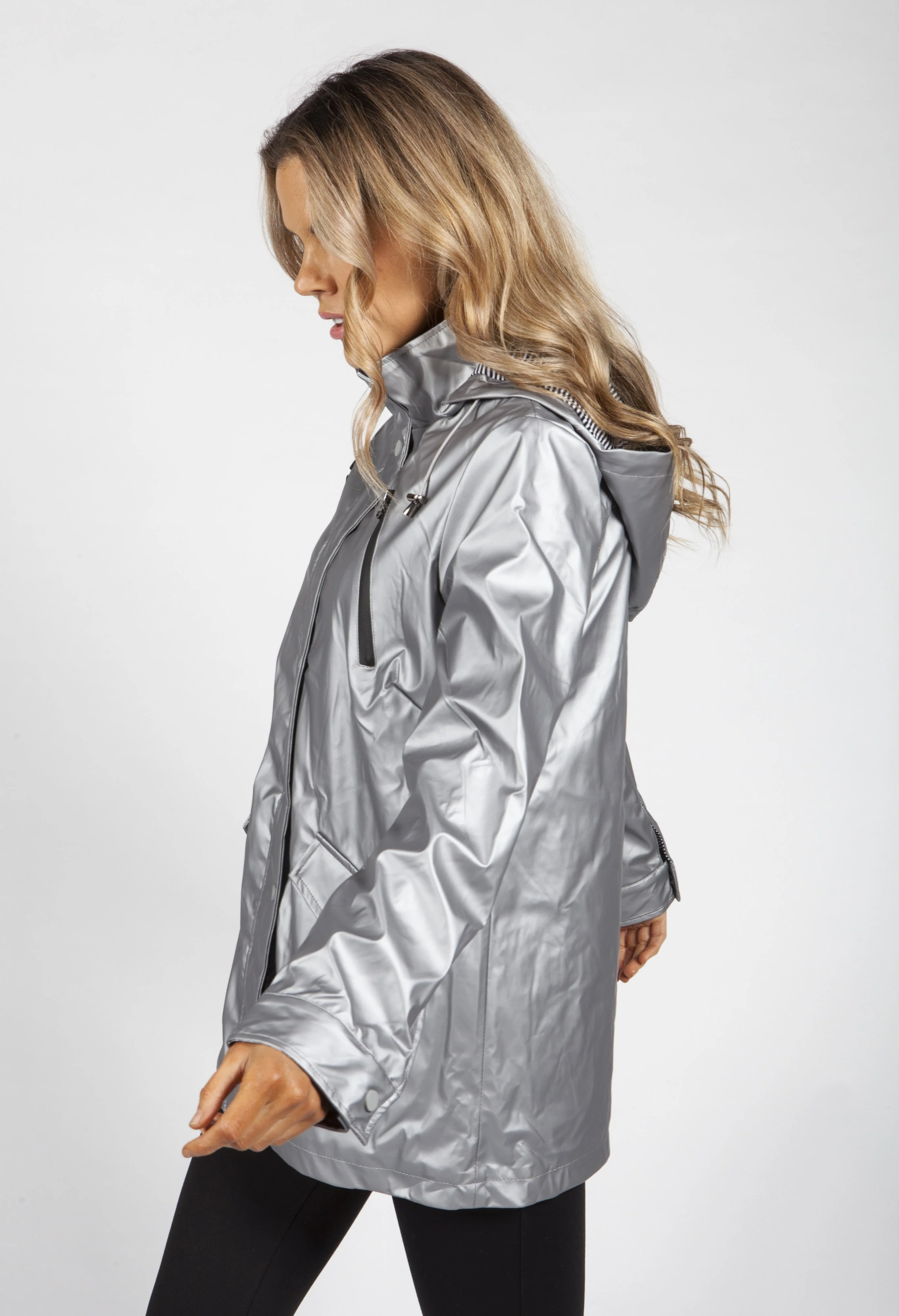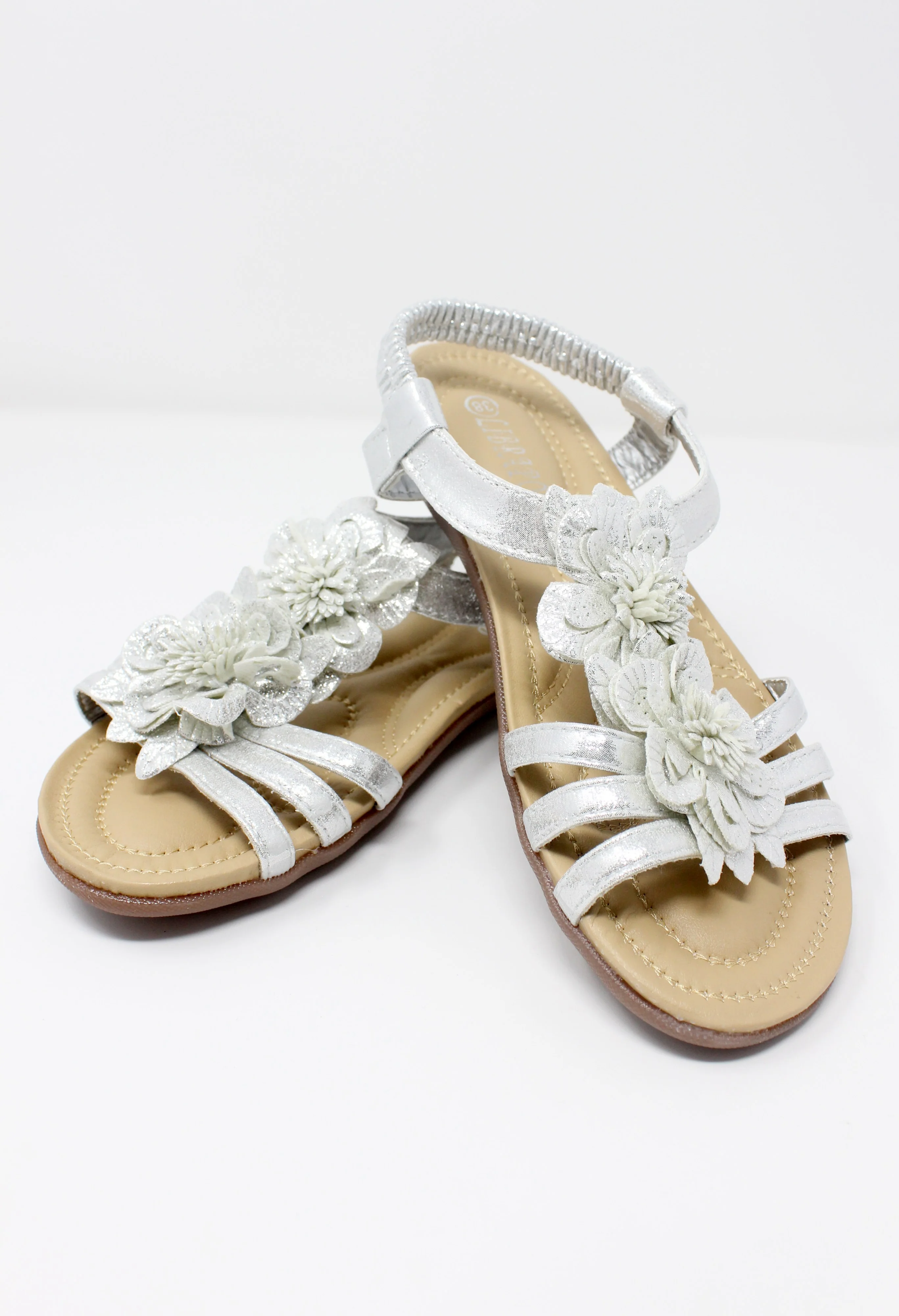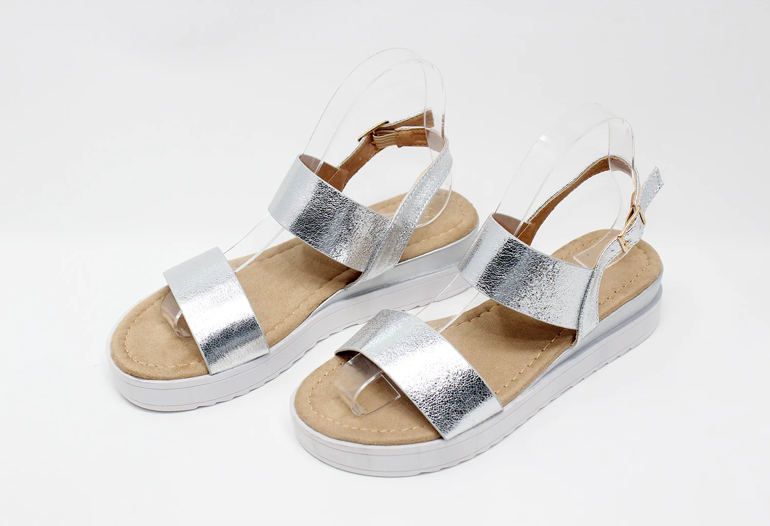 Silver Mid Heel Peep Toe Shoe with Mesh Detail