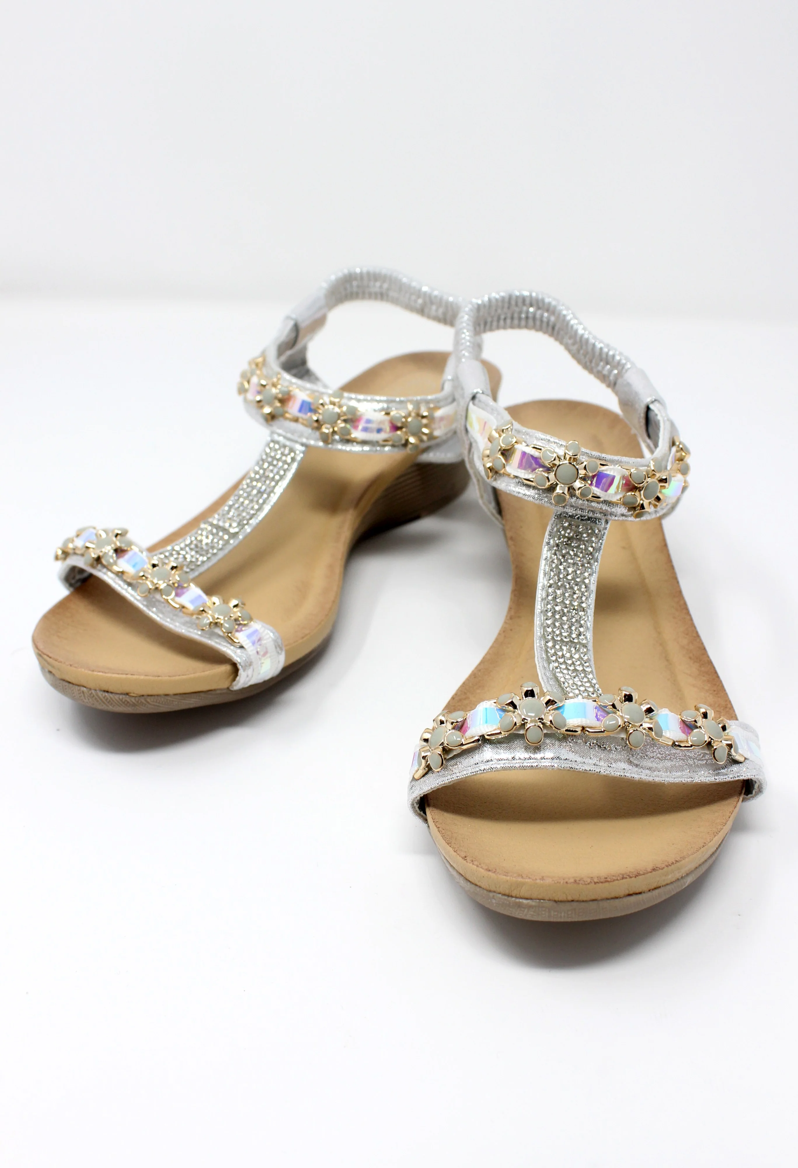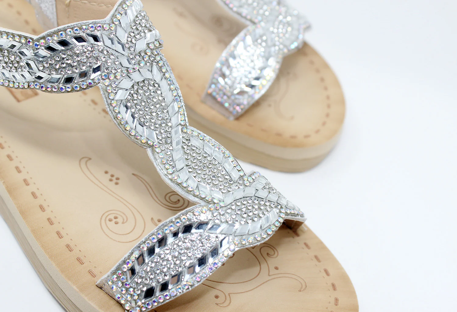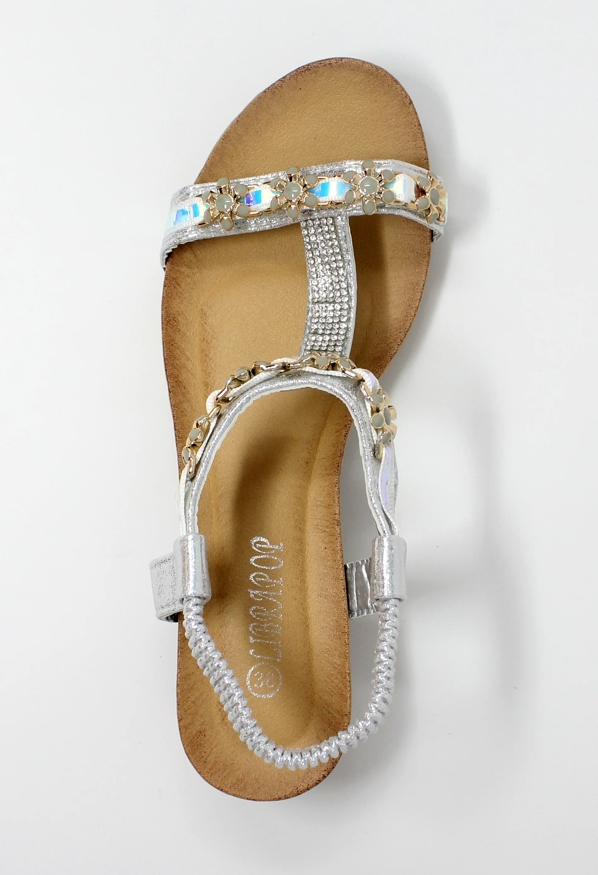 SILVER MAGIC SHAPE CAPRIS WITH DIAMANTE DETAIL