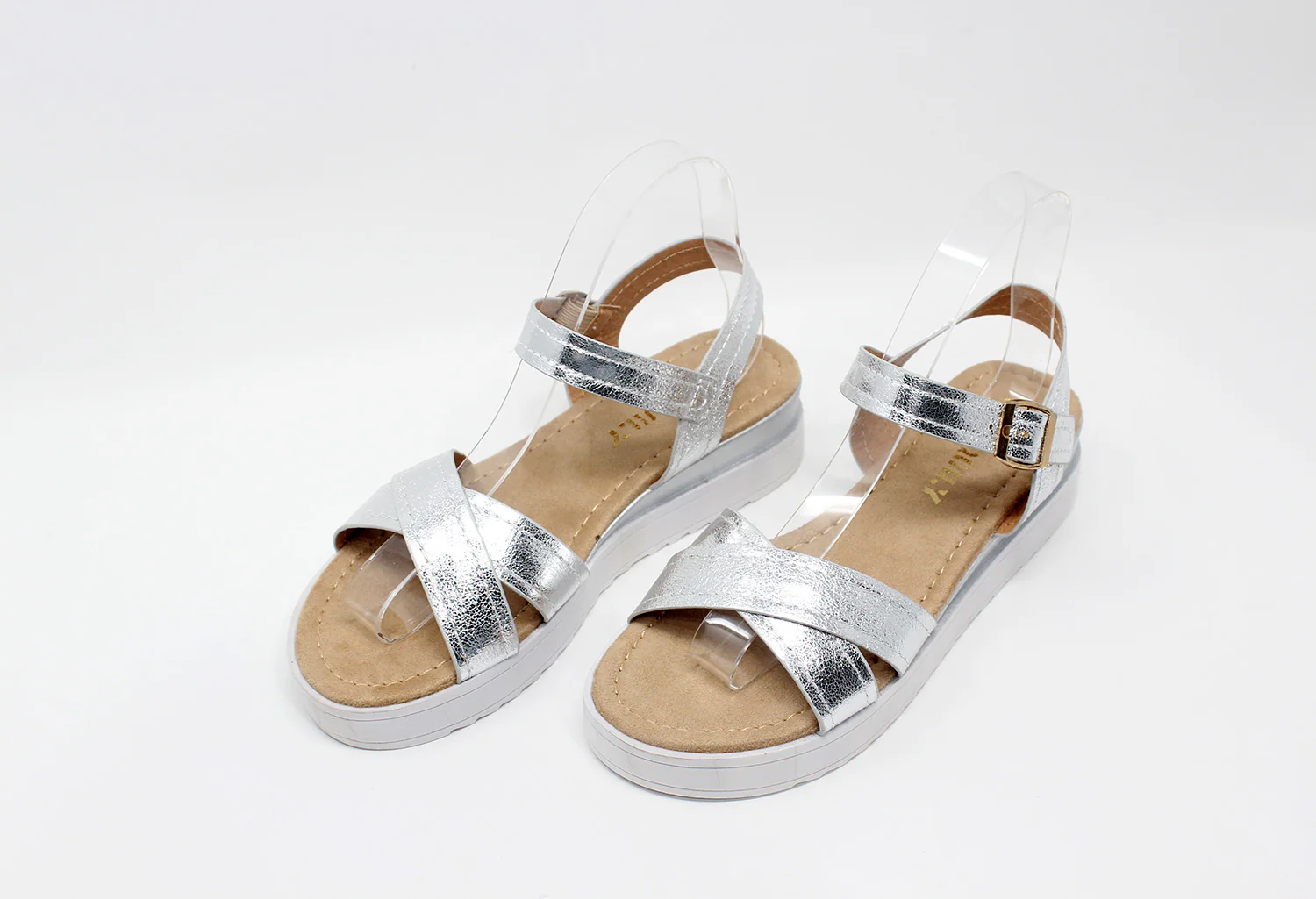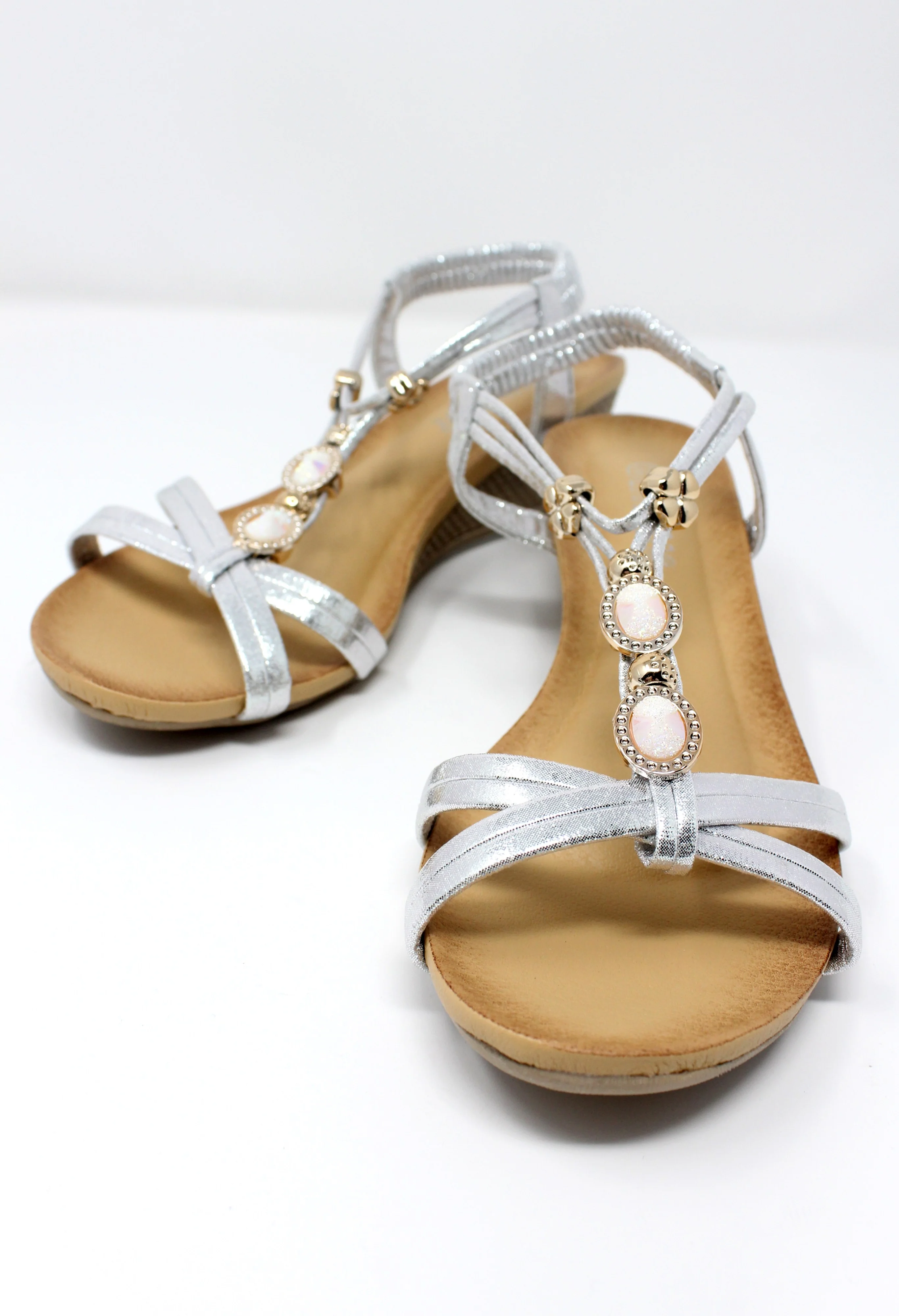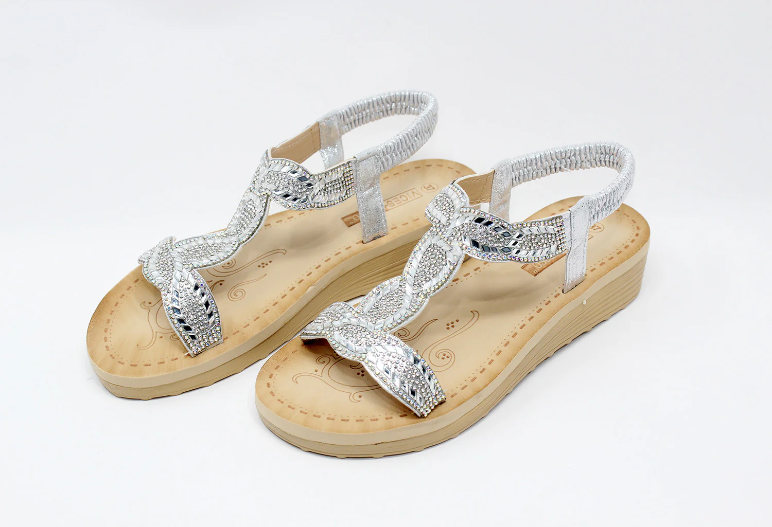 SILVER MAGIC SHAPE CAPRIS WITH DIAMANTE DETAIL