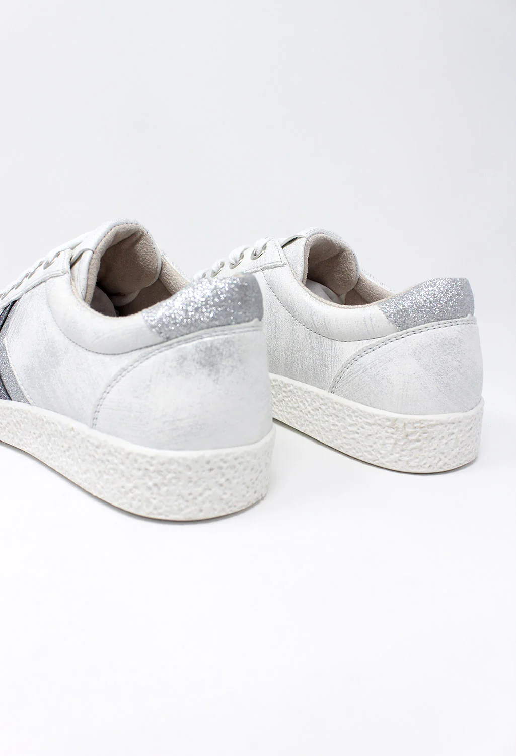Silver Laced Trainers with Zig-Zag Glitter Stripes