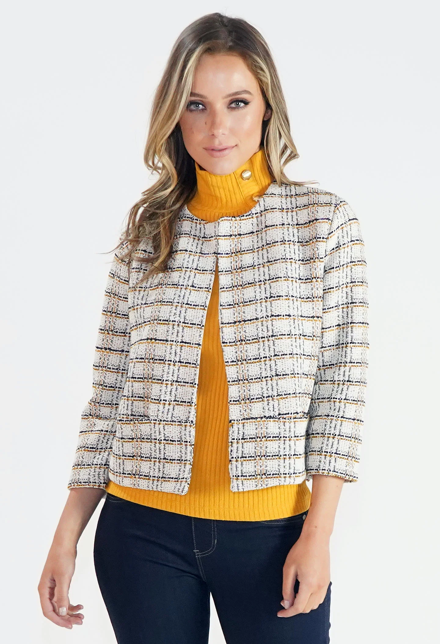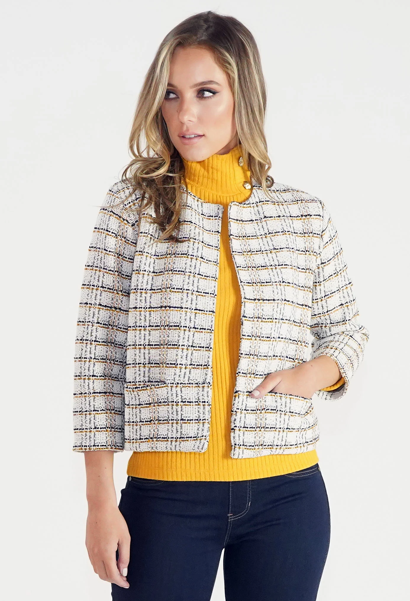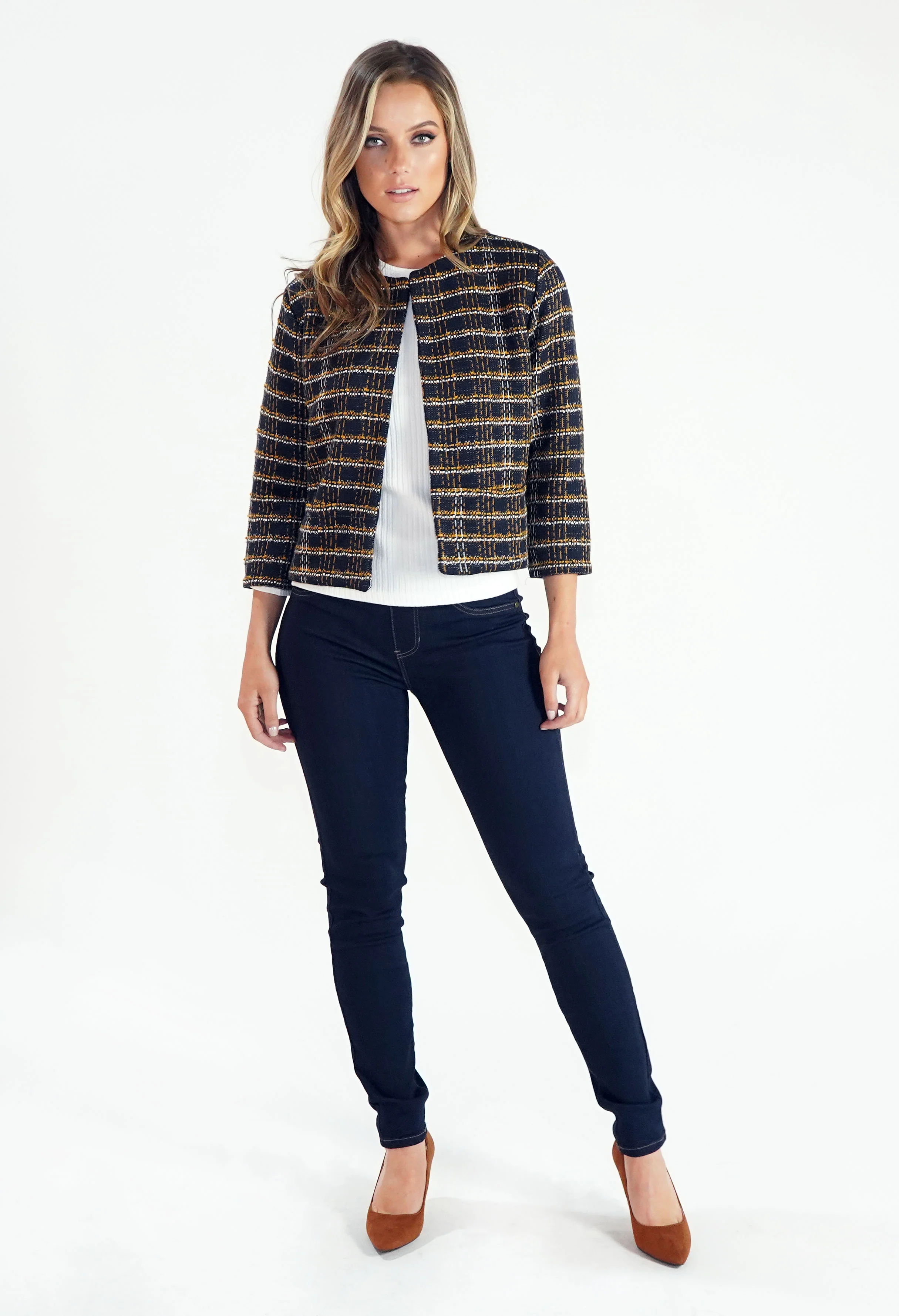 SHORT SLEEVE BLOUSE IN PINSTRIPE WITH FLOWER DETAILS
