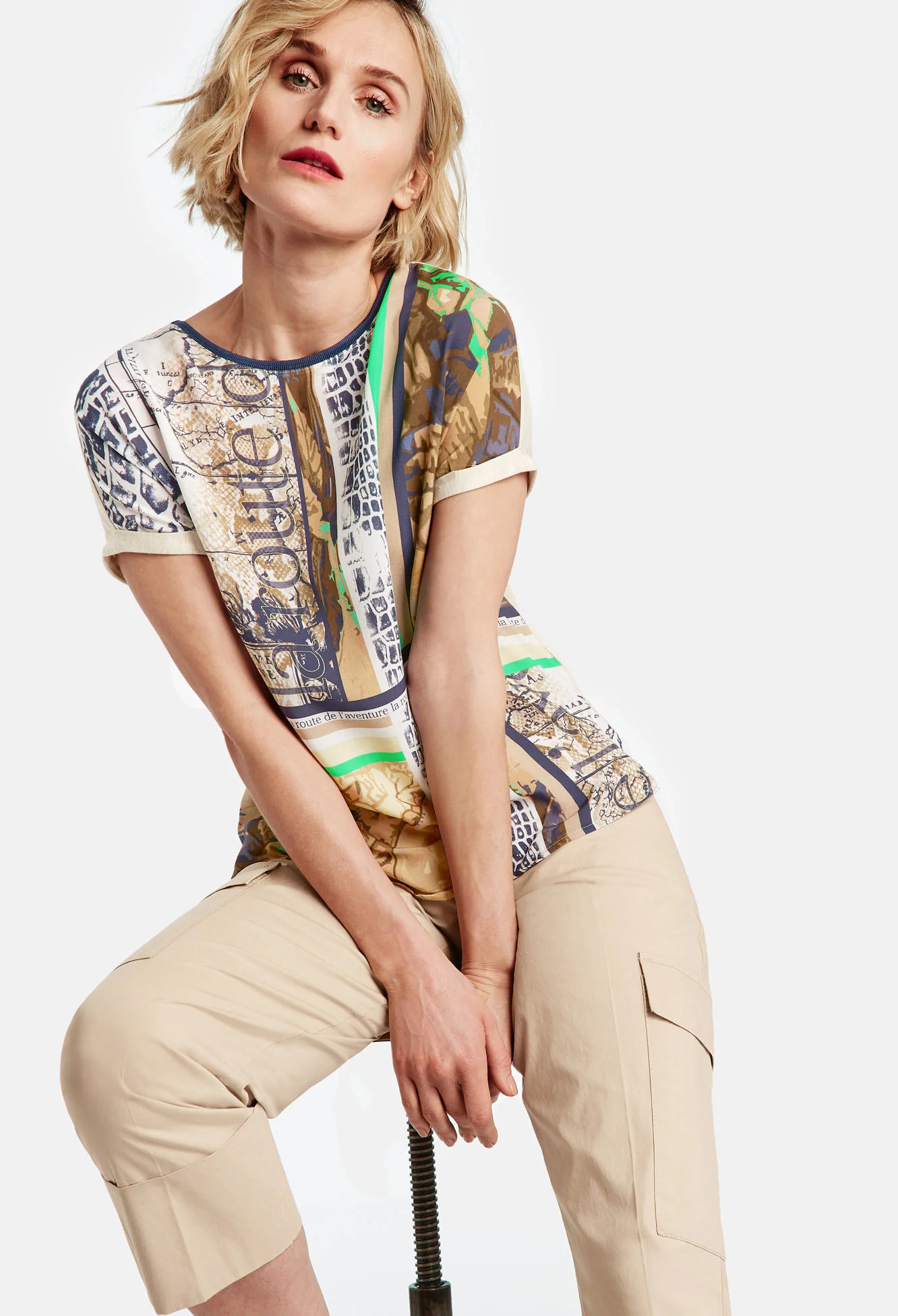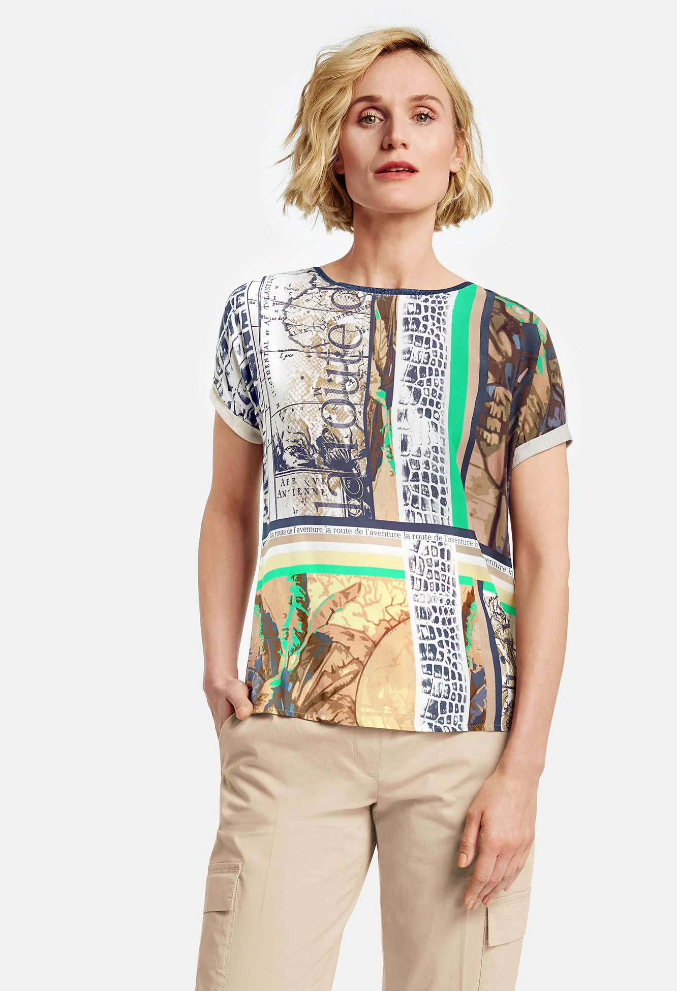 SHORT SLEEVE TOP WITH A PANEL PRINT