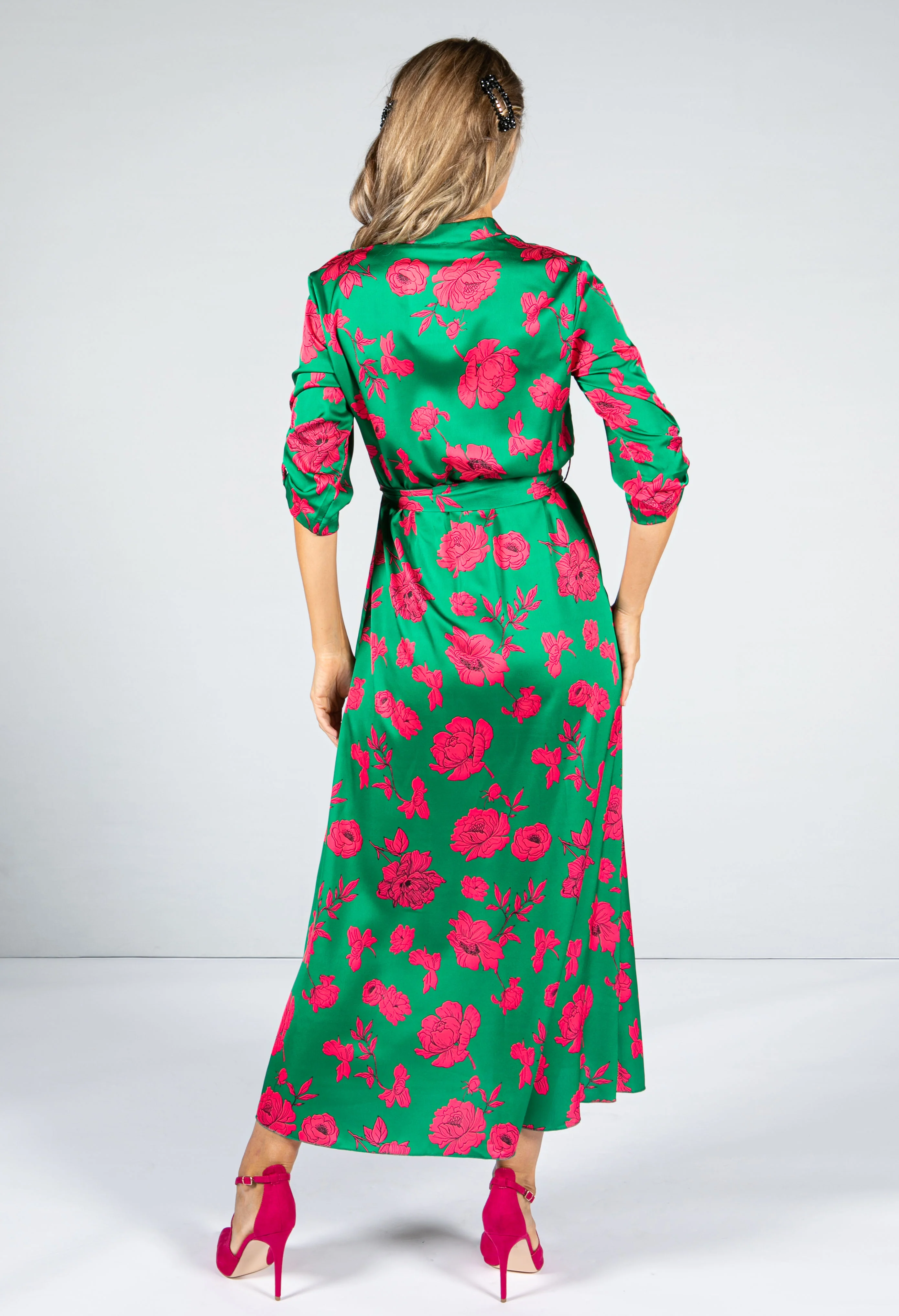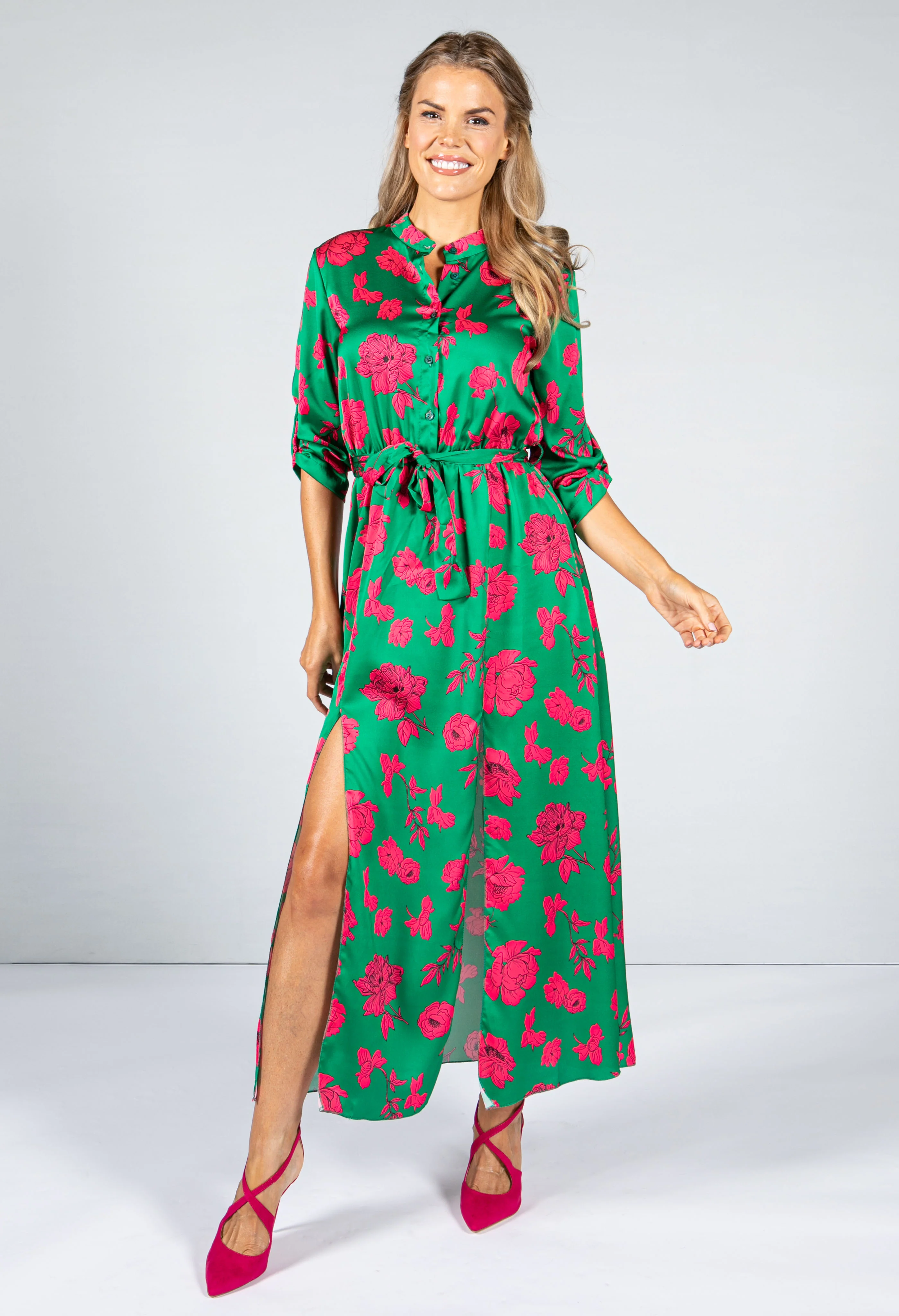 Silk Feel Dress in Fuchsia Rose with Double Split
