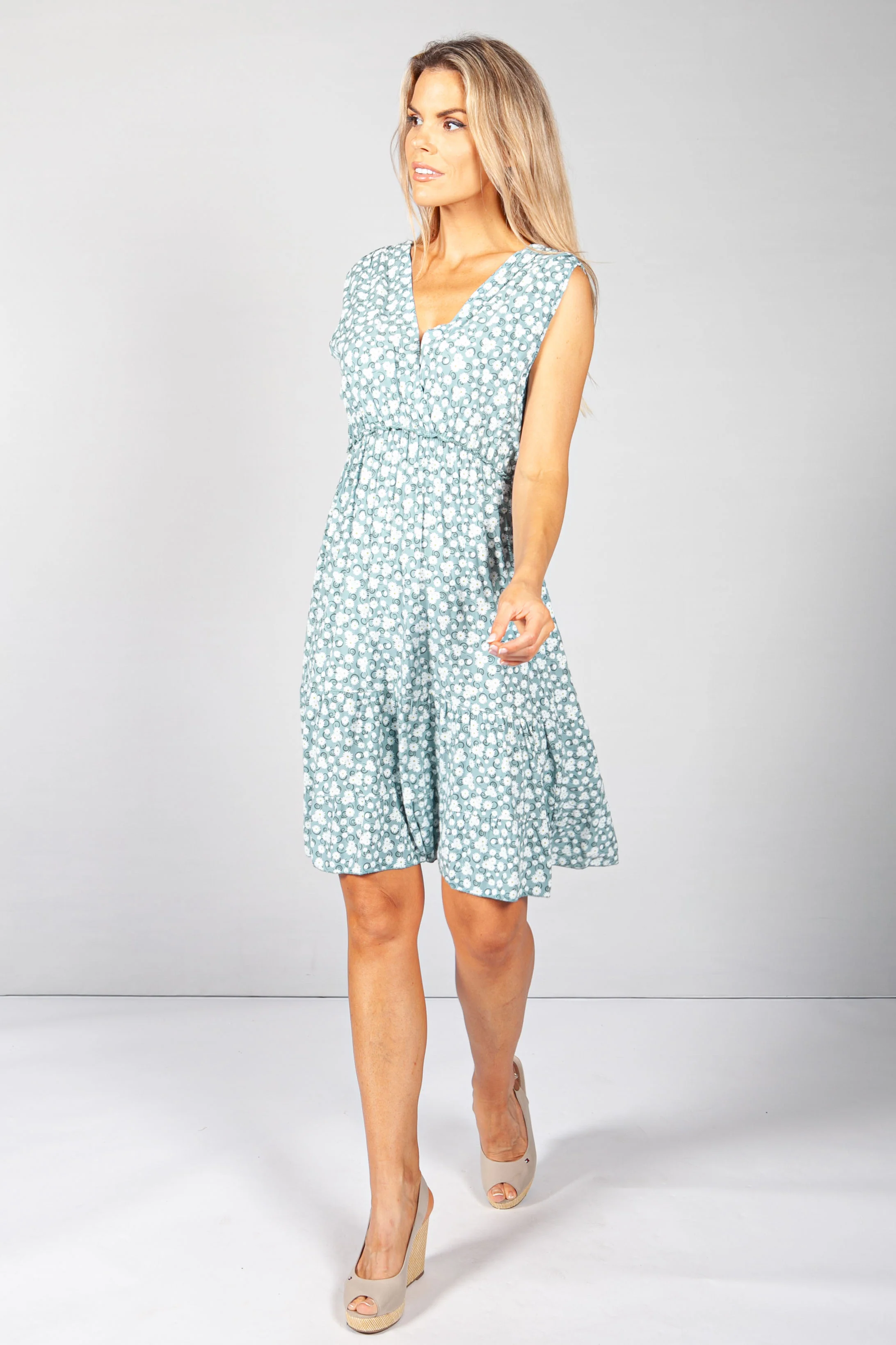 Short Floral Dress in Green