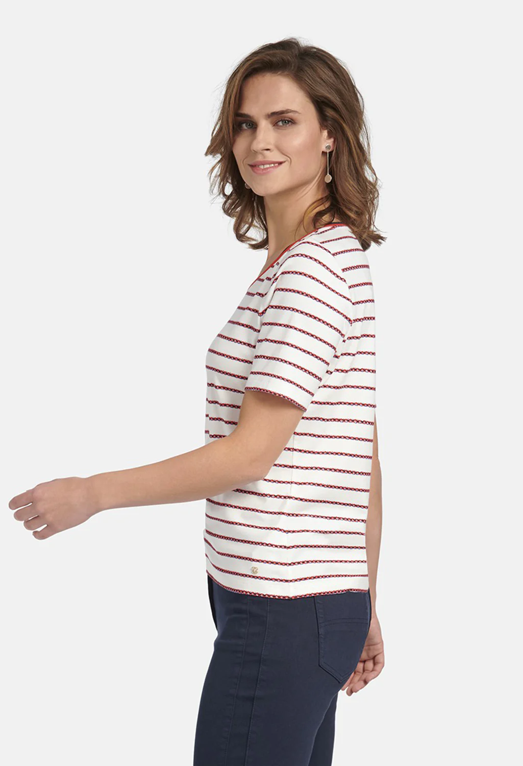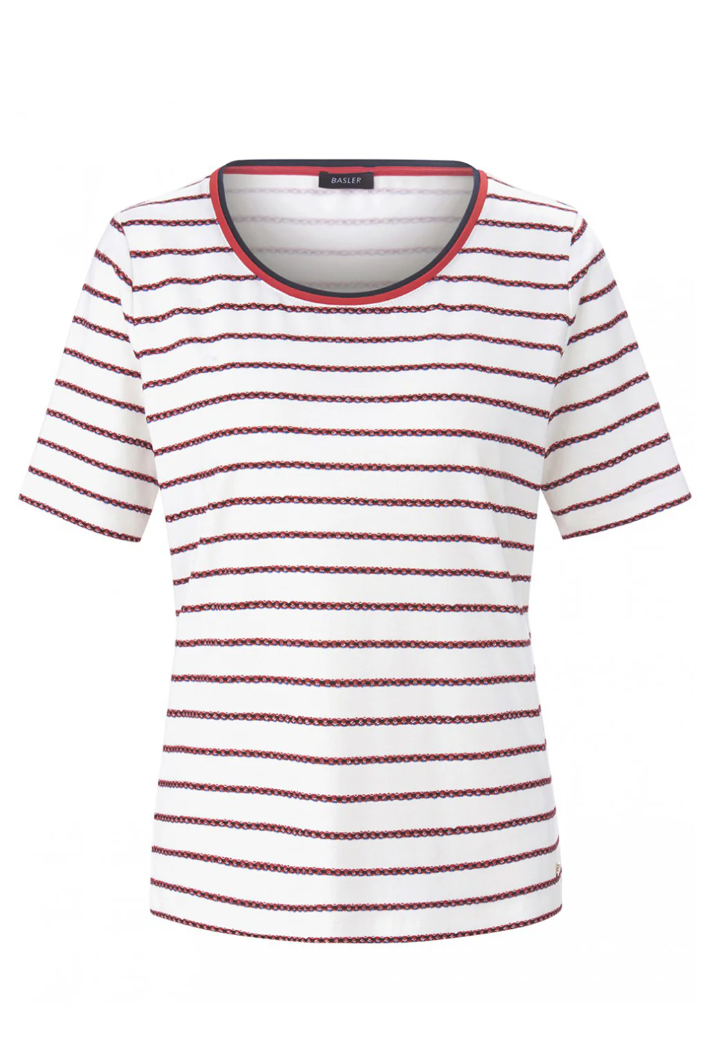 Short Sleeve Jewel Neck Stripe and Botanic Print T-Shirt
