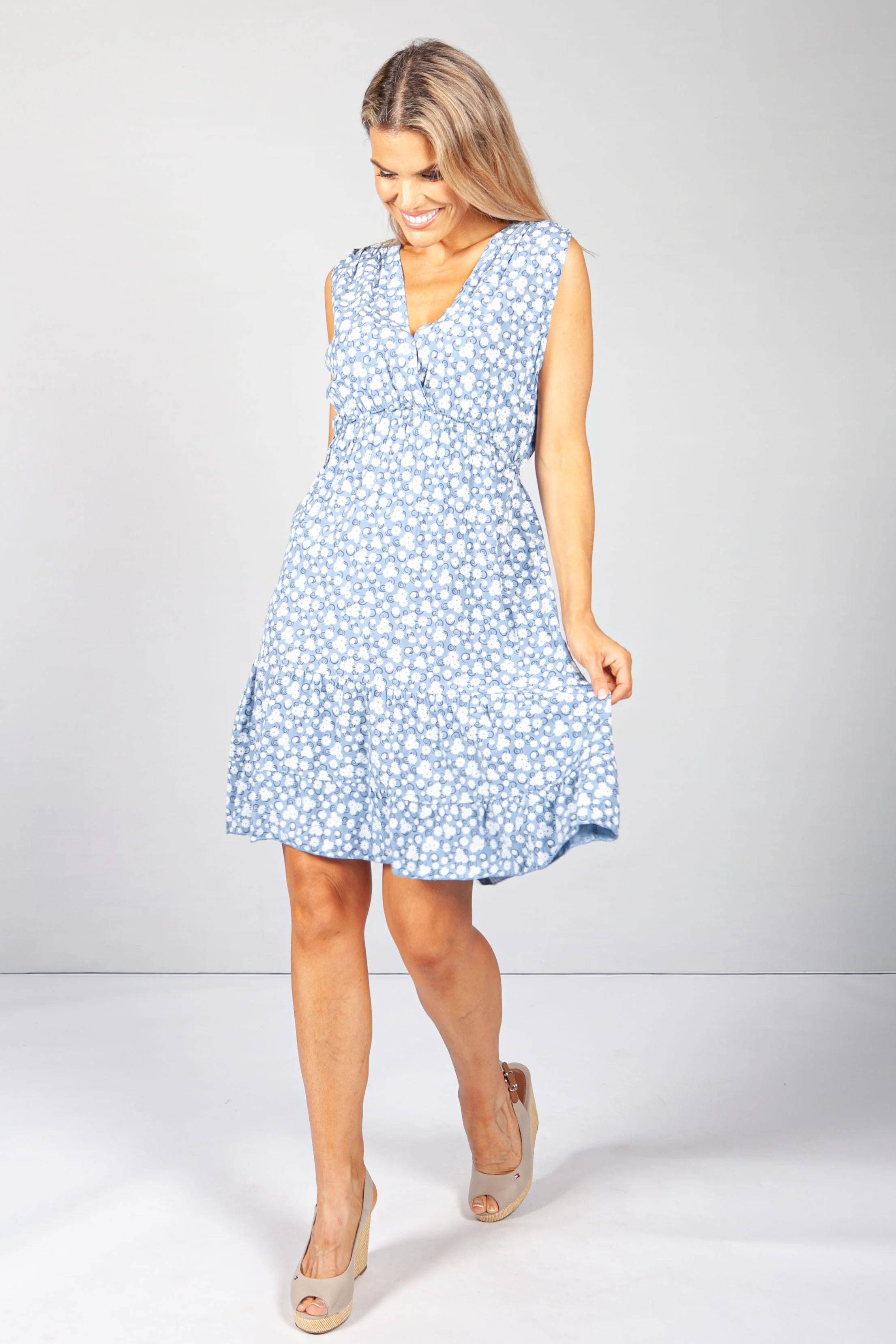 Short Floral Dress in Blue