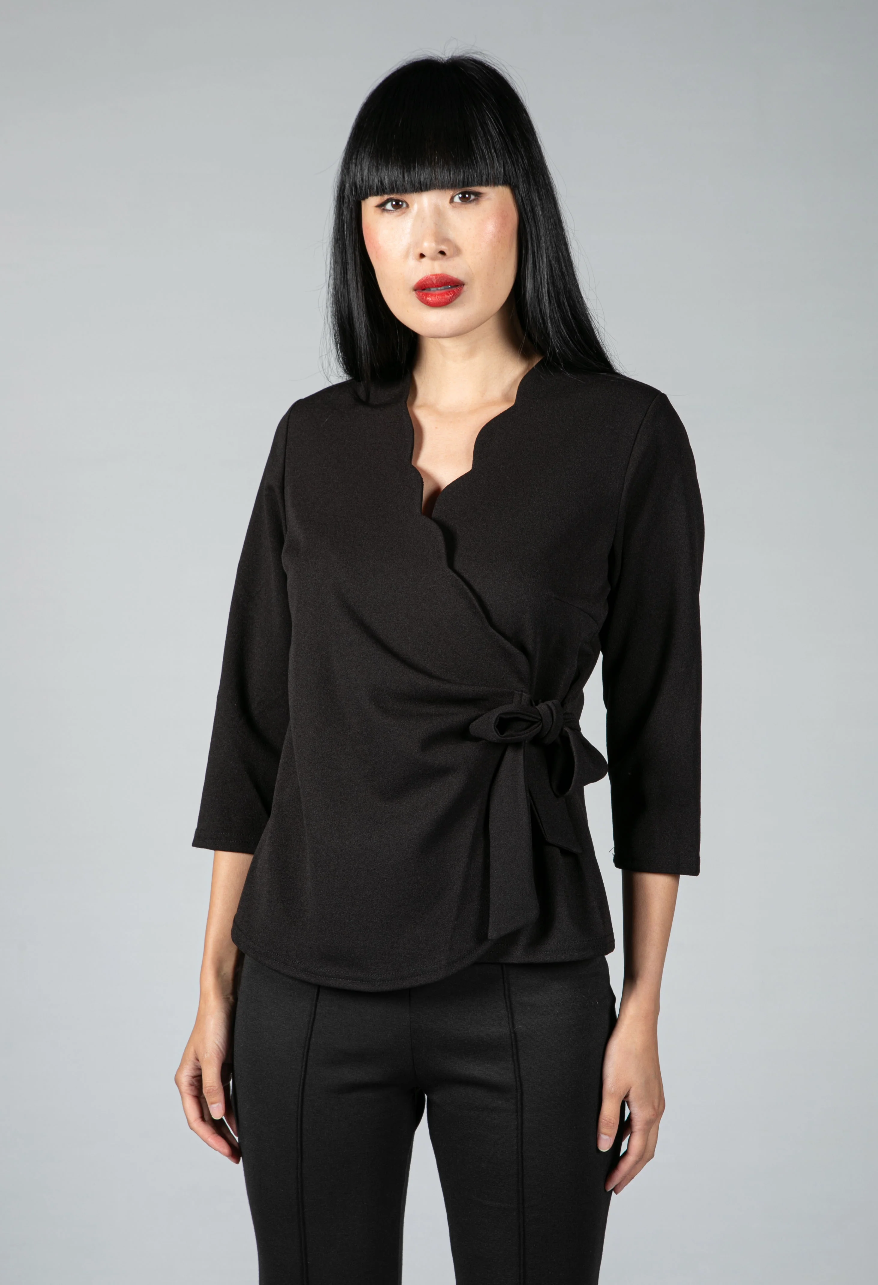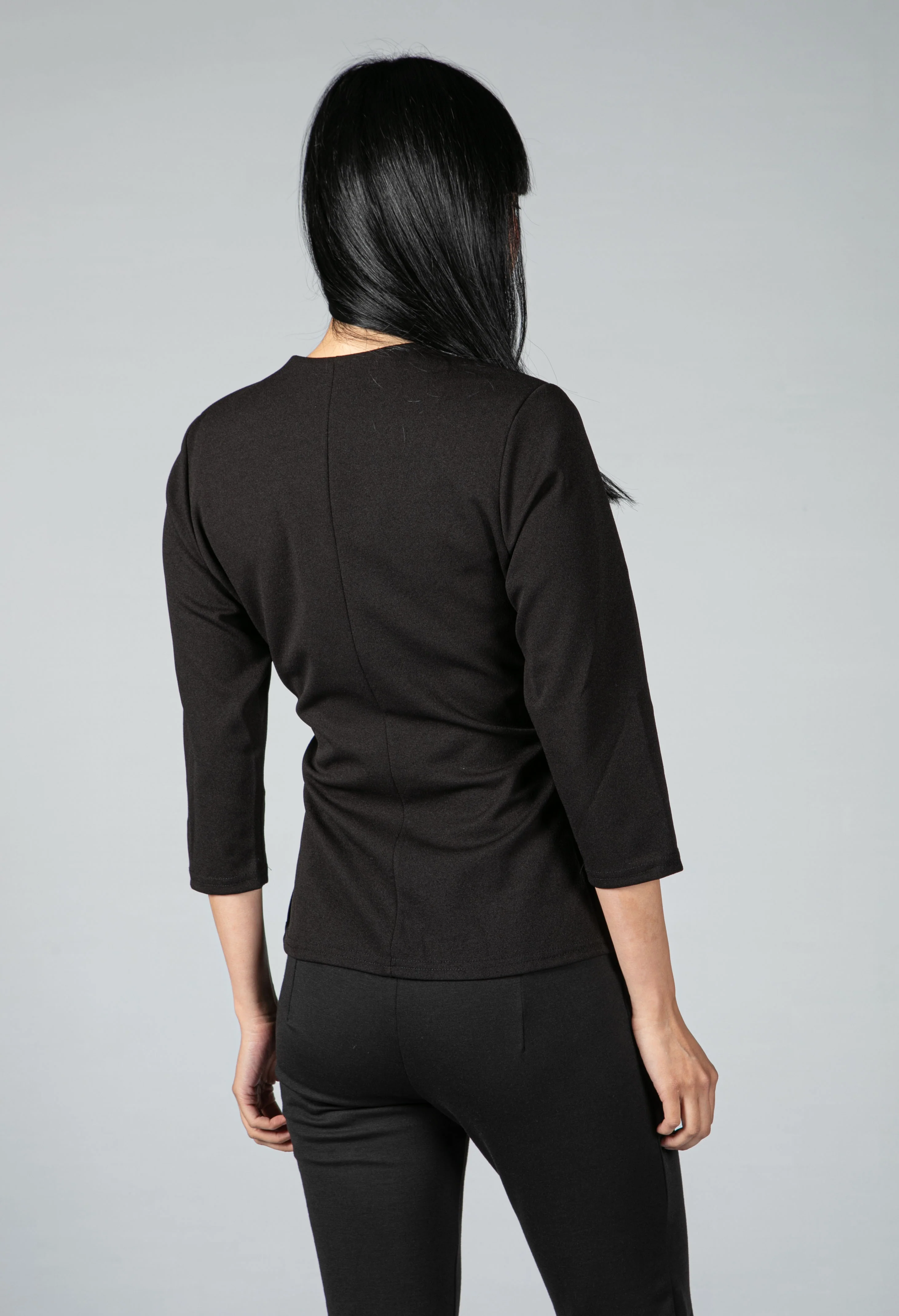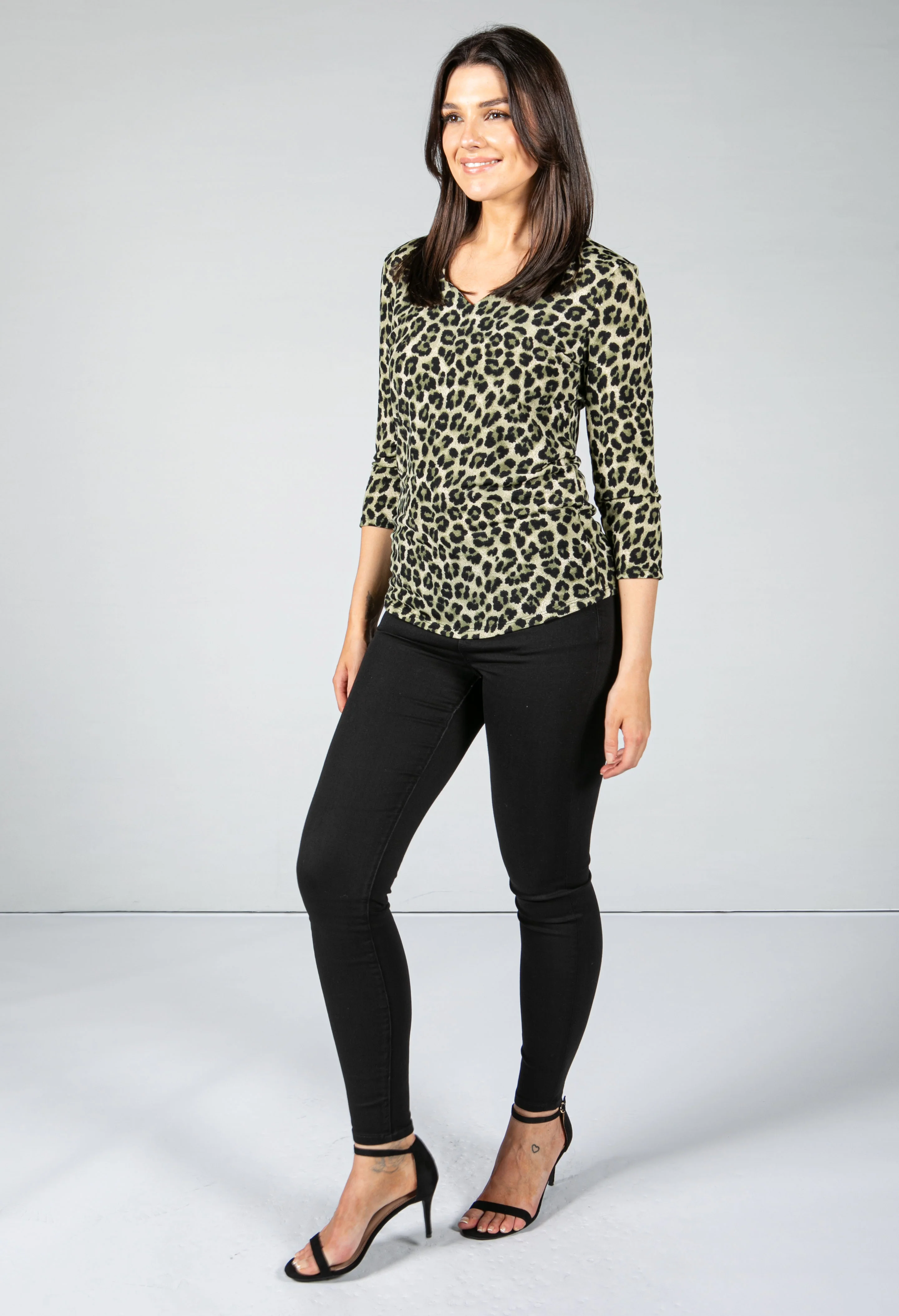 SATIN STRIPE SOFT V NECK ROLL UP SLEEVE BLOUSE