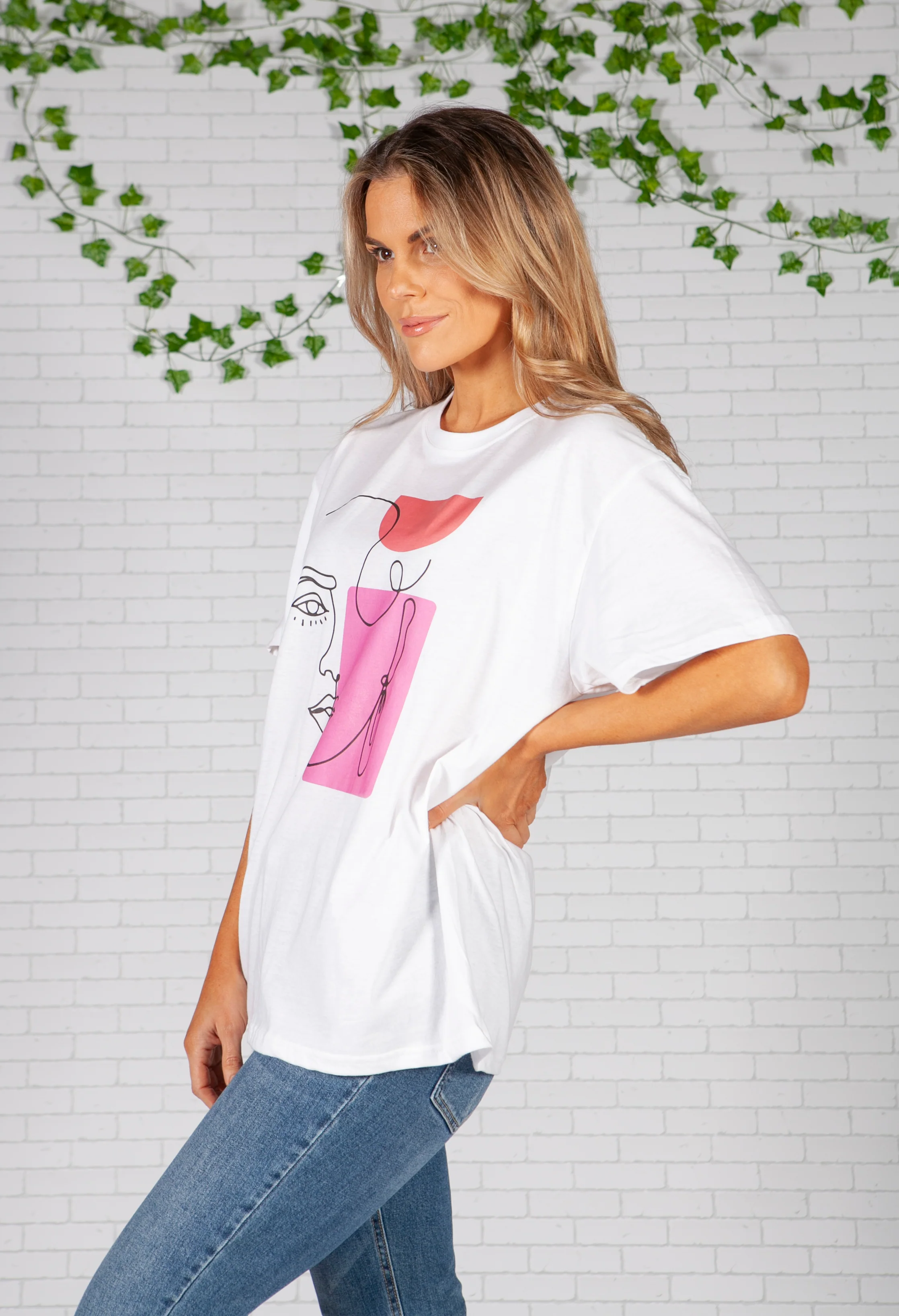 Abstract Face Print White T-Shirt