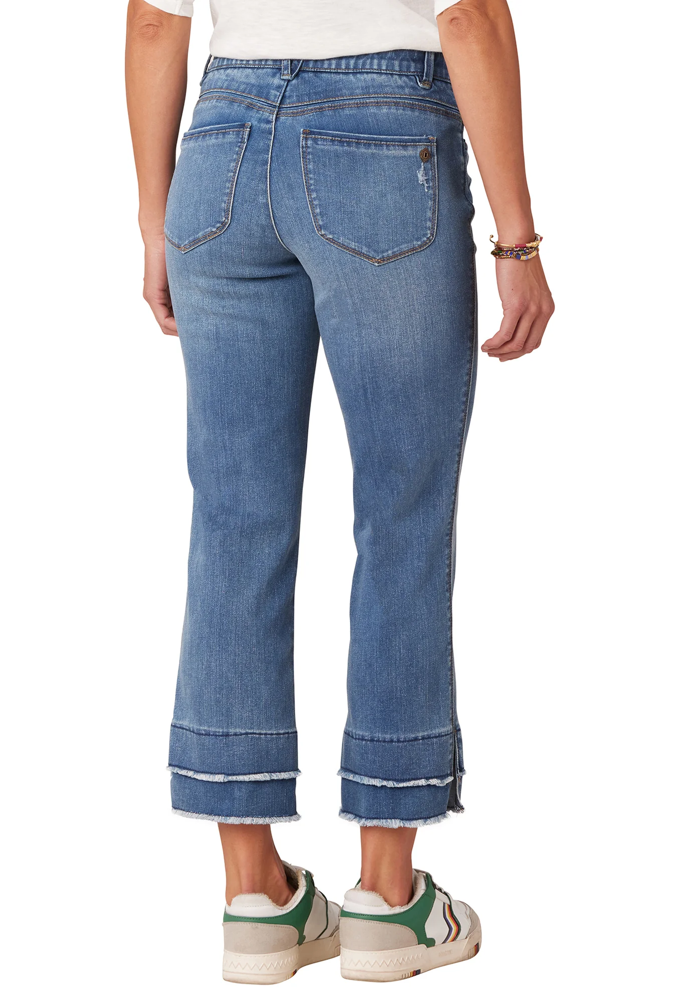 Absolution Mid-Rise Blue Double Layer Fray Hem Kick Flare Jeans