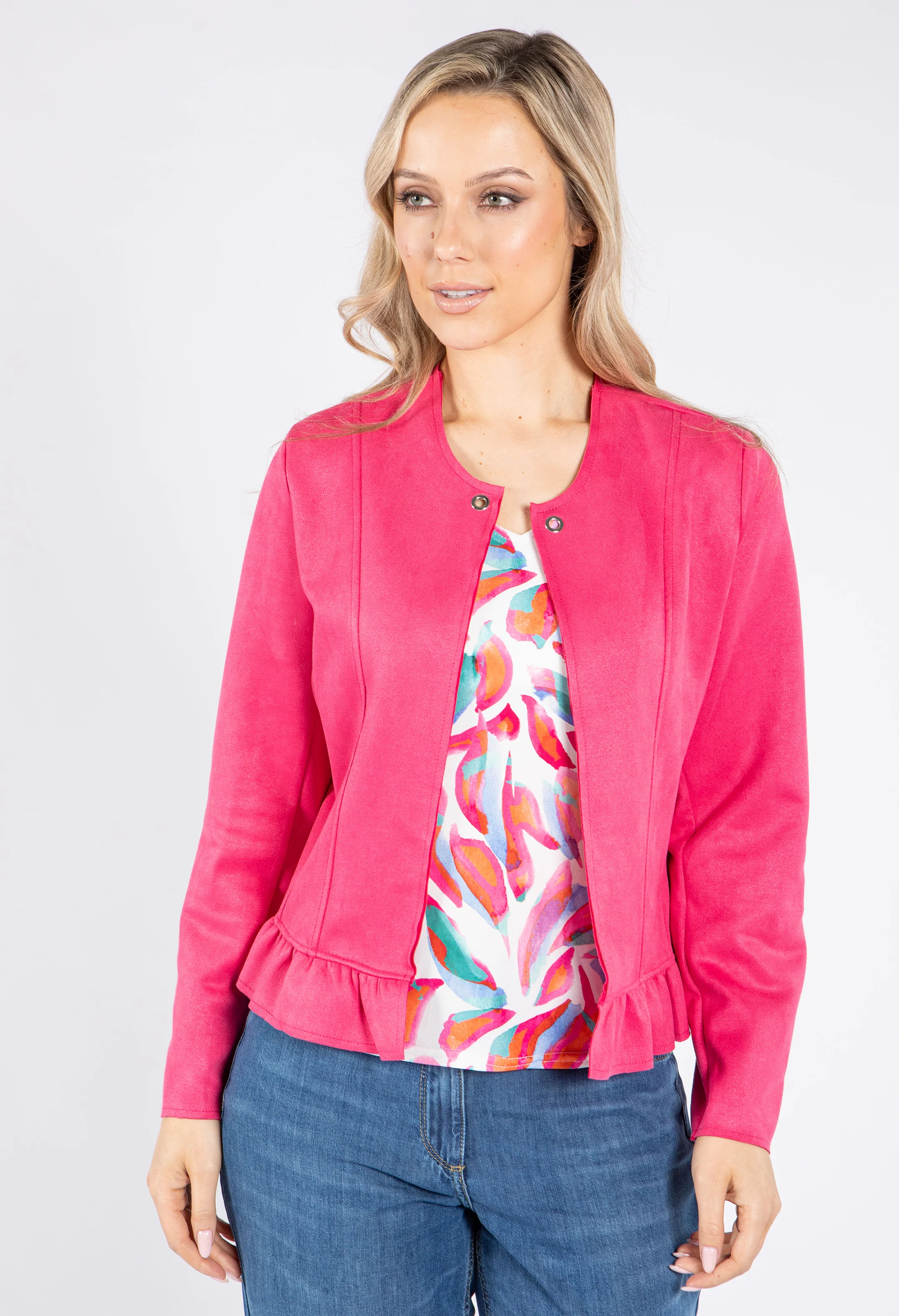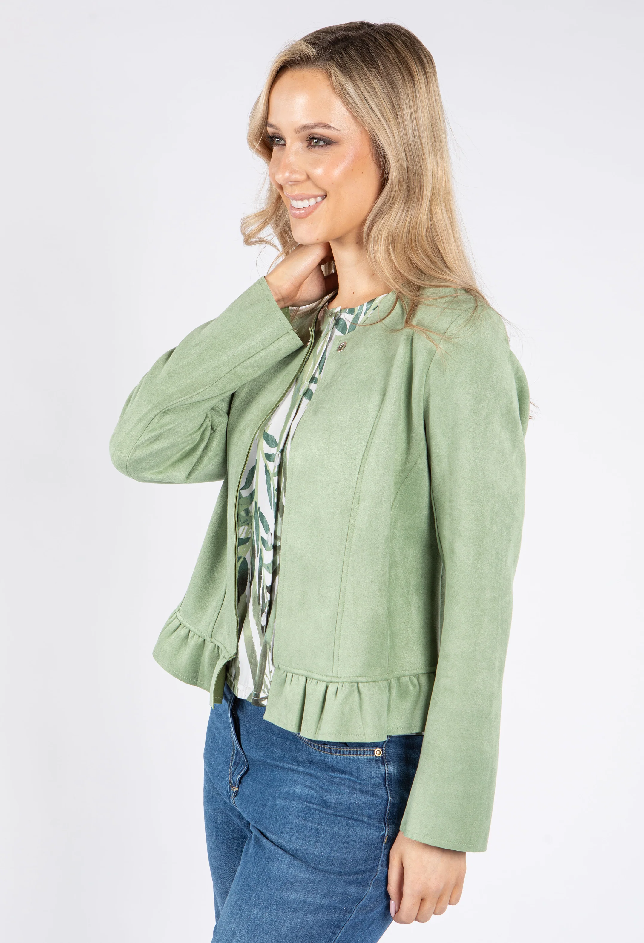 Frill Hem Suedette Jacket