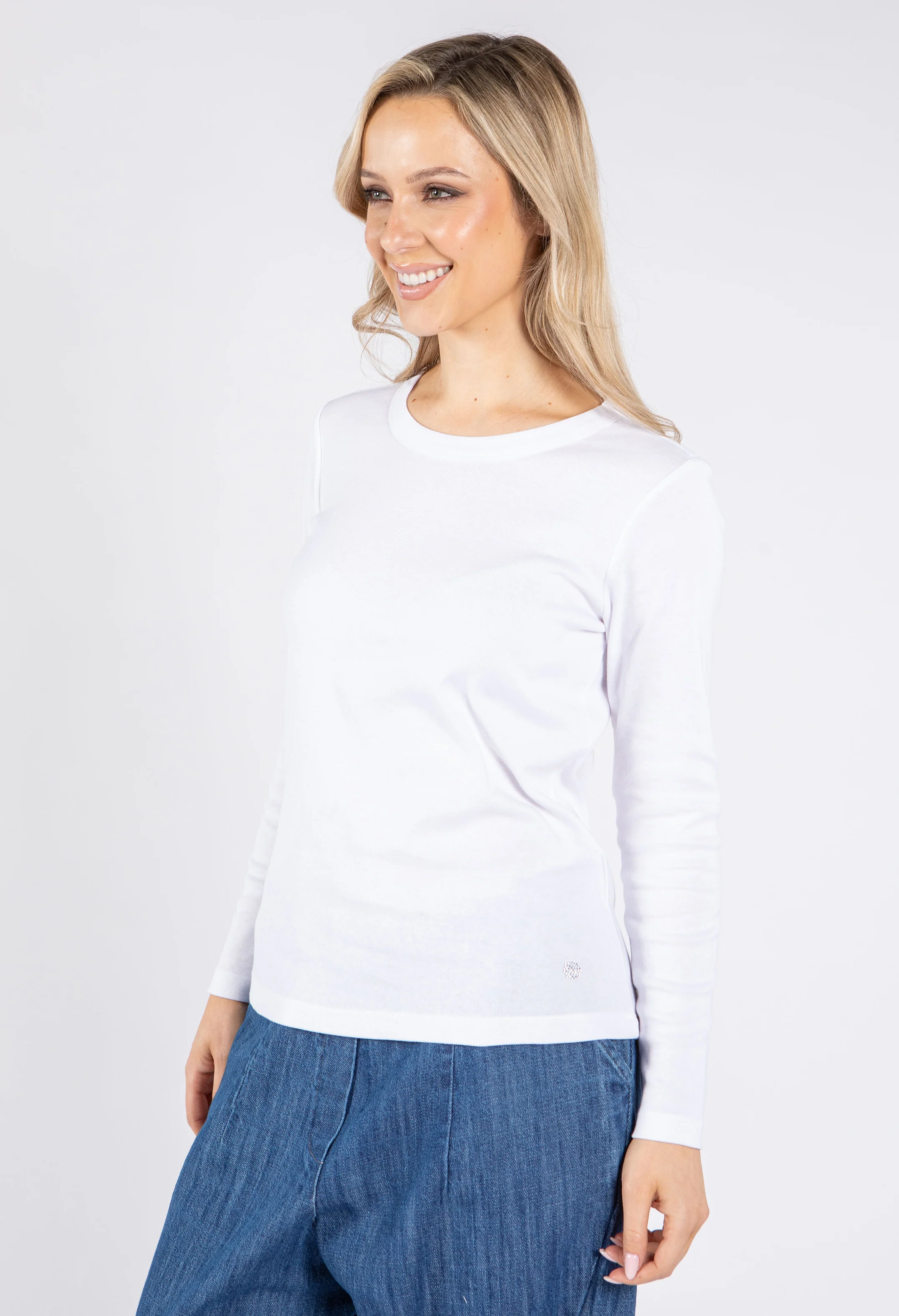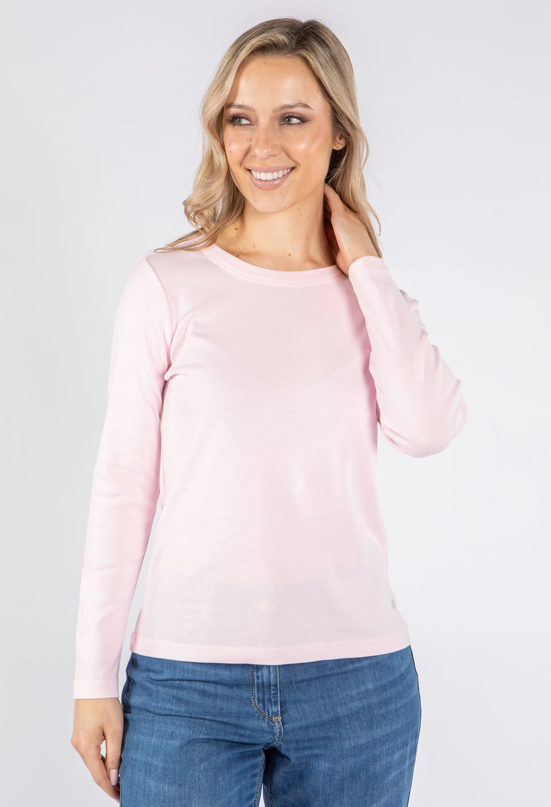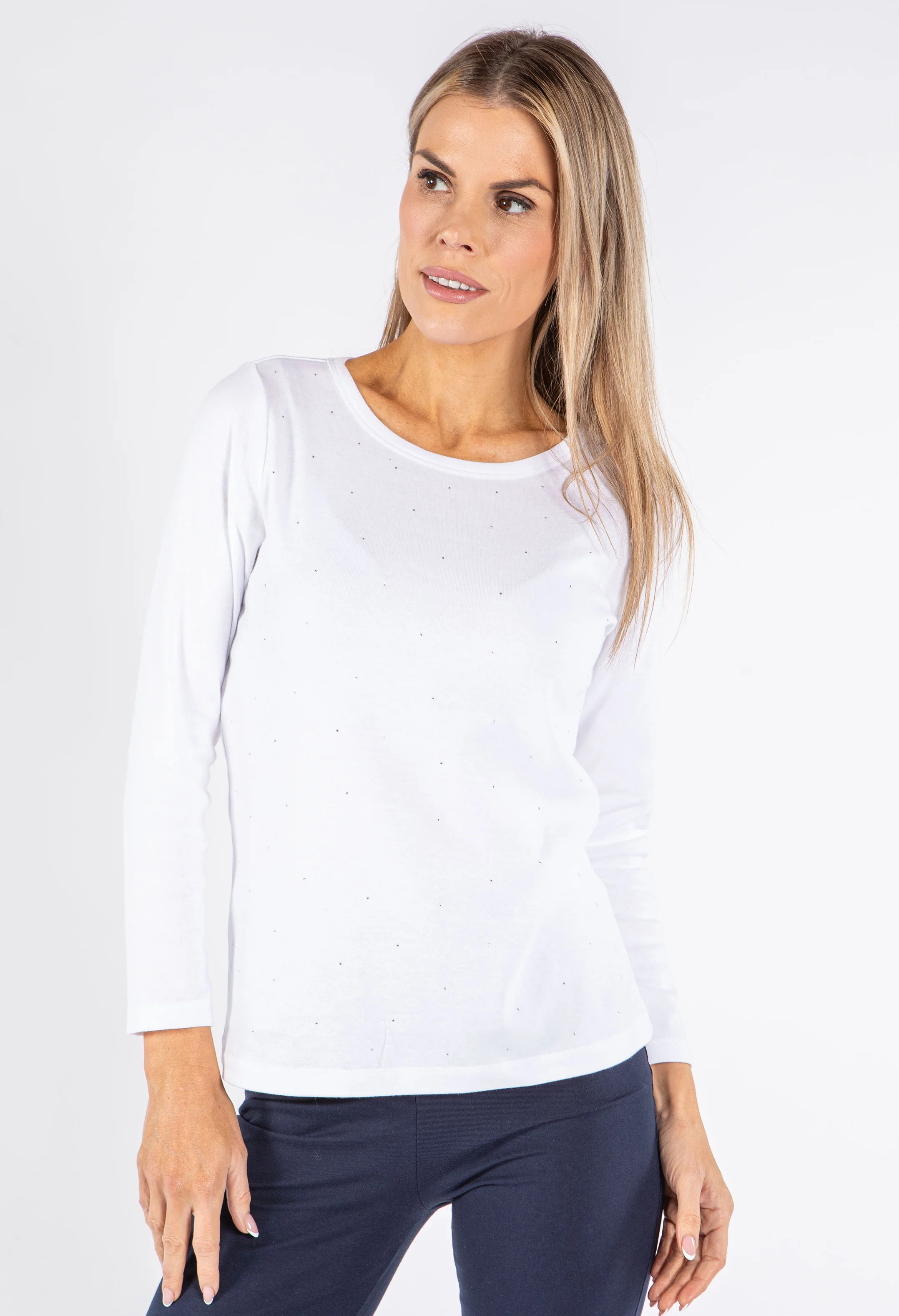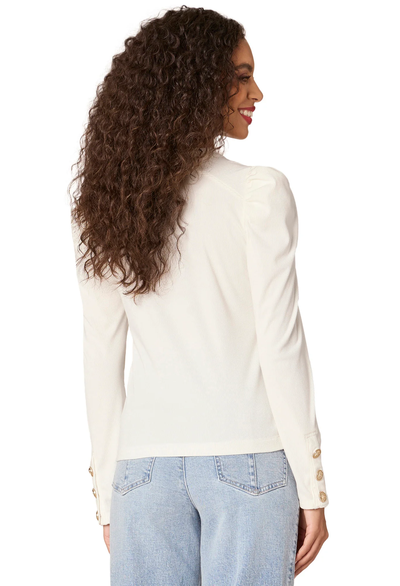 Long Sleeve Crew Neck Button Placket Knit Top with Chain Detail