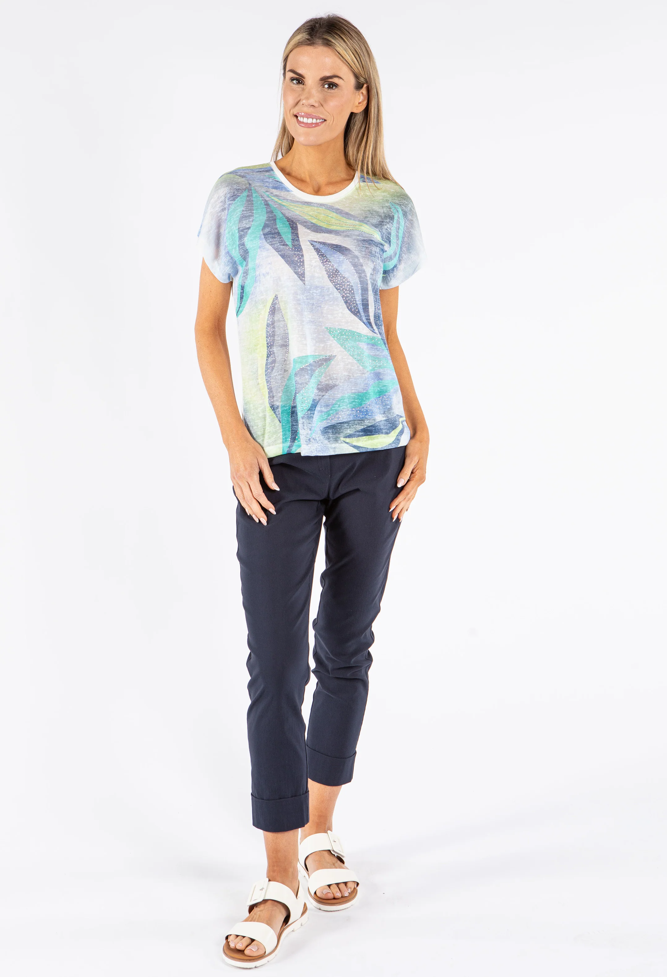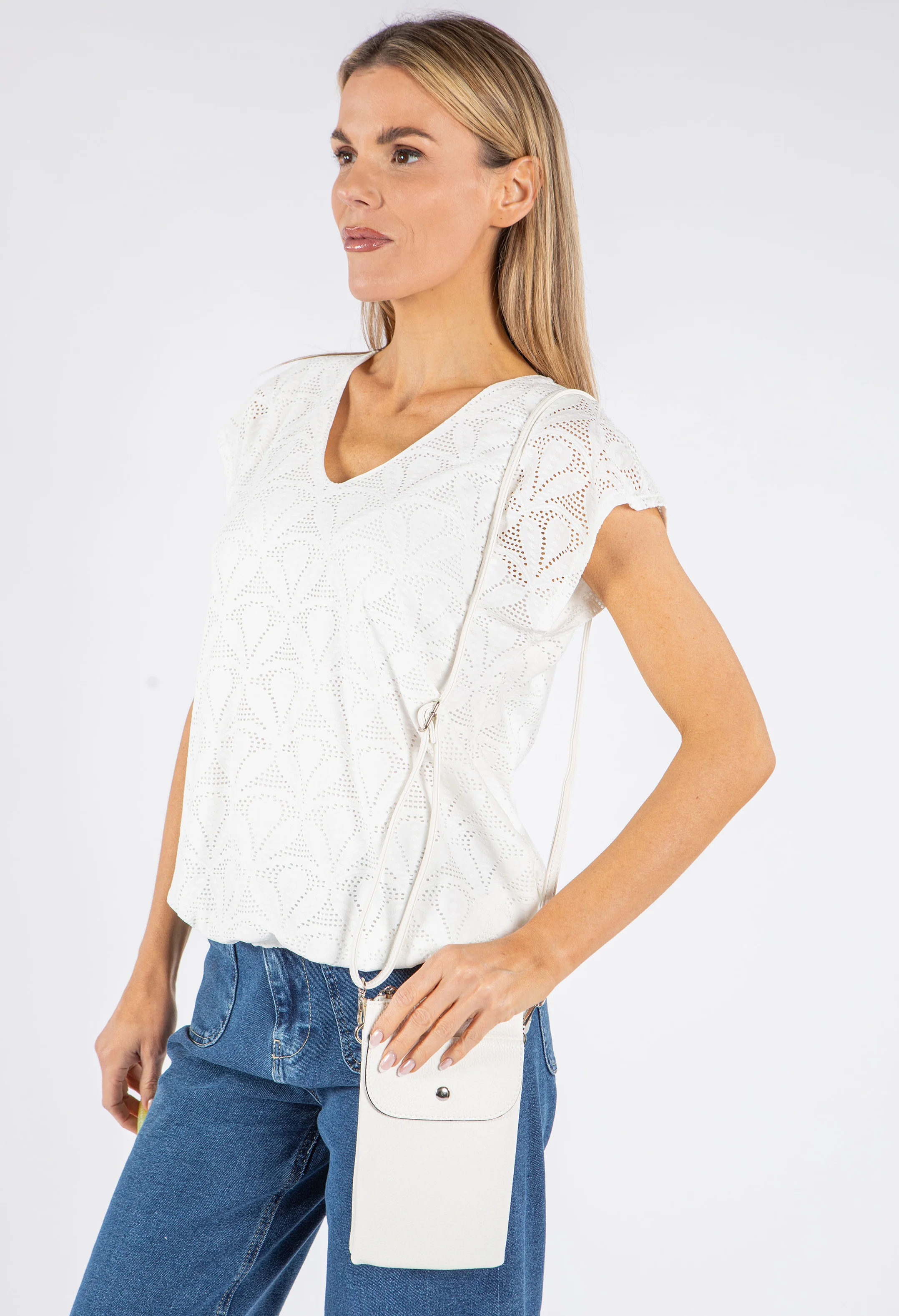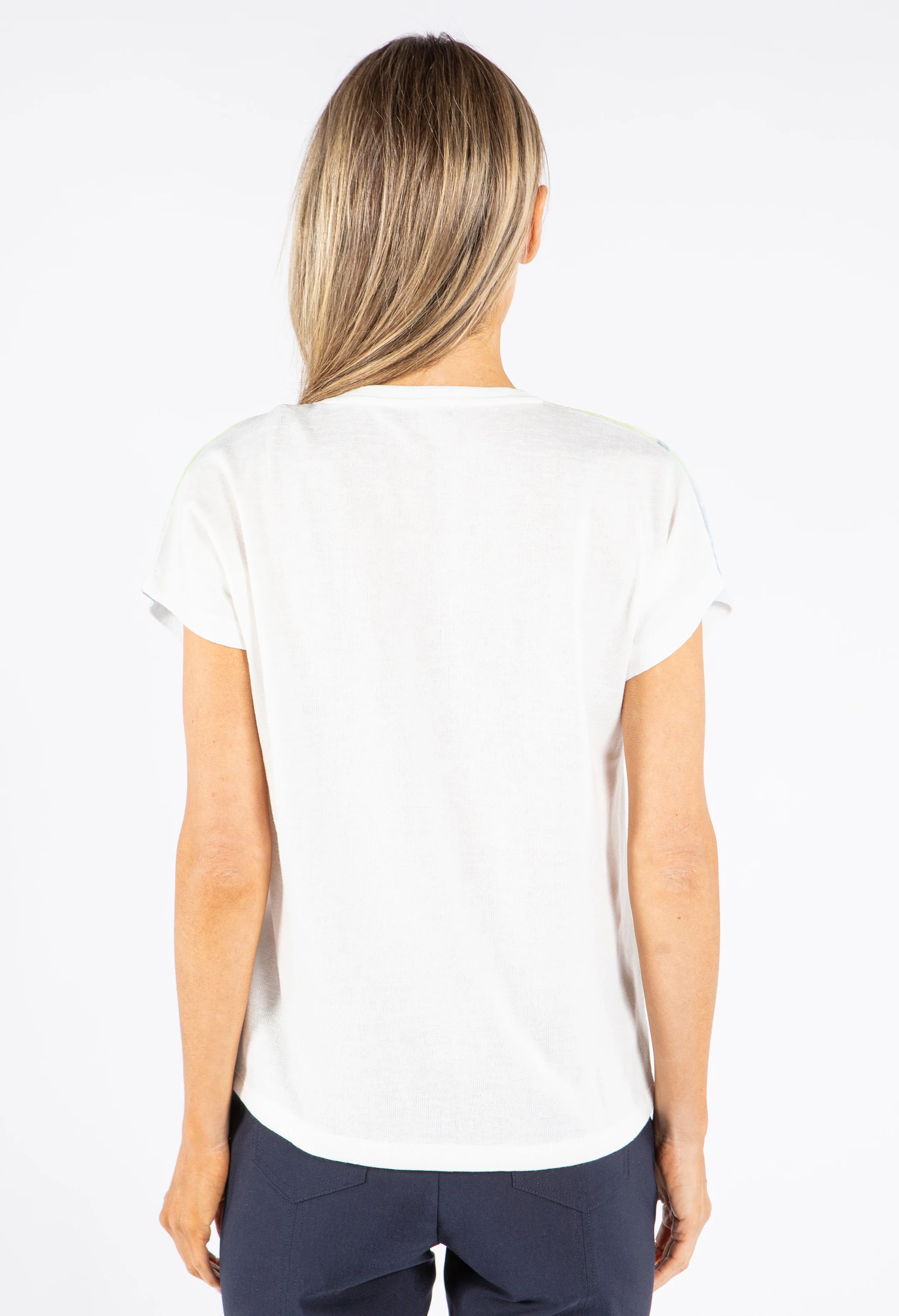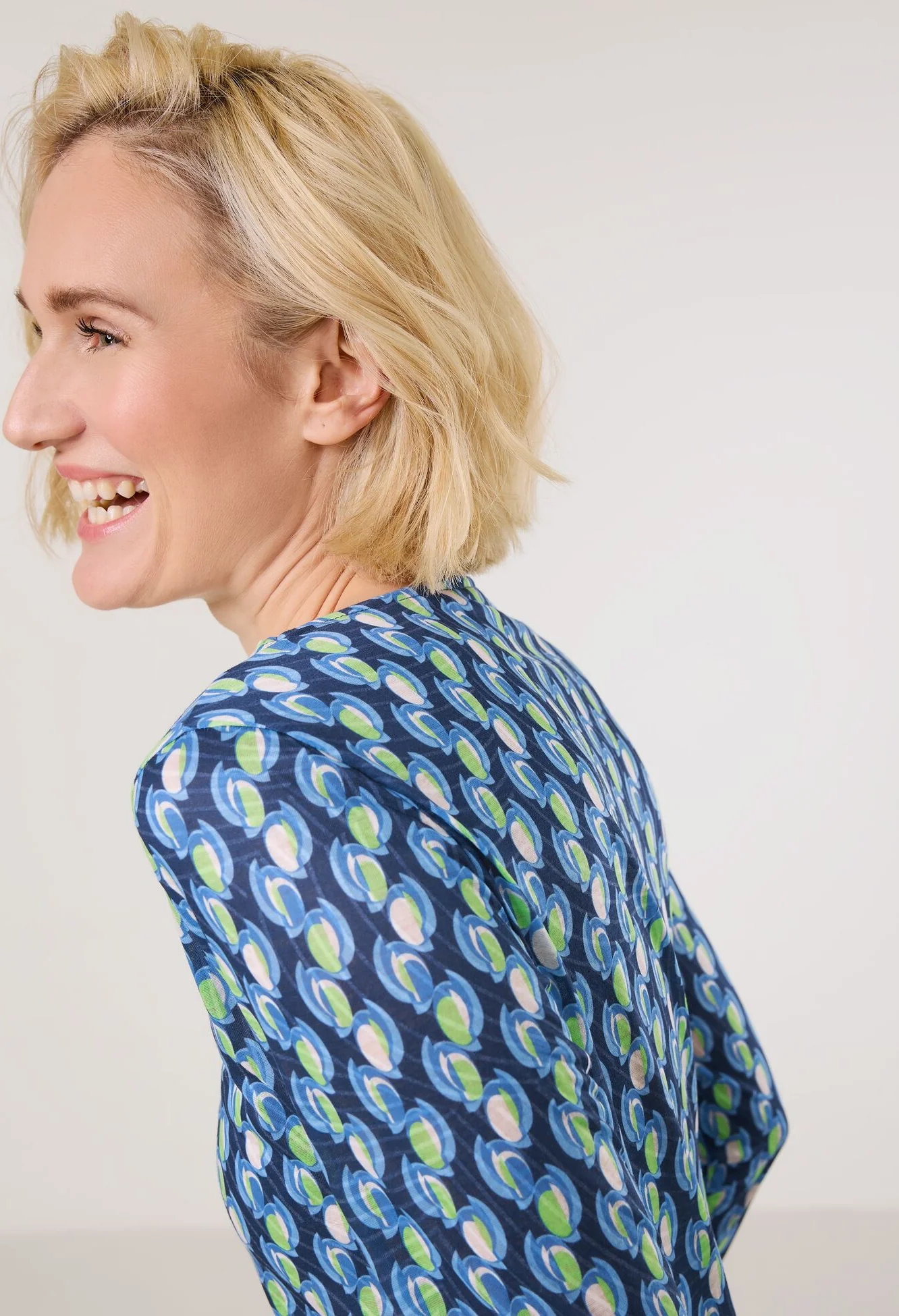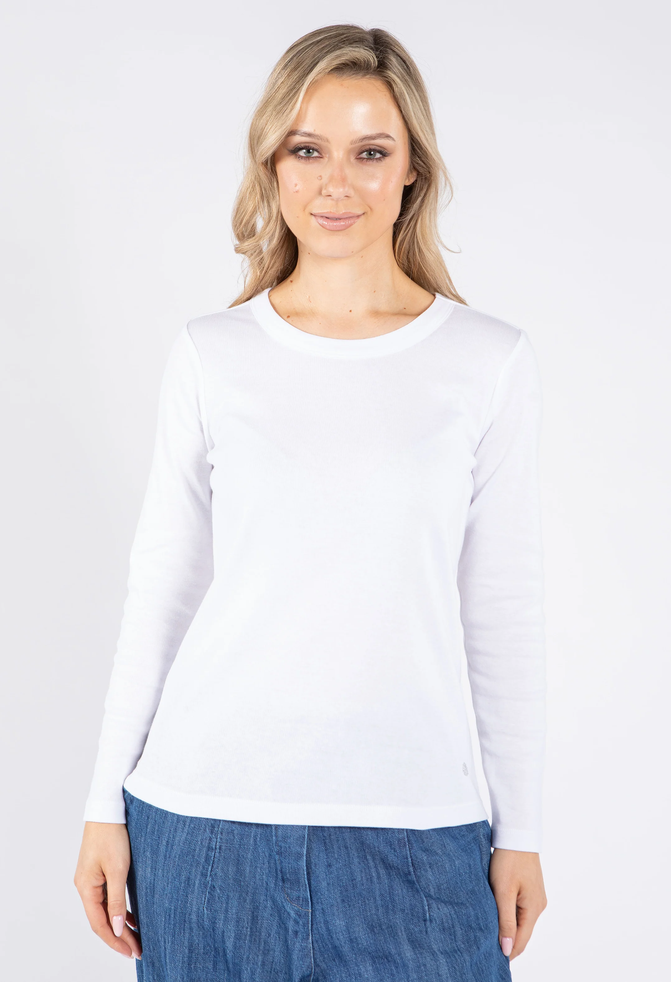 Long Sleeve Crew Neck Button Placket Knit Top with Chain Detail