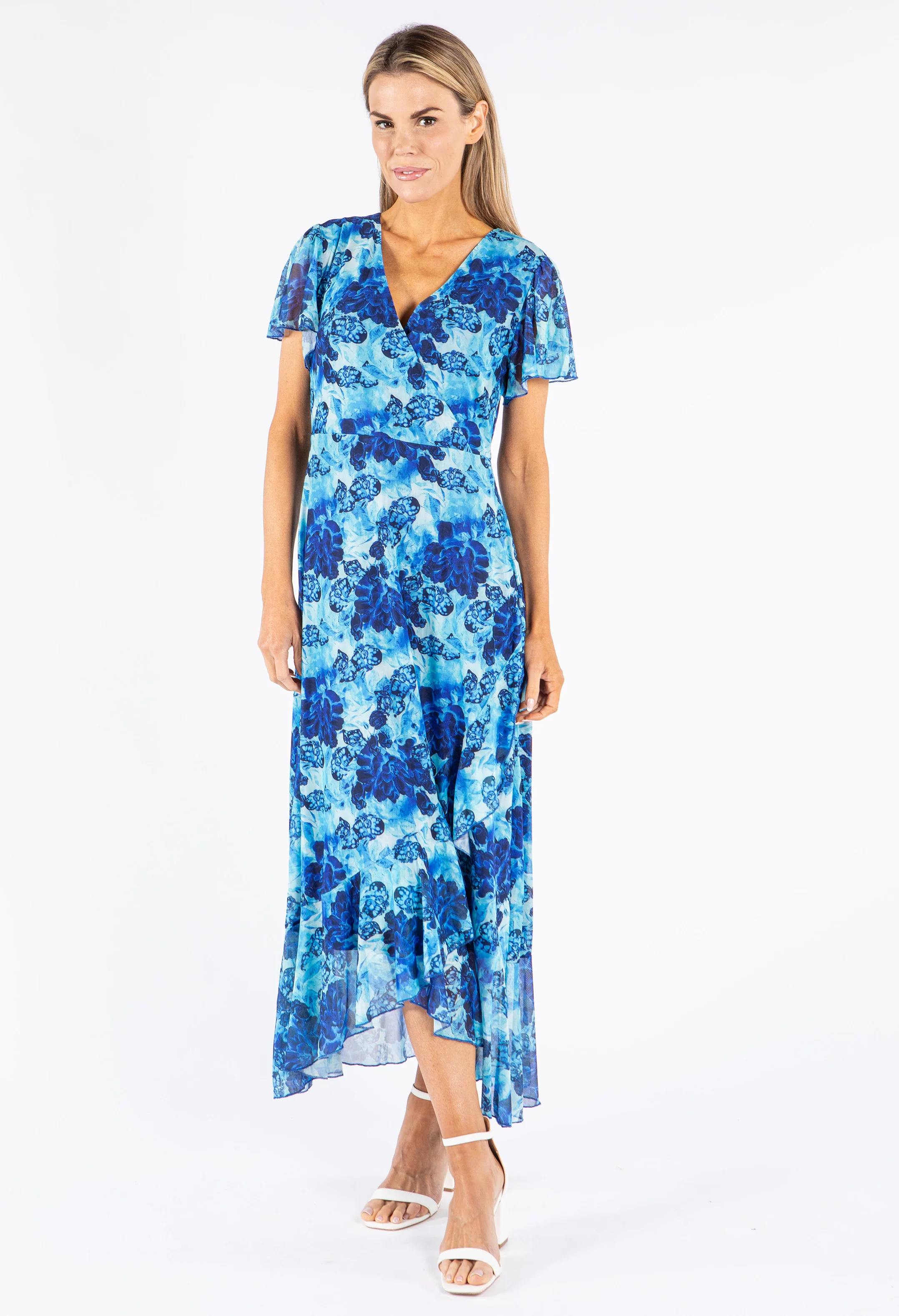 Mesh Floral Print Wrap Dress