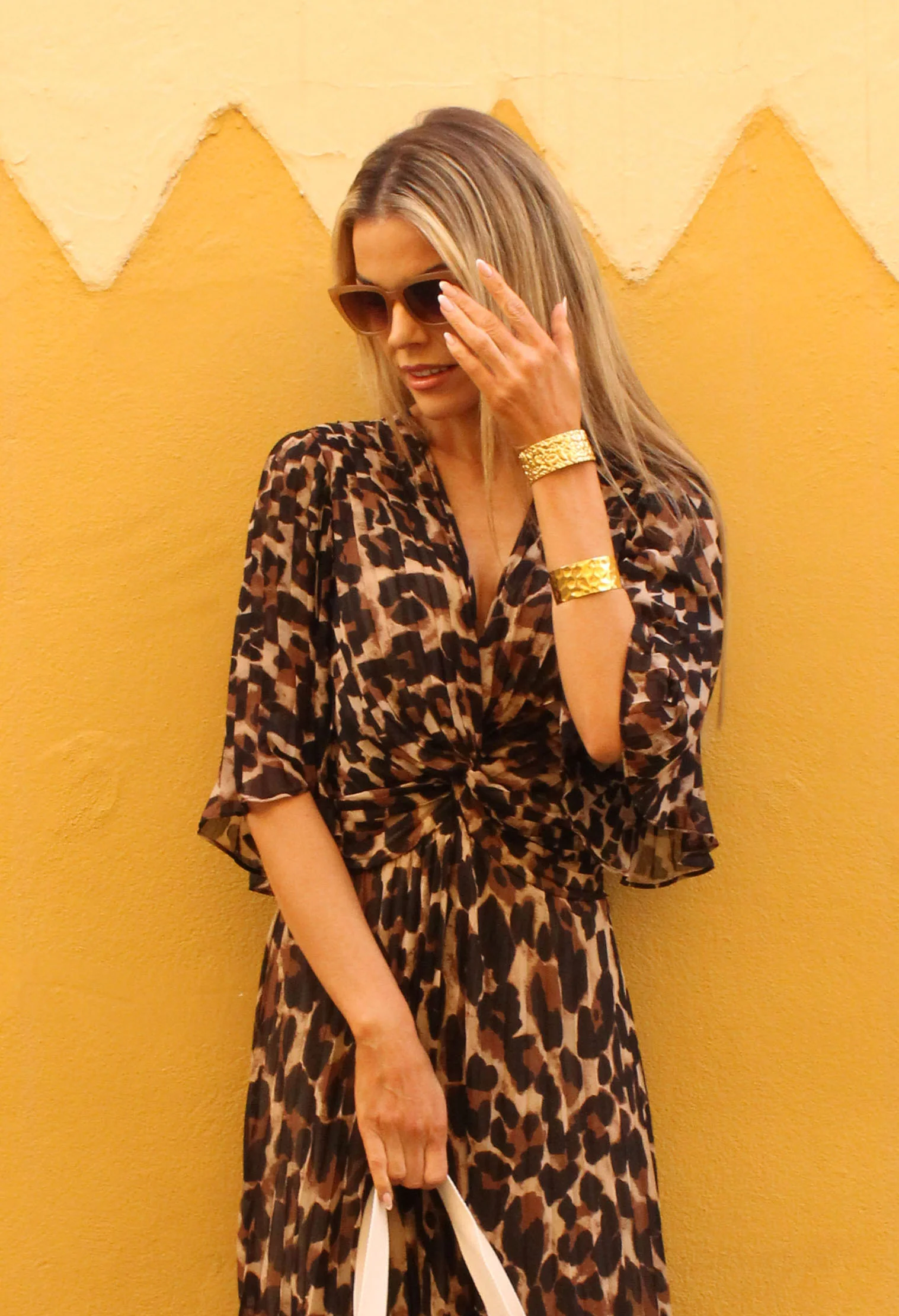 Mini Leopard Print Tie Waist Round Neckline Dress