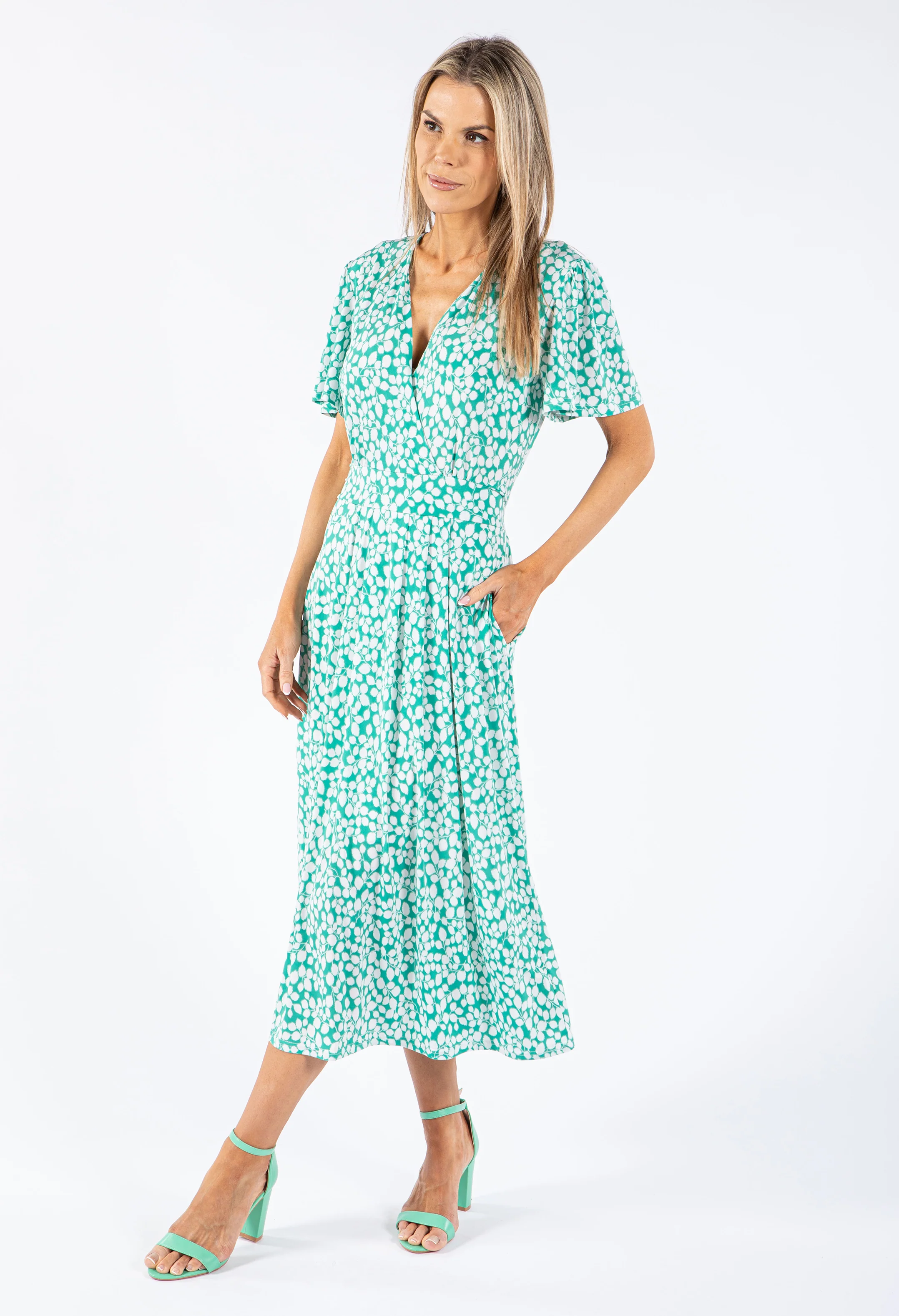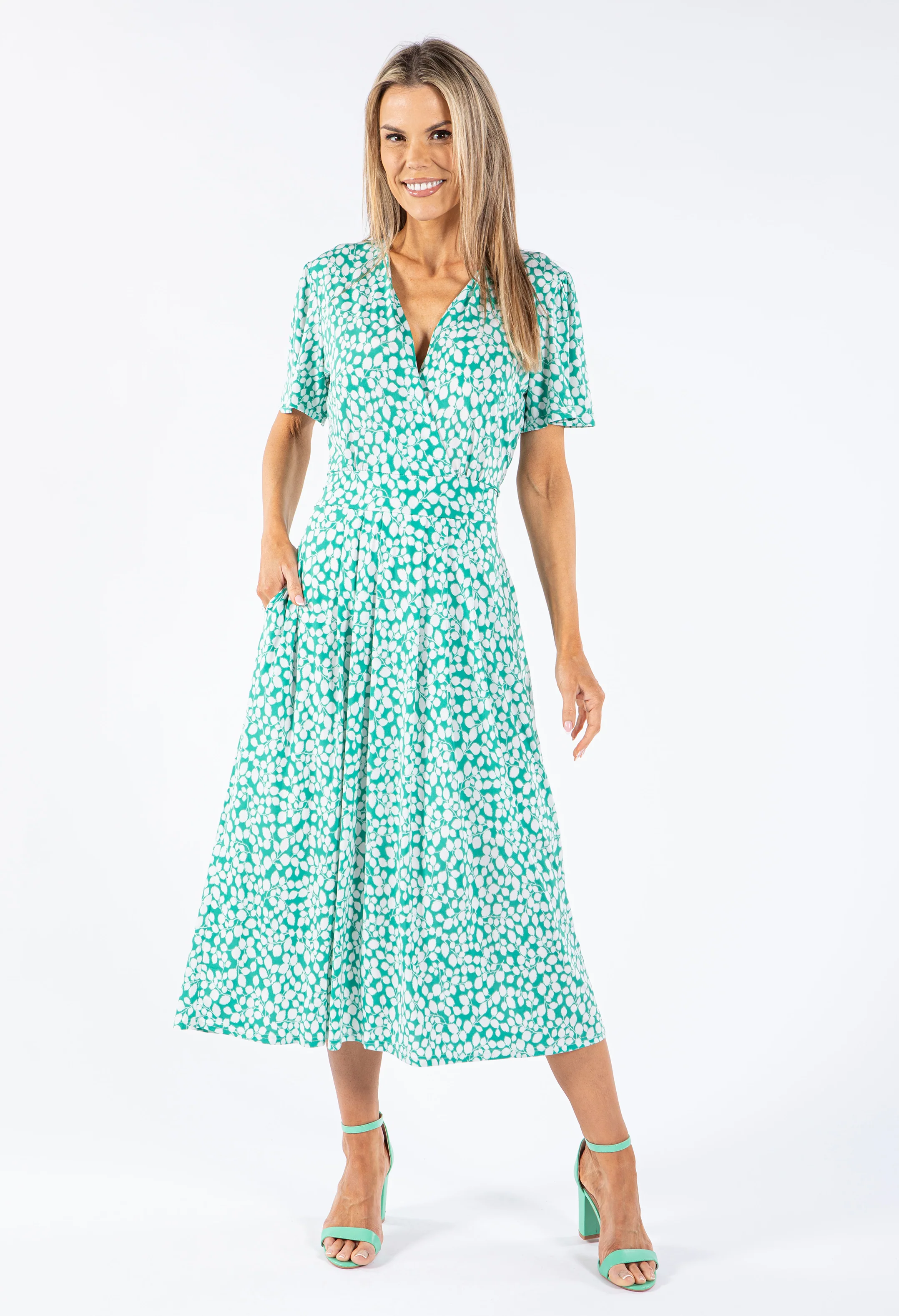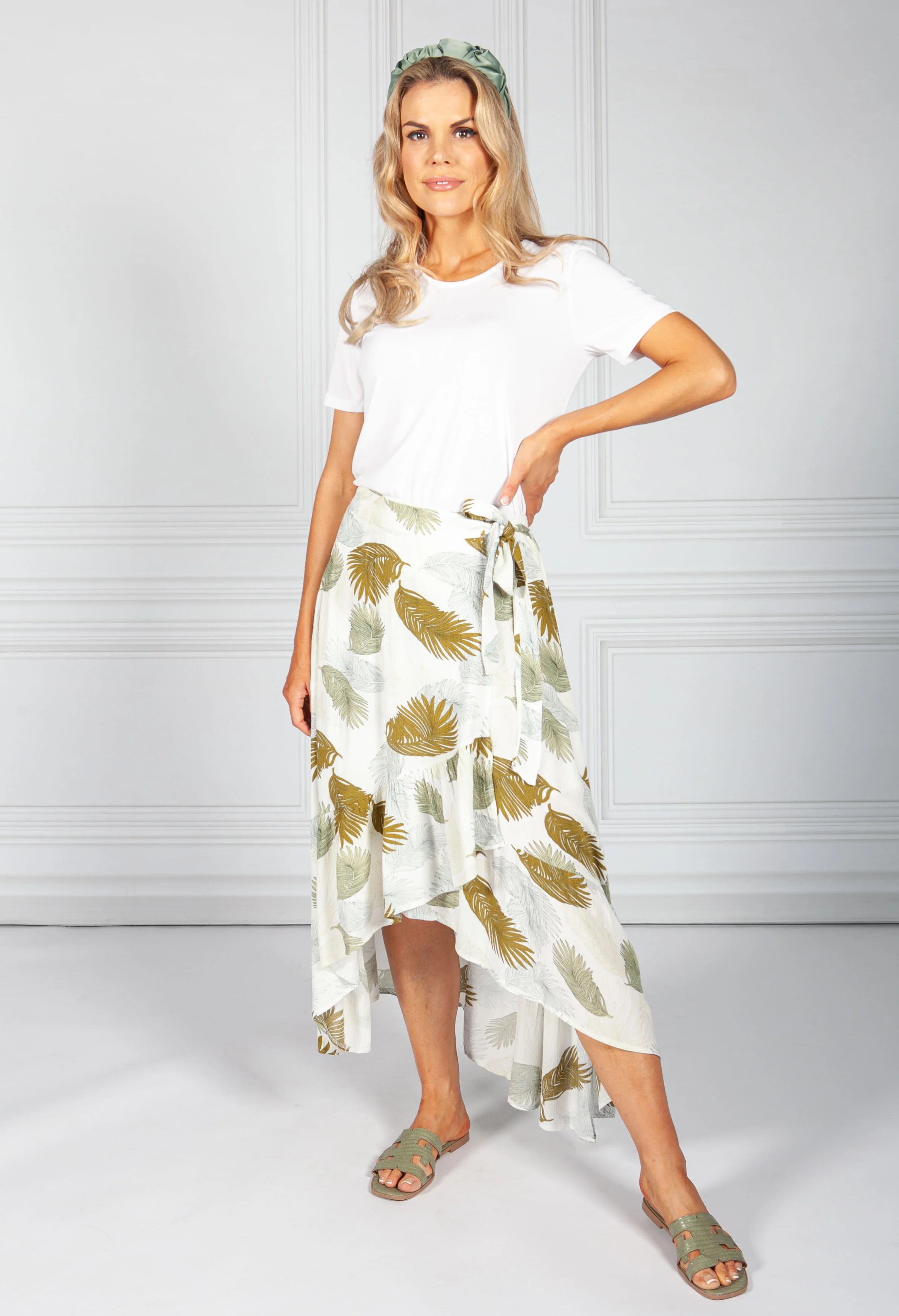 LEAF PRINT TOP WITH STUD DETAIL IN KHAKI