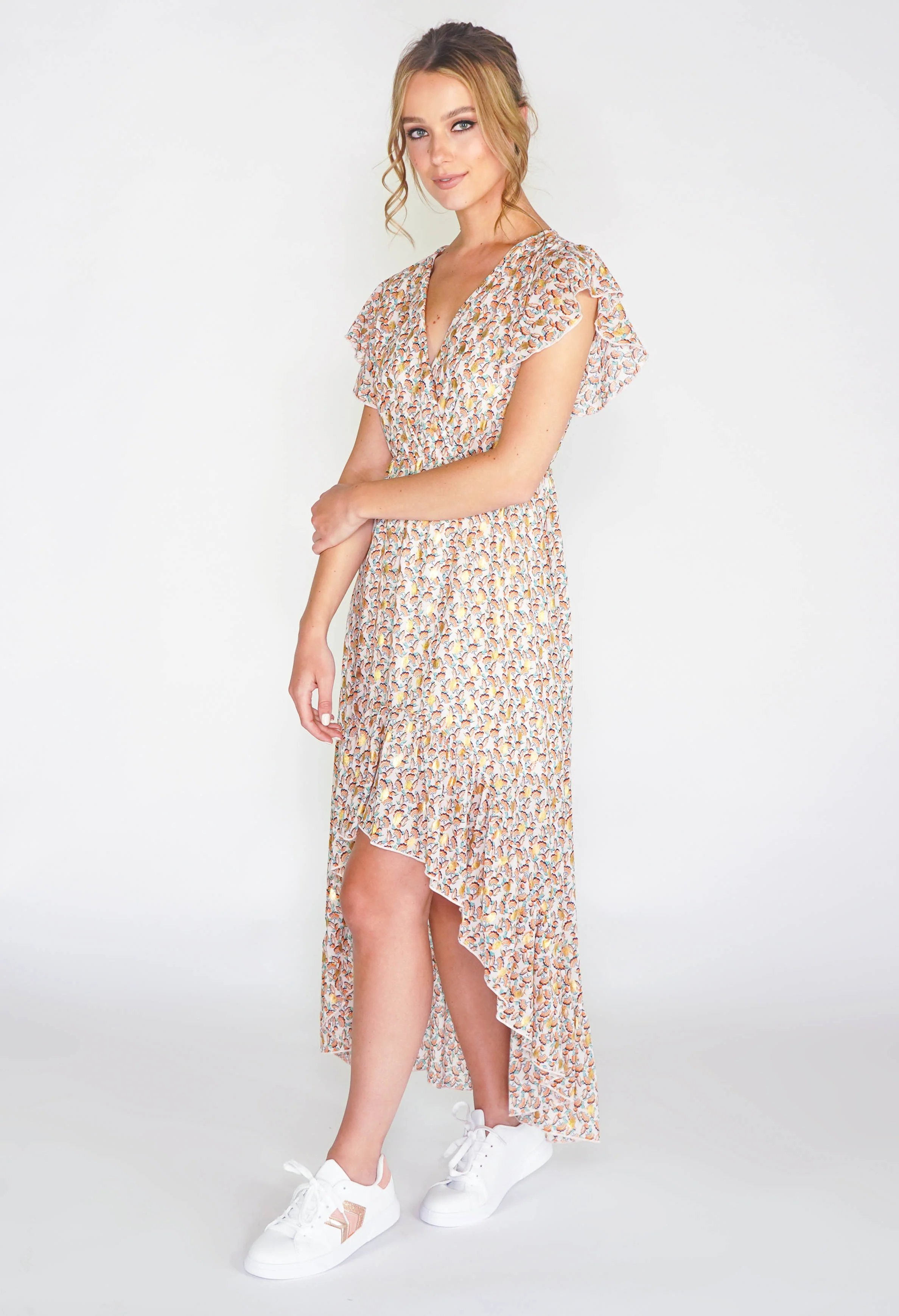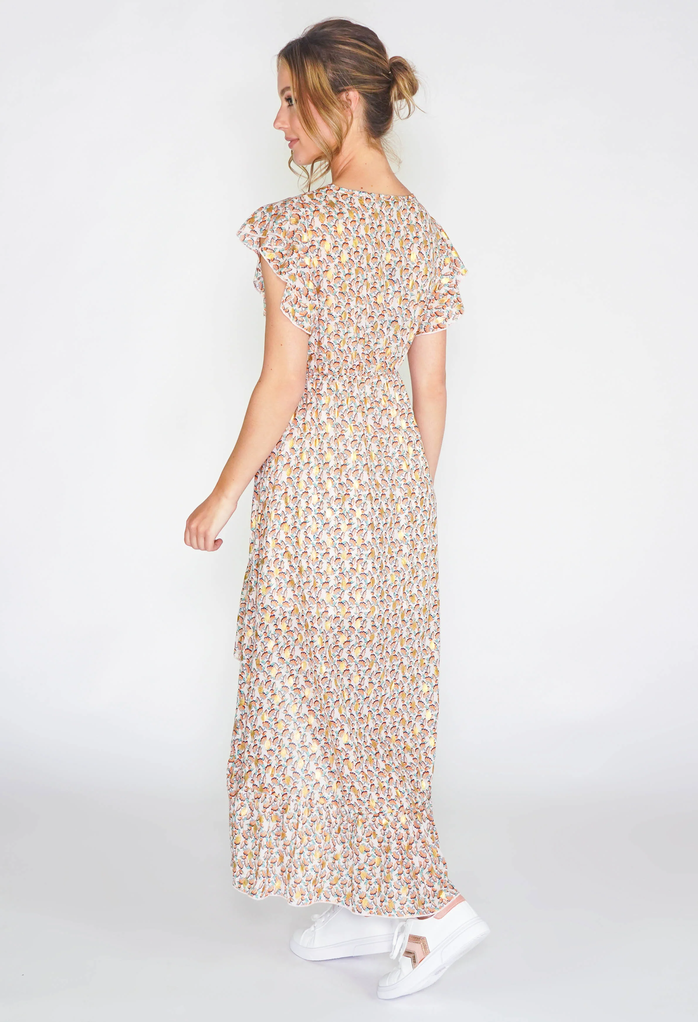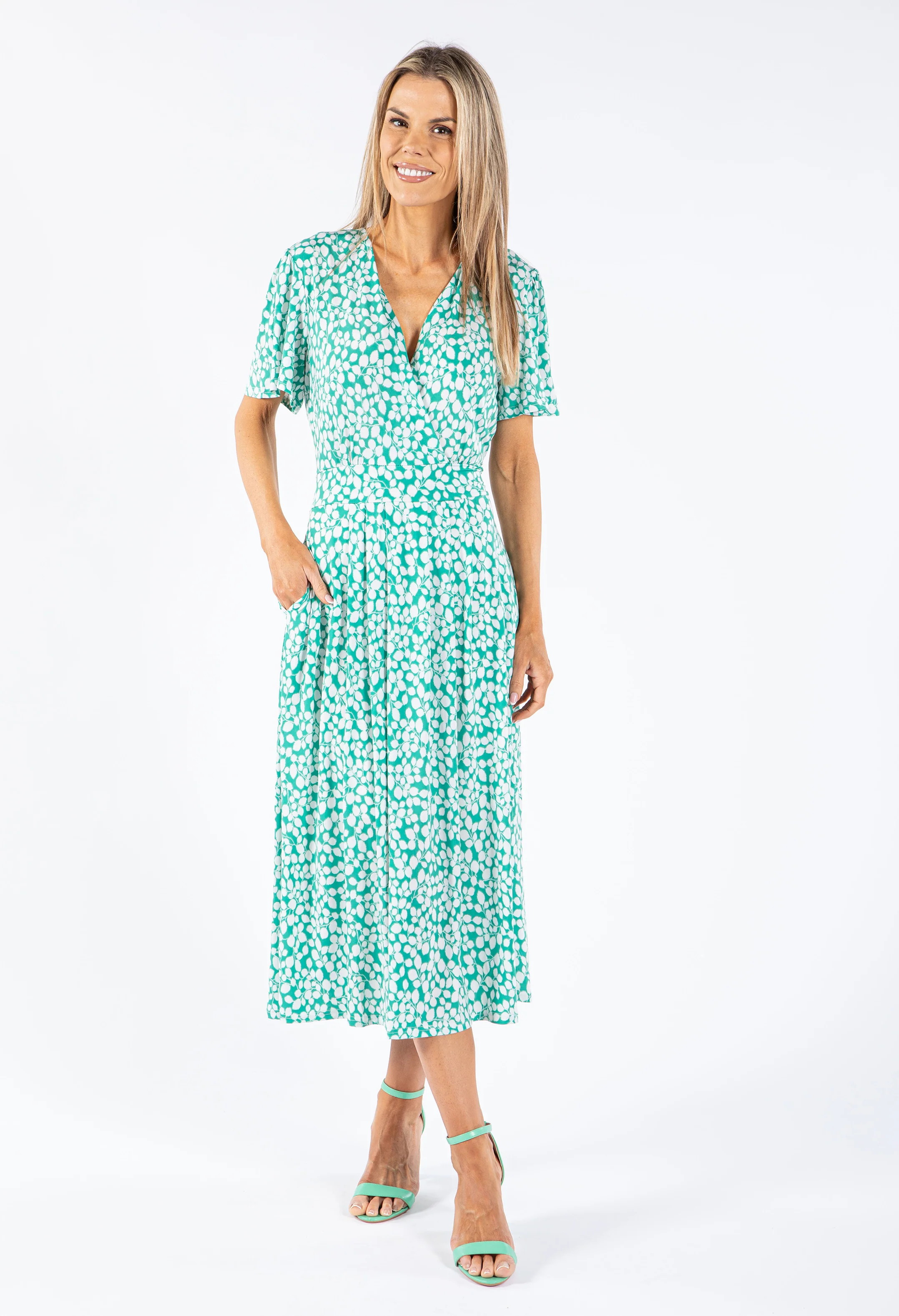 LEAF PRINT TOP WITH STUD DETAIL IN KHAKI