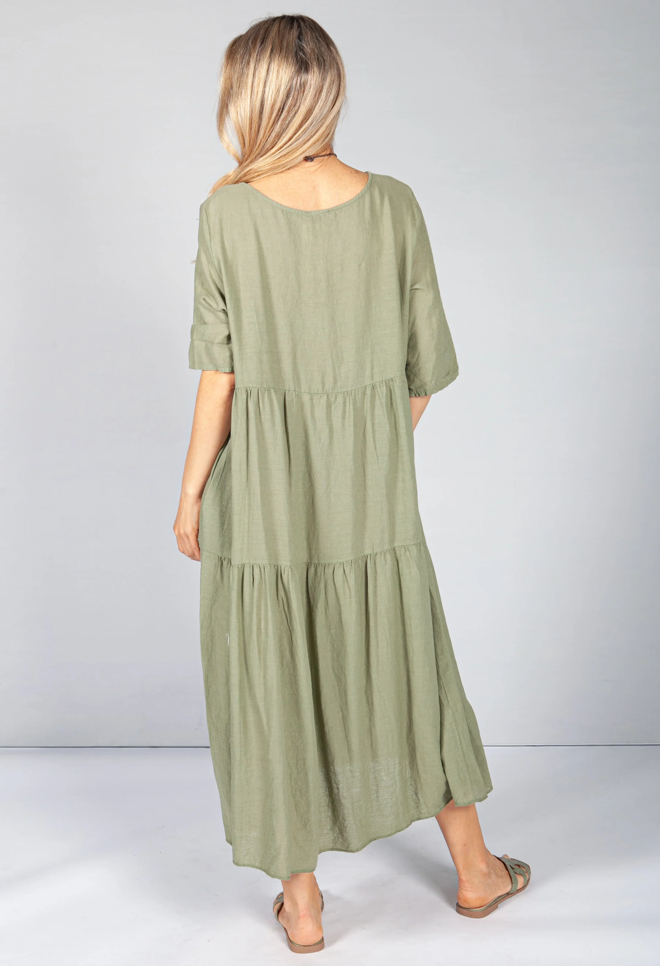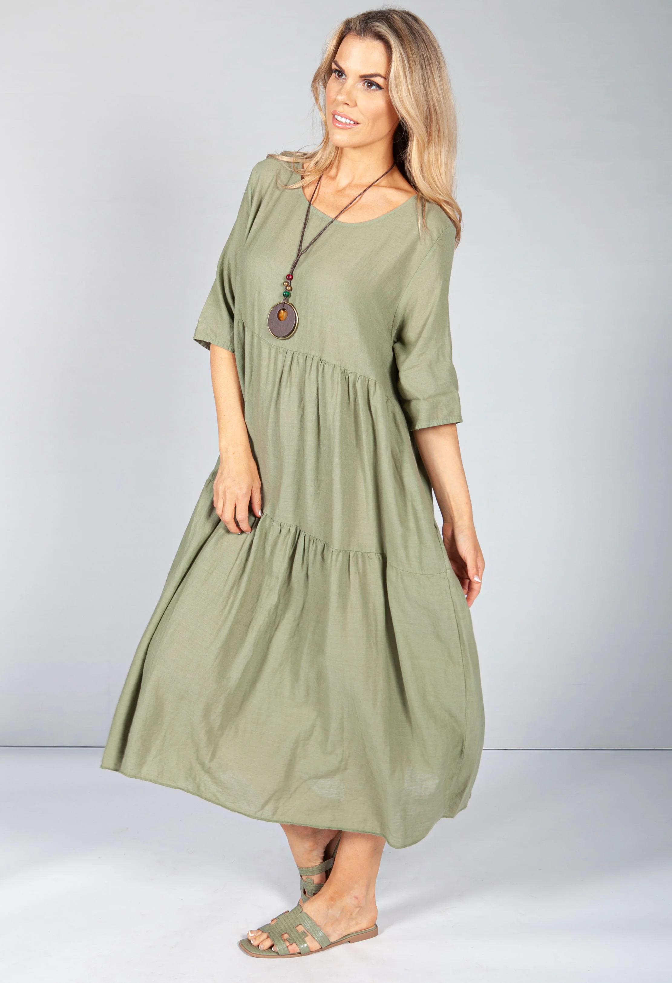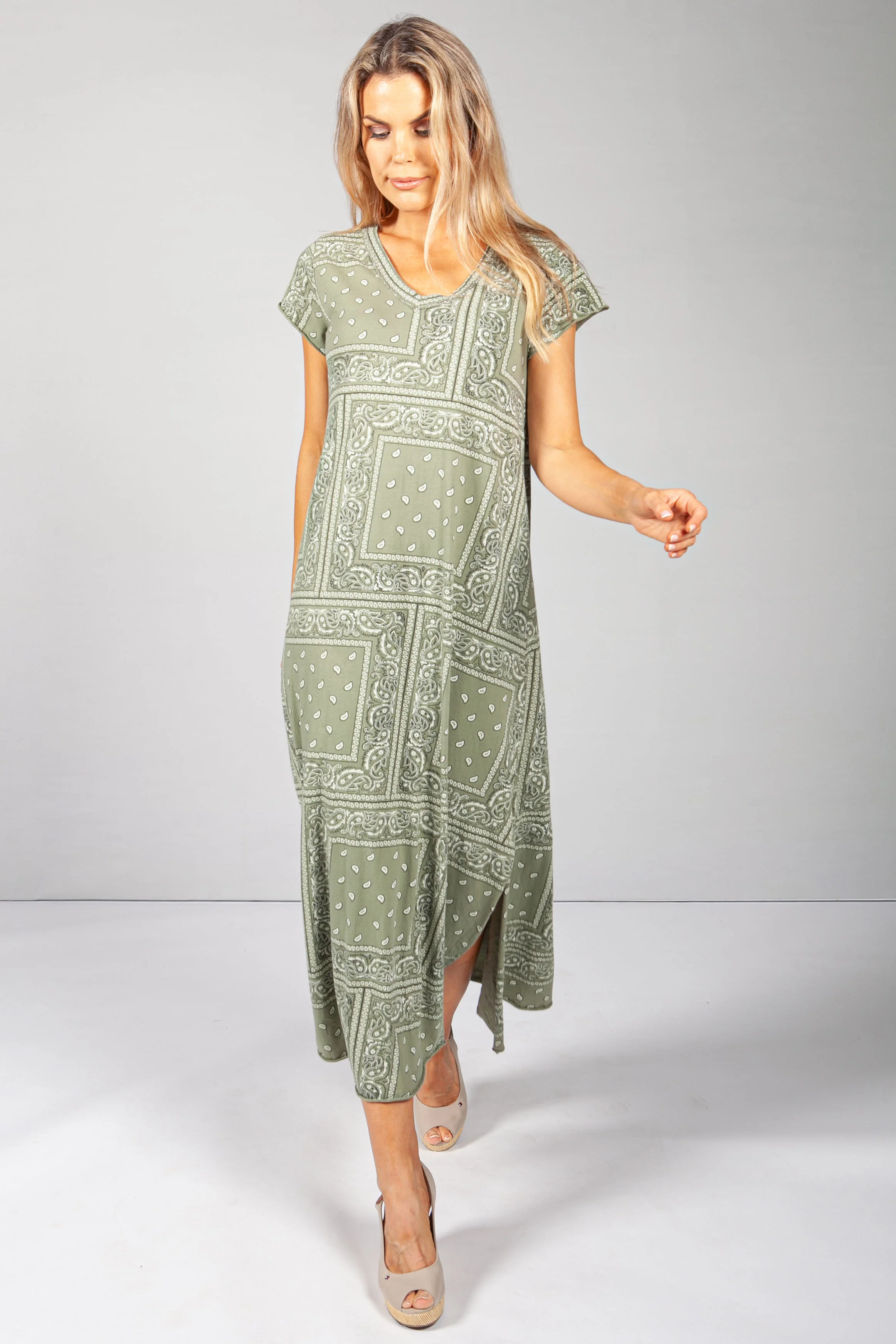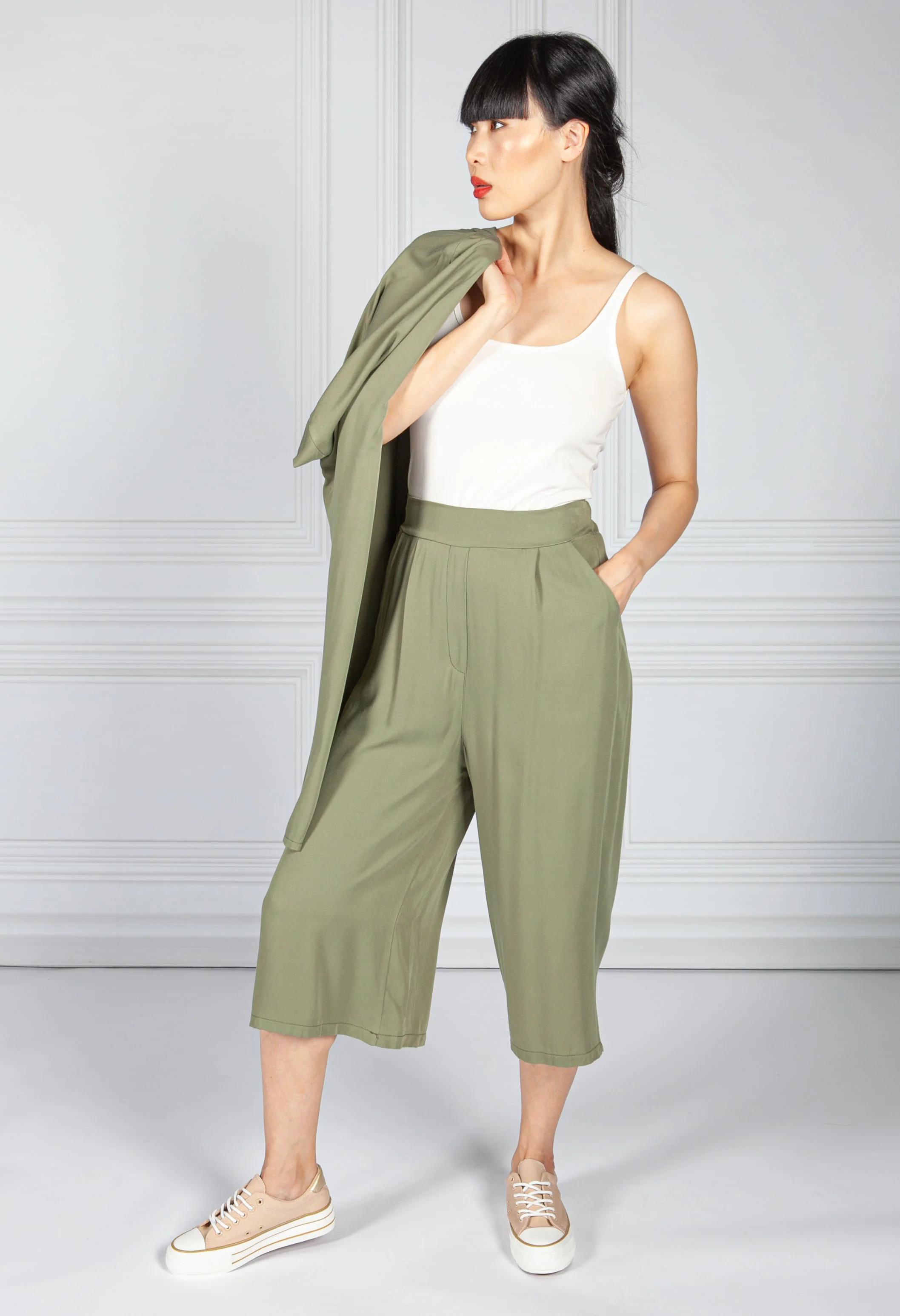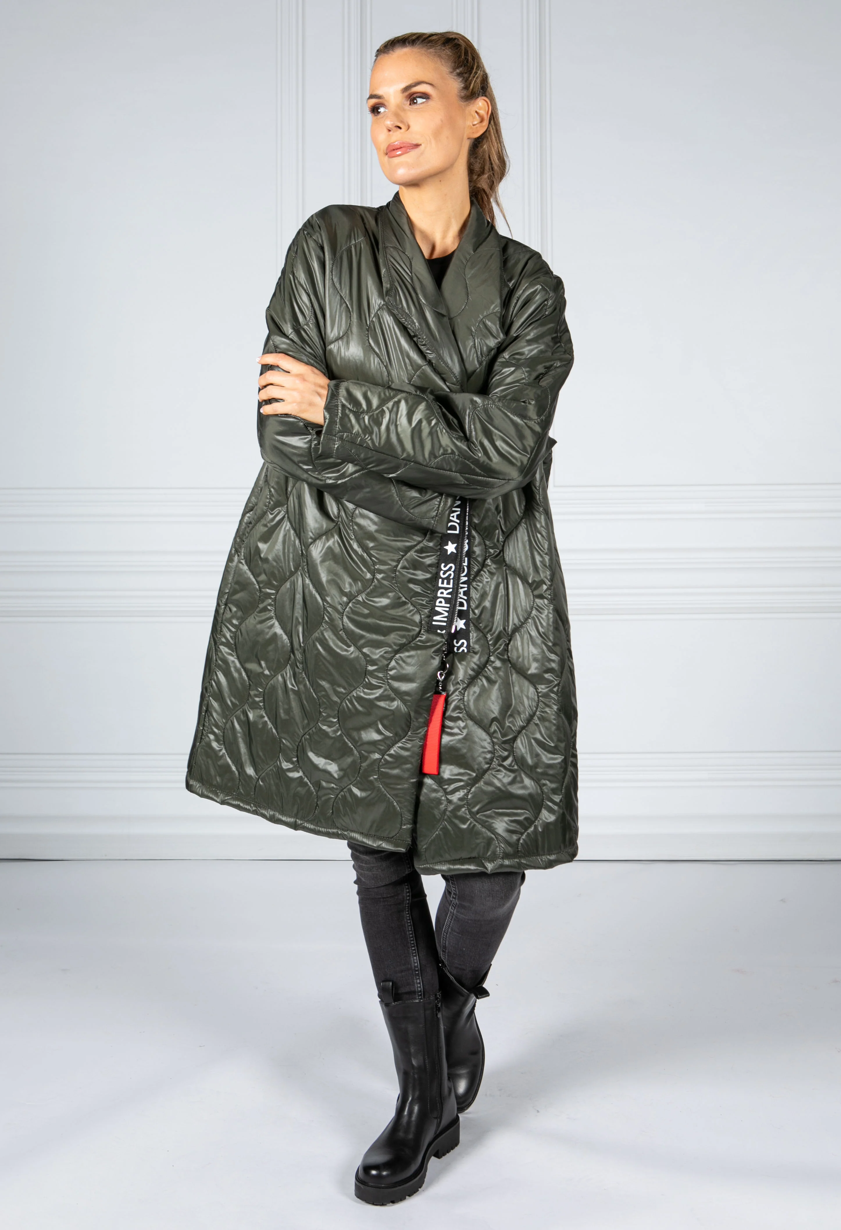 Khaki Maxi Kimono Style Cardigan & Pant Set