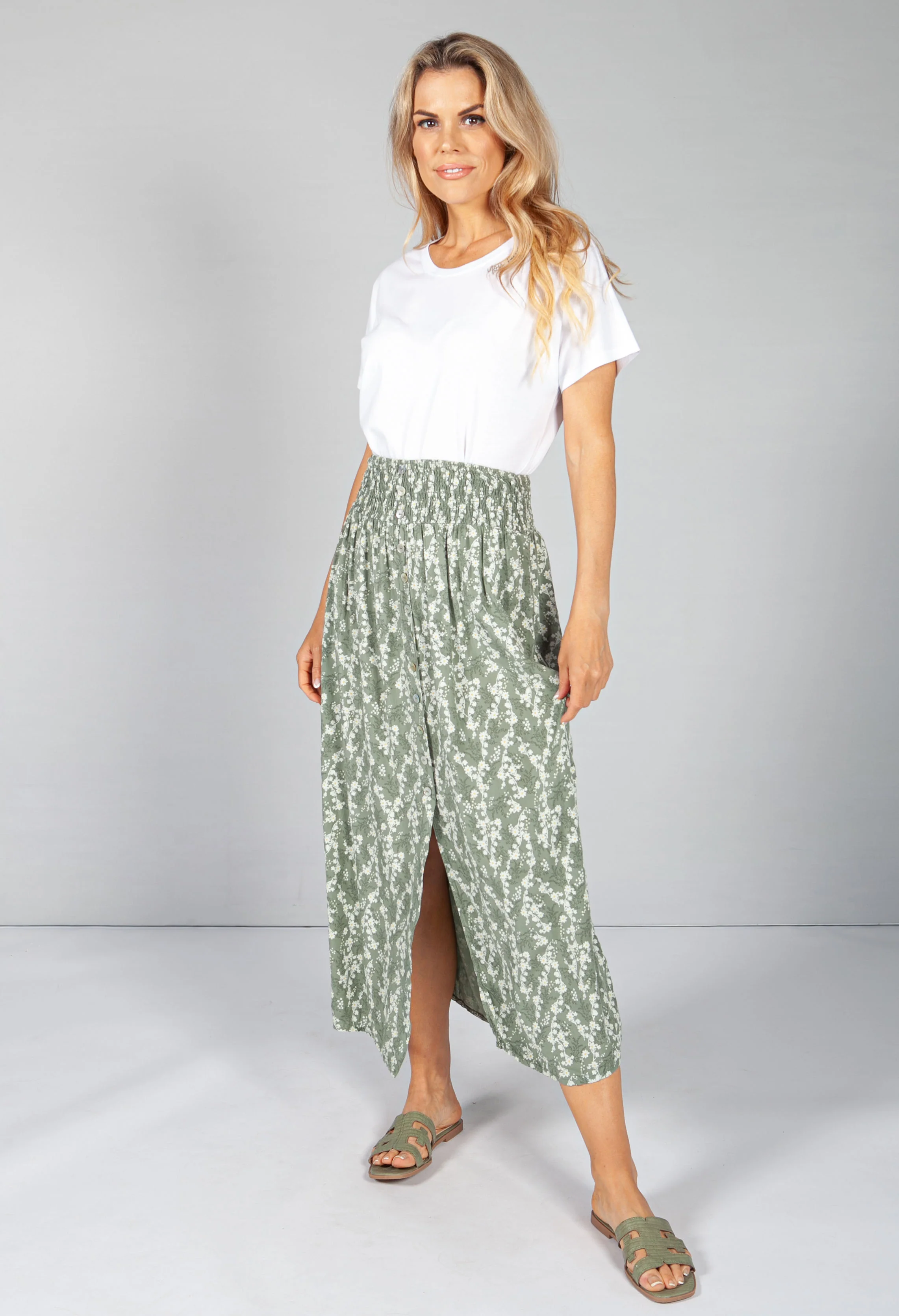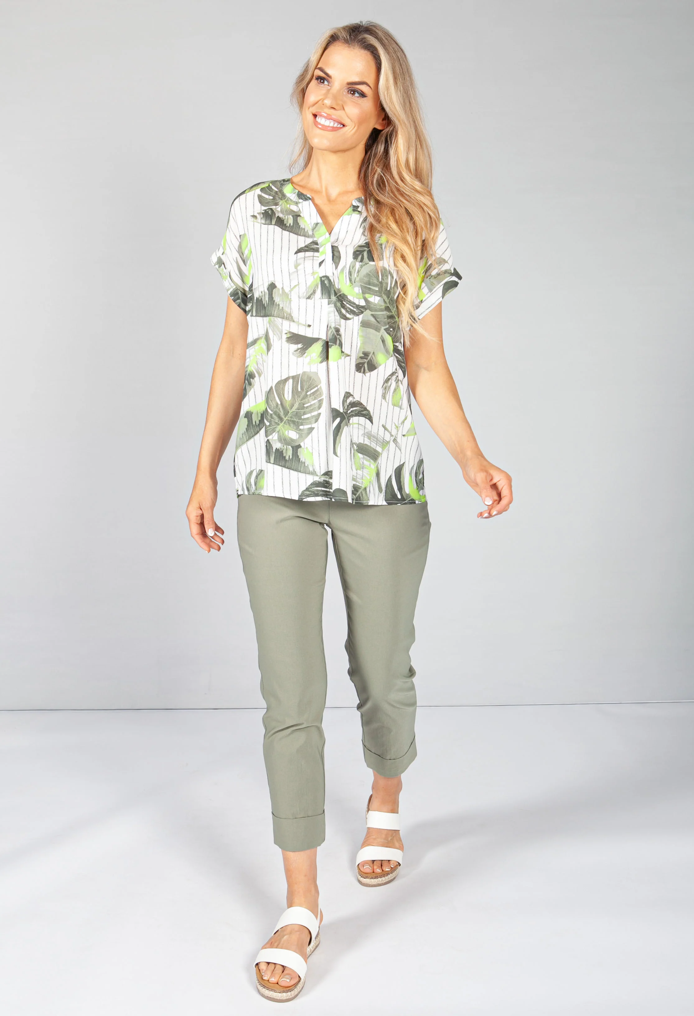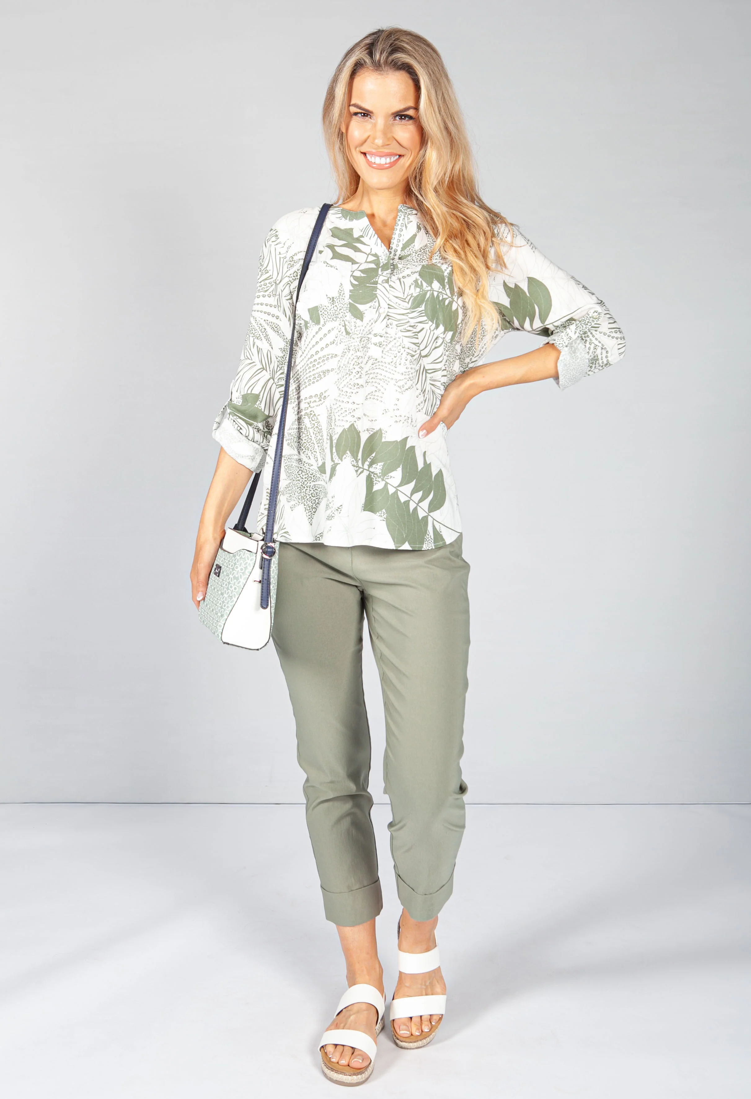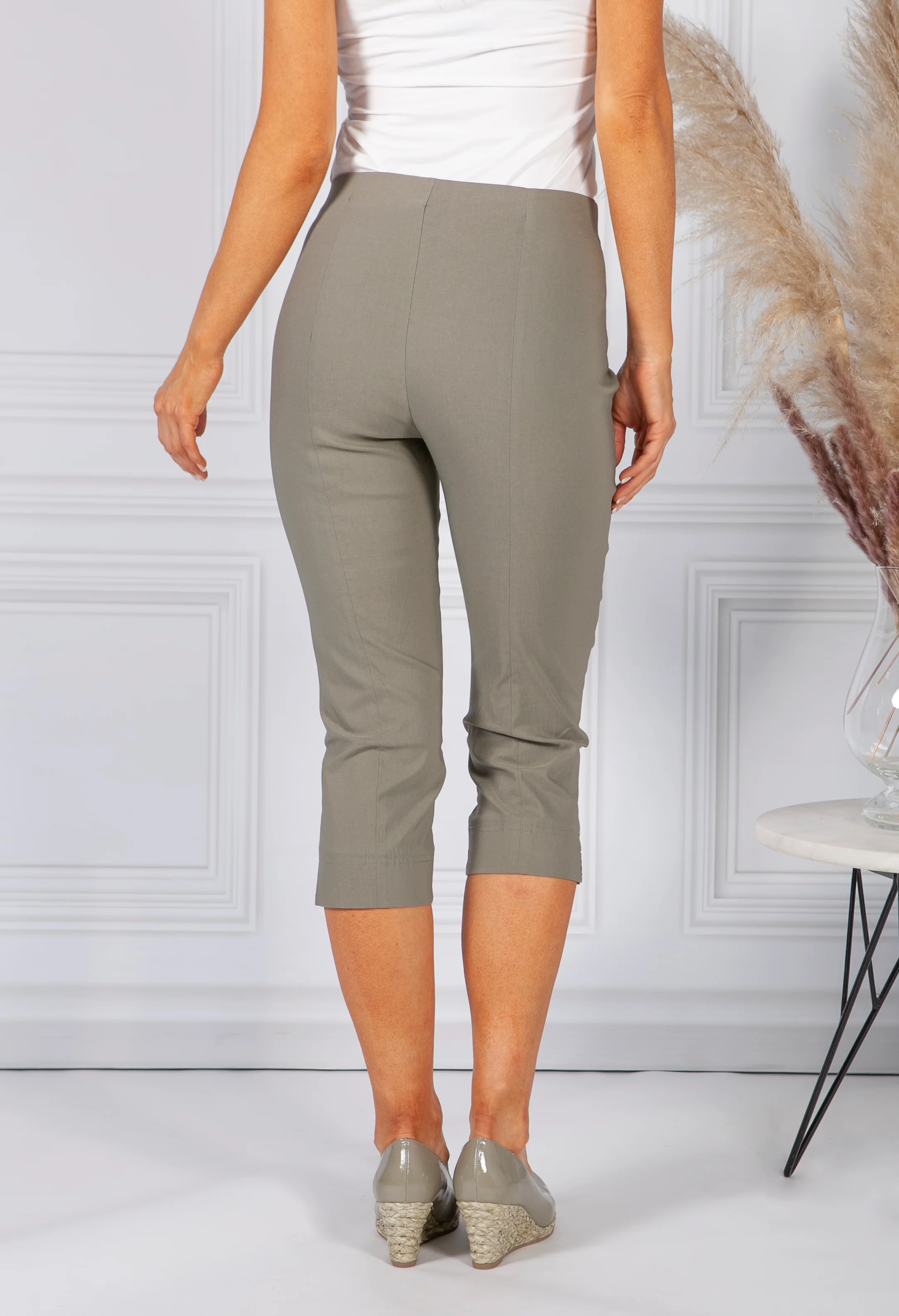 KHAKI GREEN MAGIC SHAPE CAPRIS WITH DIAMANTE DETAIL