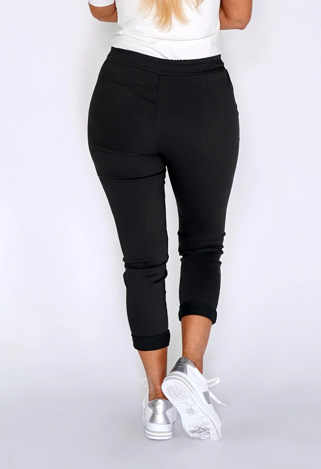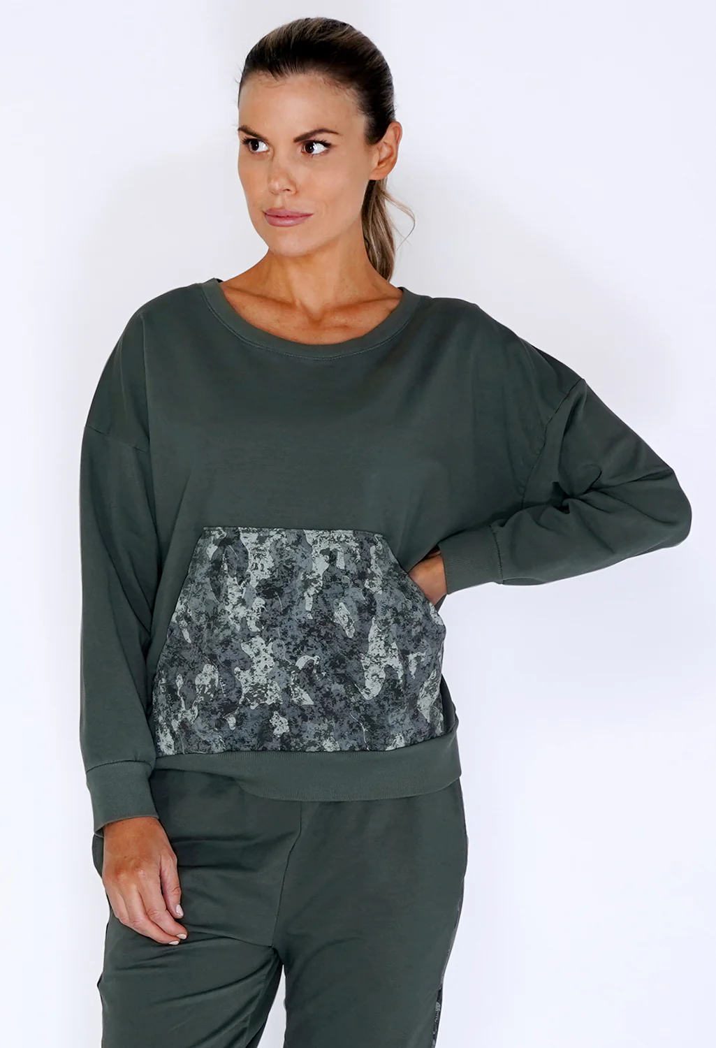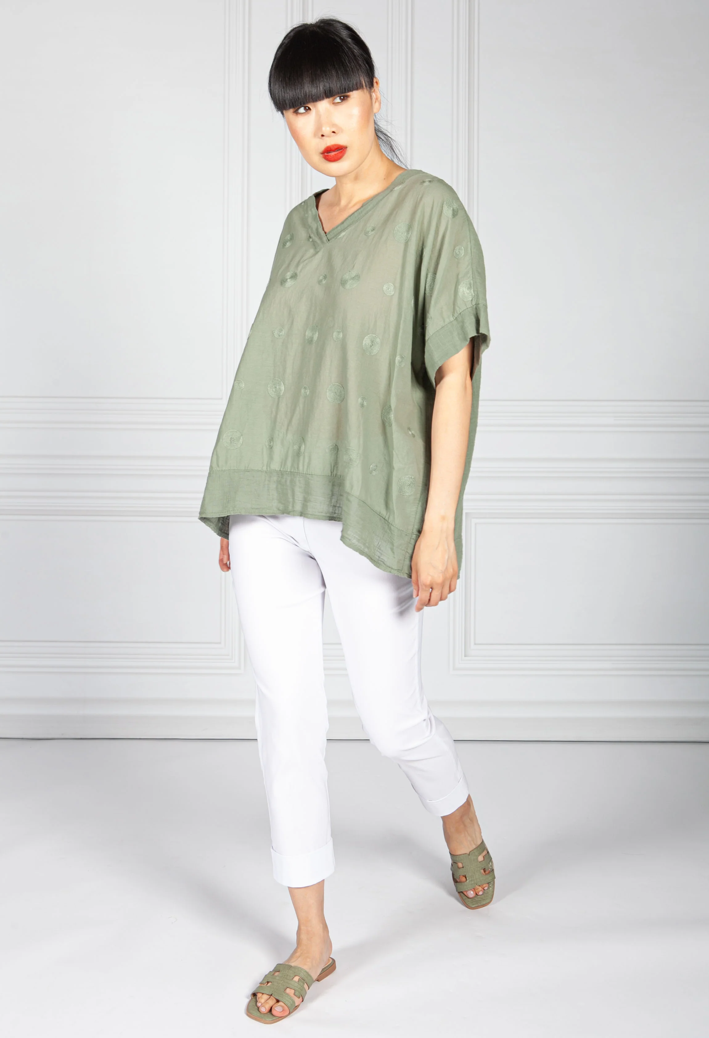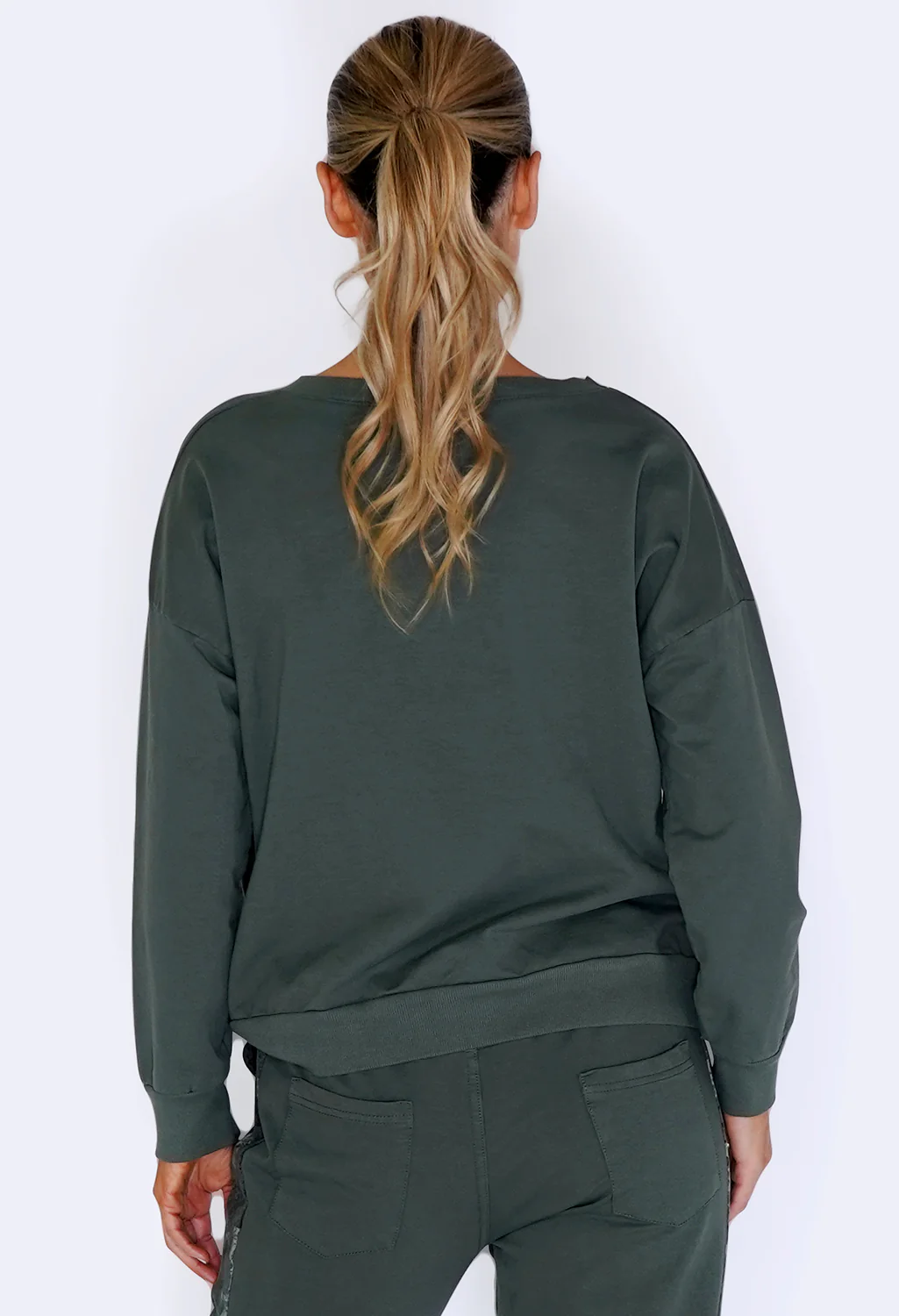 KHAKI GREEN MAGIC SHAPE CAPRIS WITH DIAMANTE DETAIL