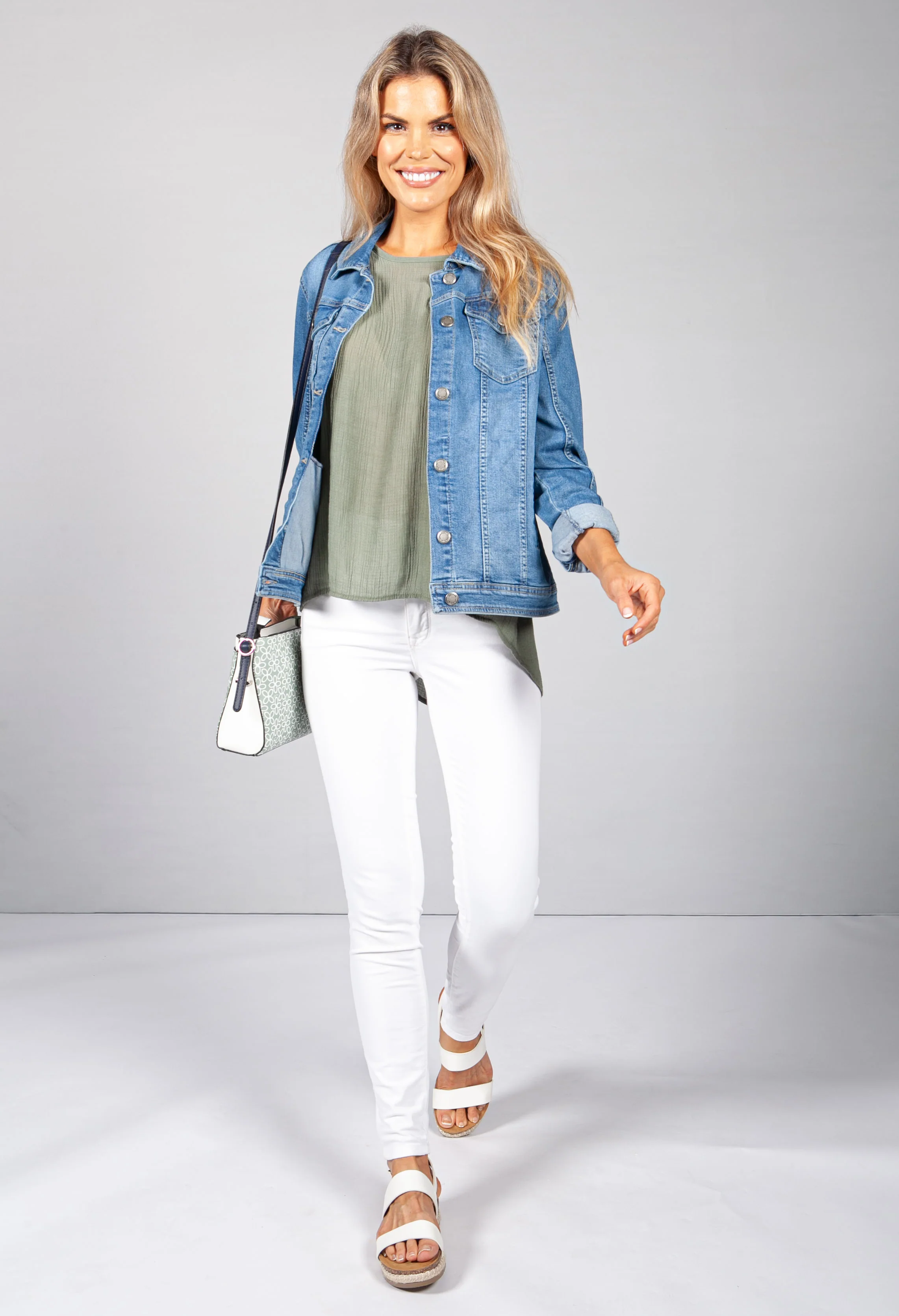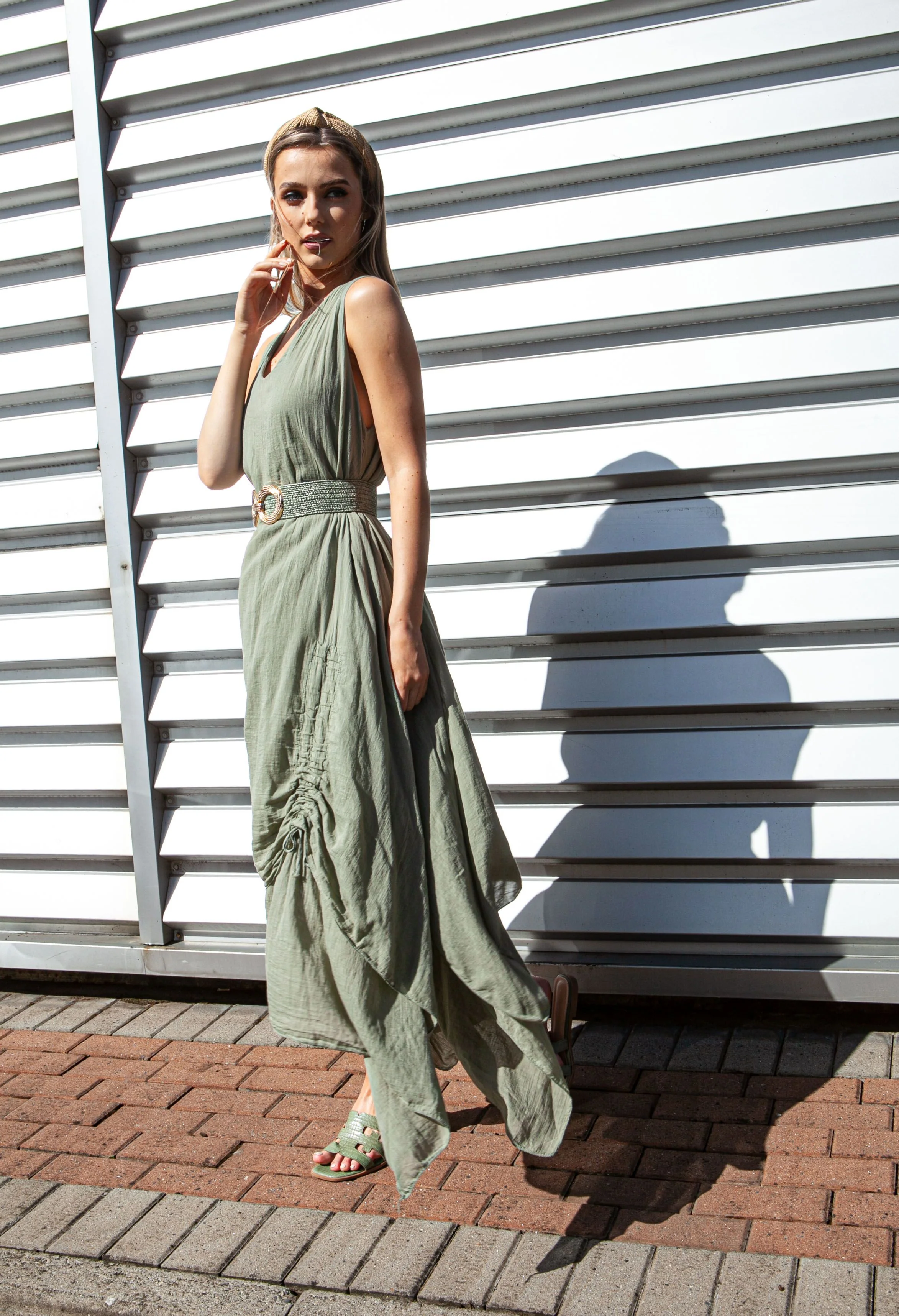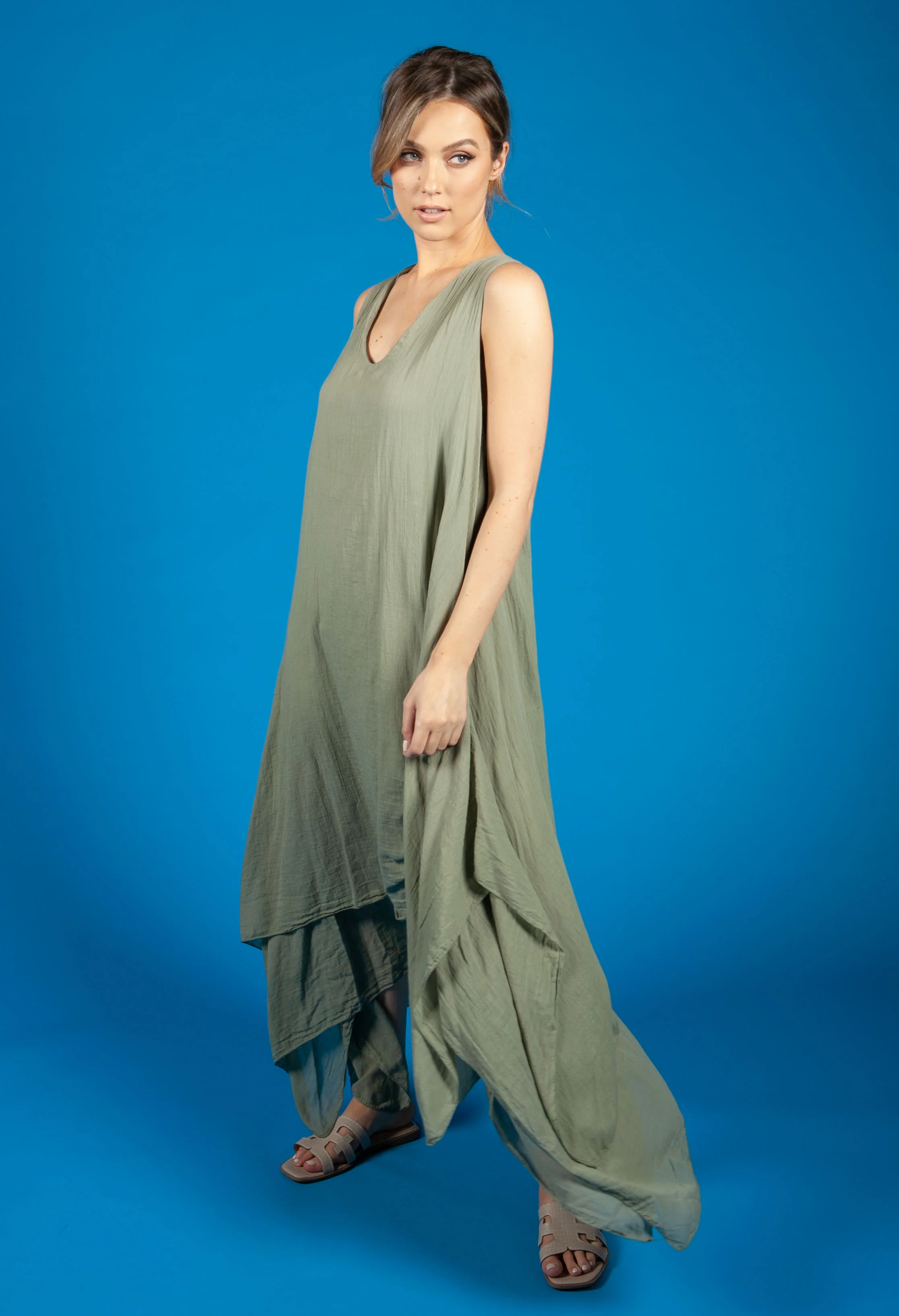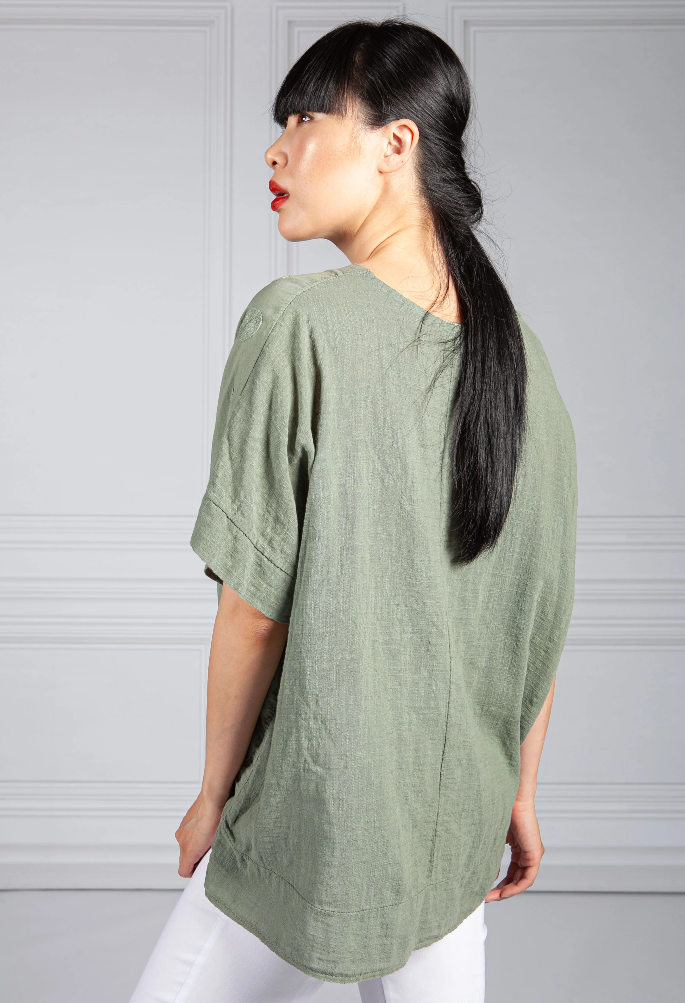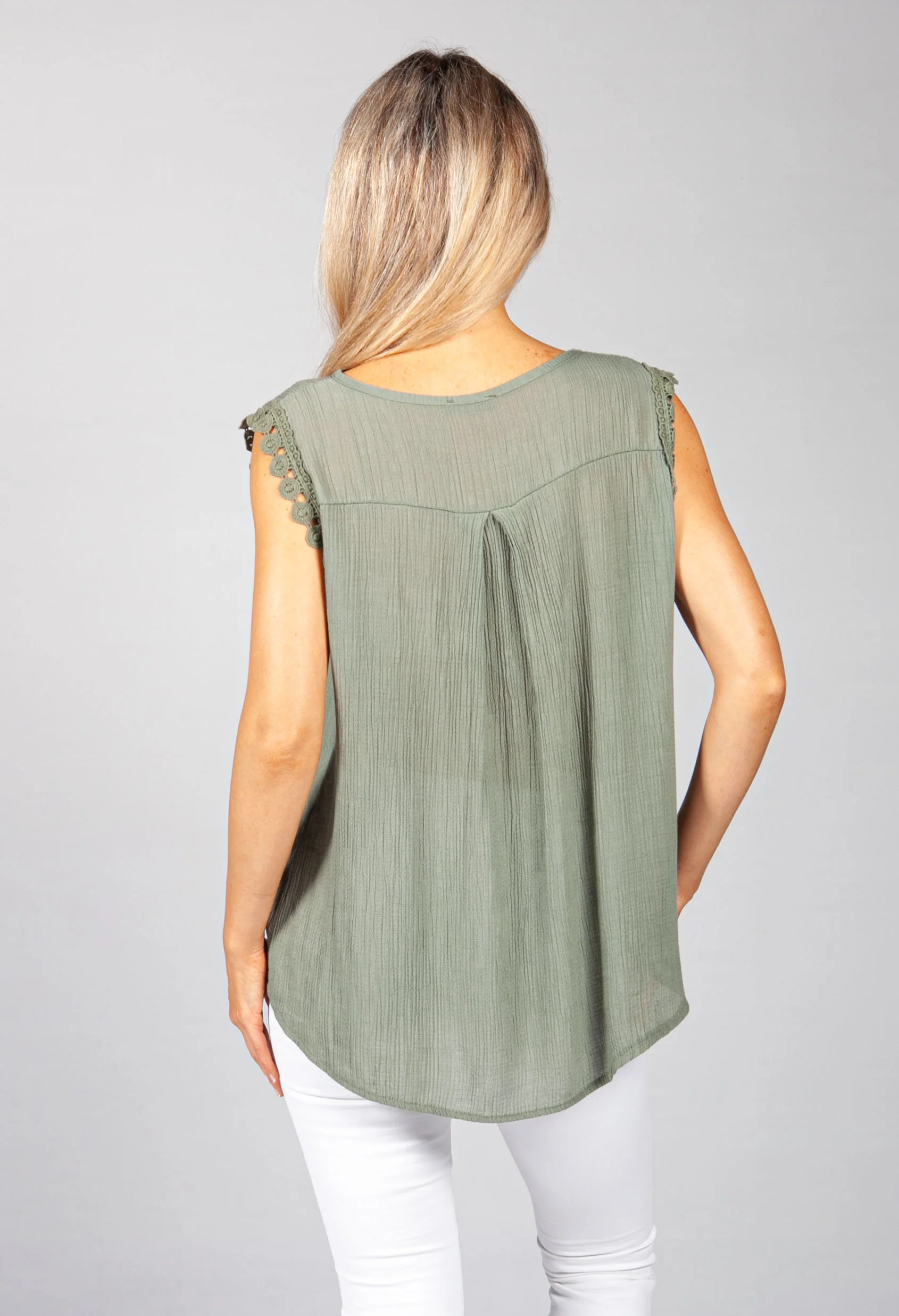 KHAKI GREEN MAGIC SHAPE CAPRIS WITH DIAMANTE DETAIL