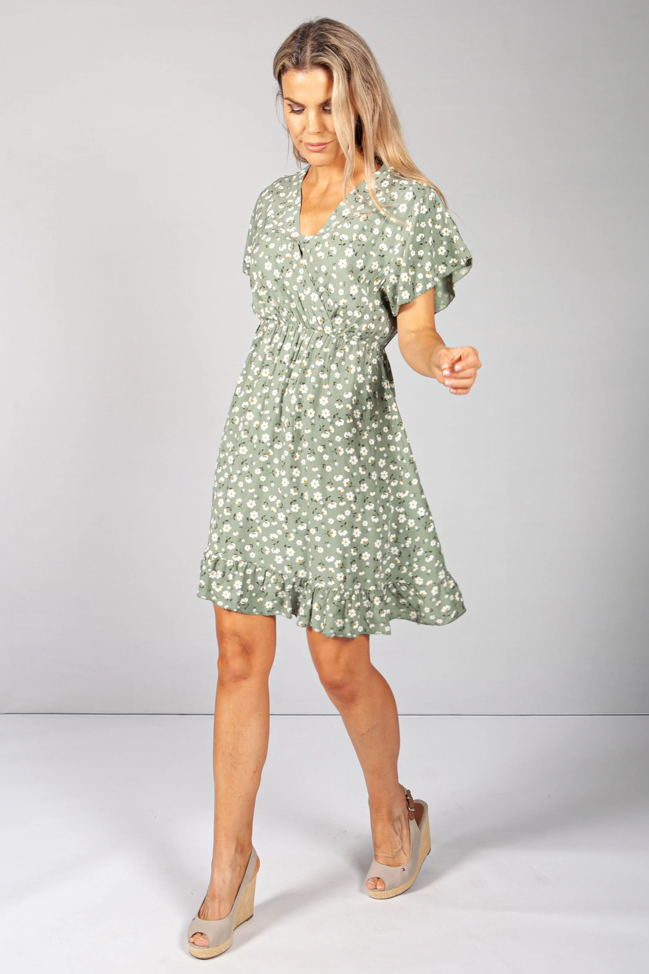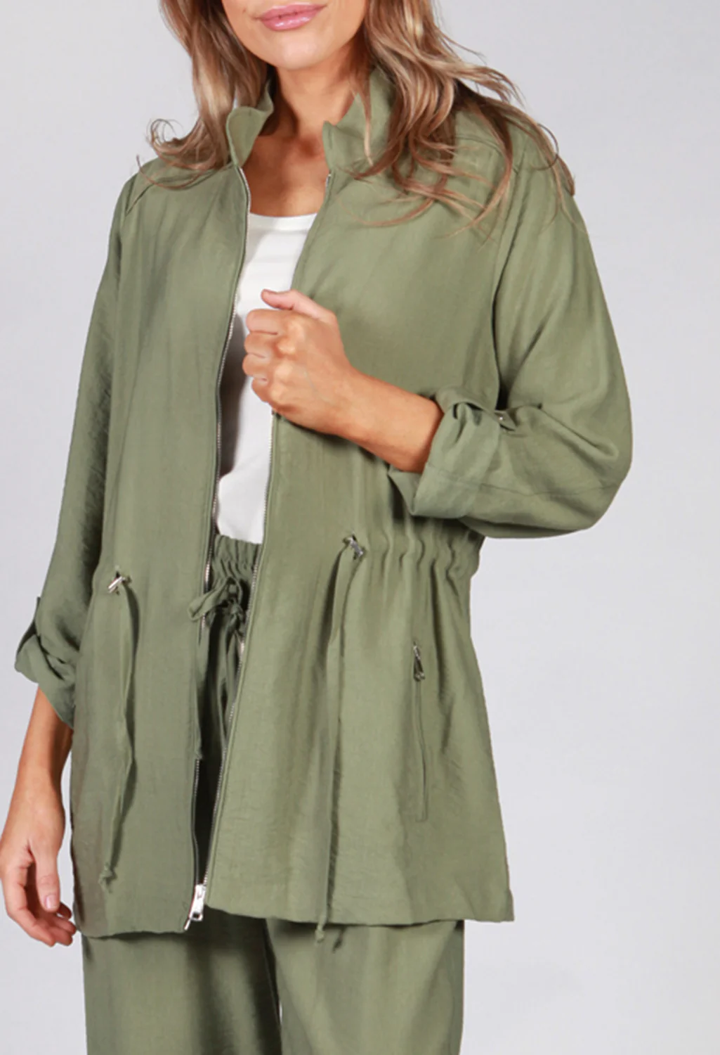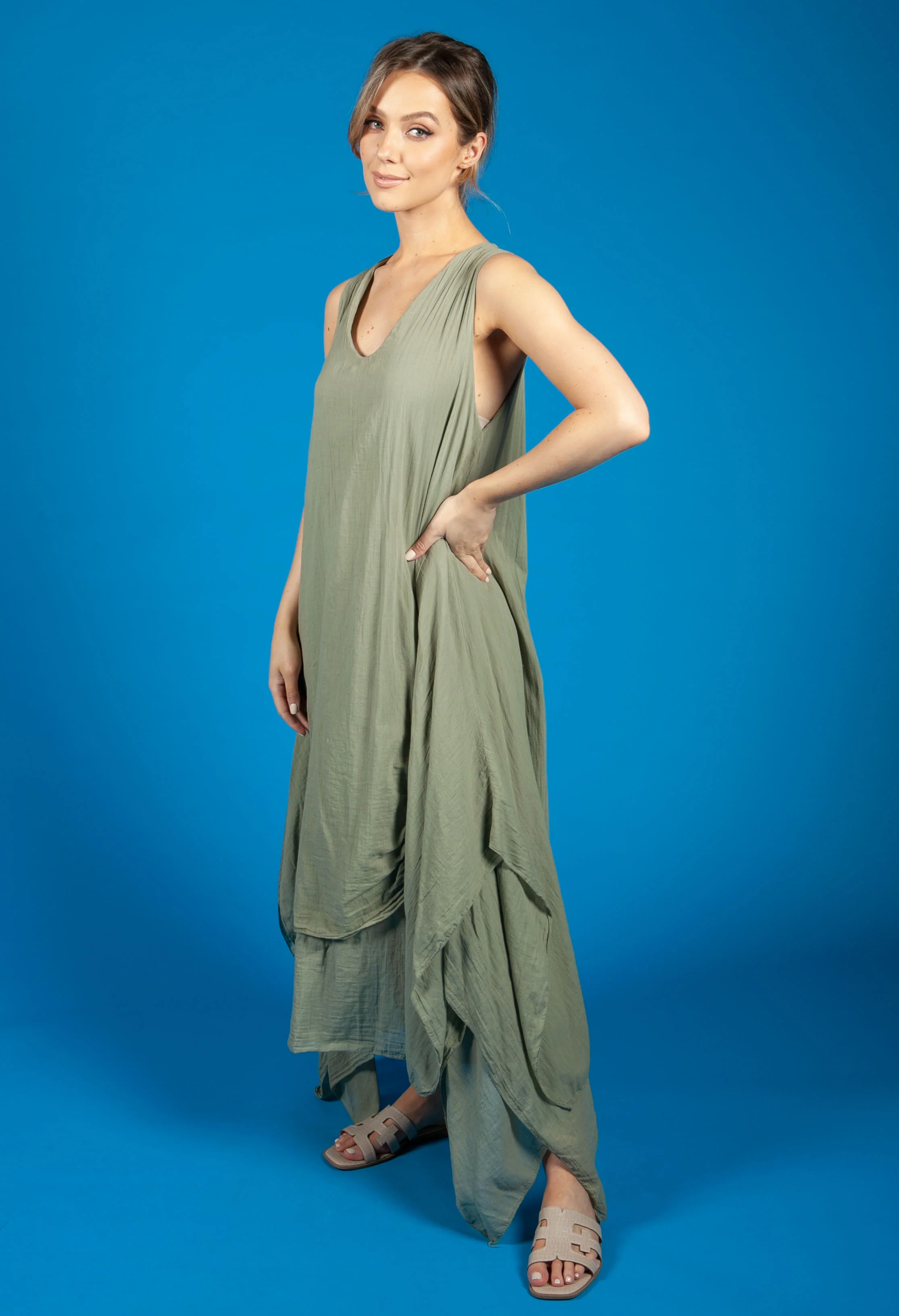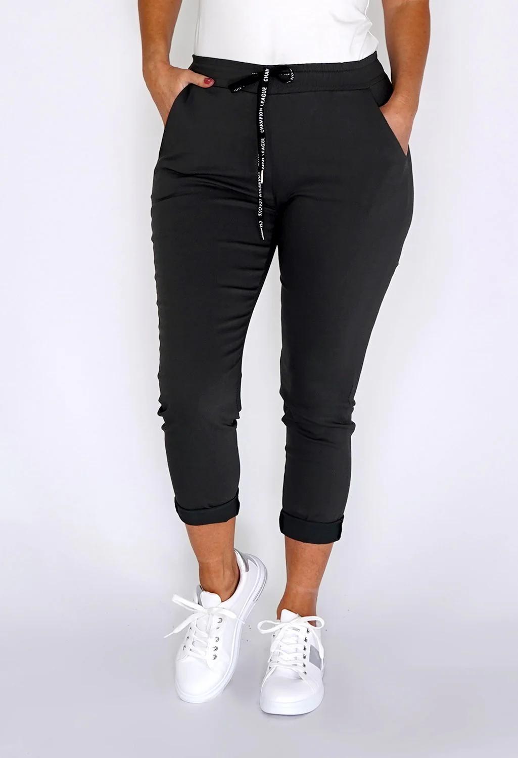 KHAKI GREEN MAGIC SHAPE CAPRIS WITH DIAMANTE DETAIL