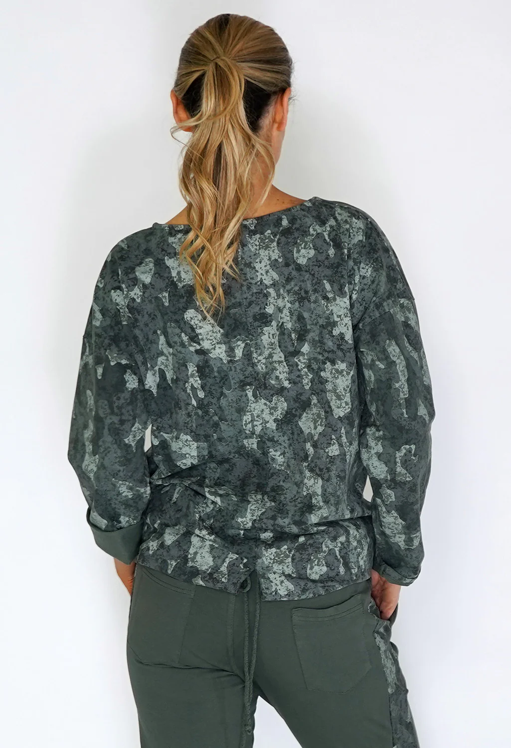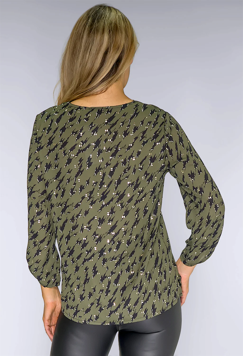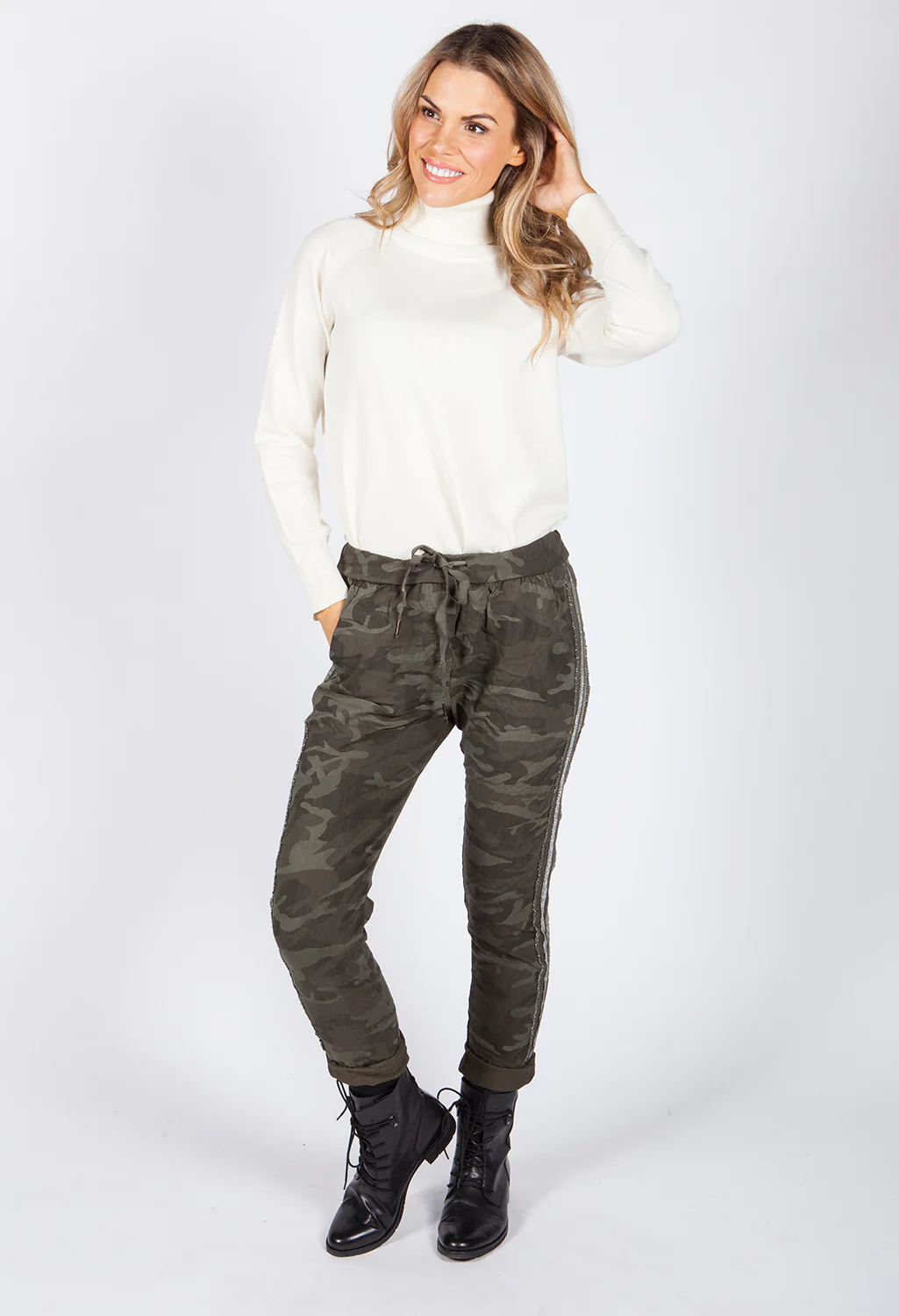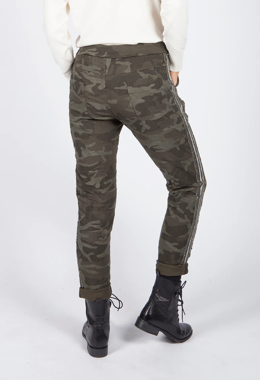 Khaki Camouflage Joggers with Silver Glitter Stripes