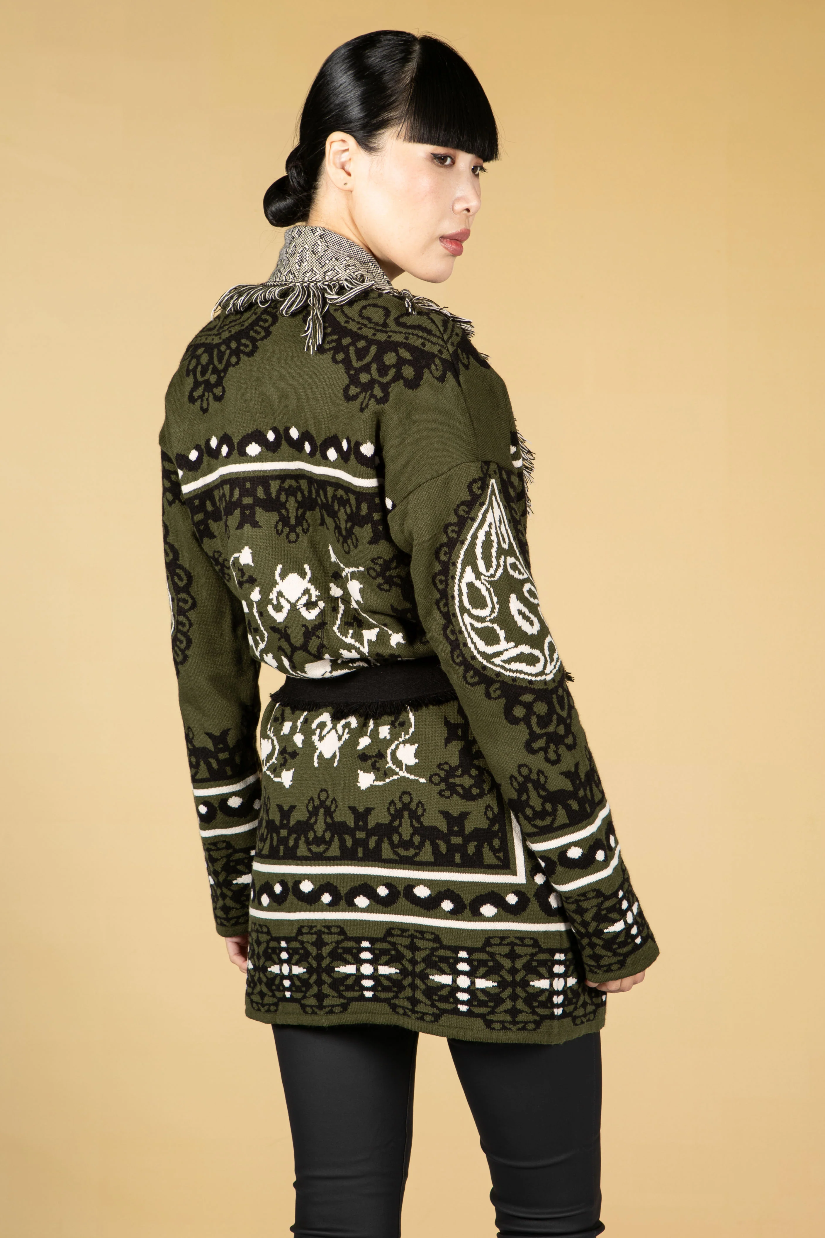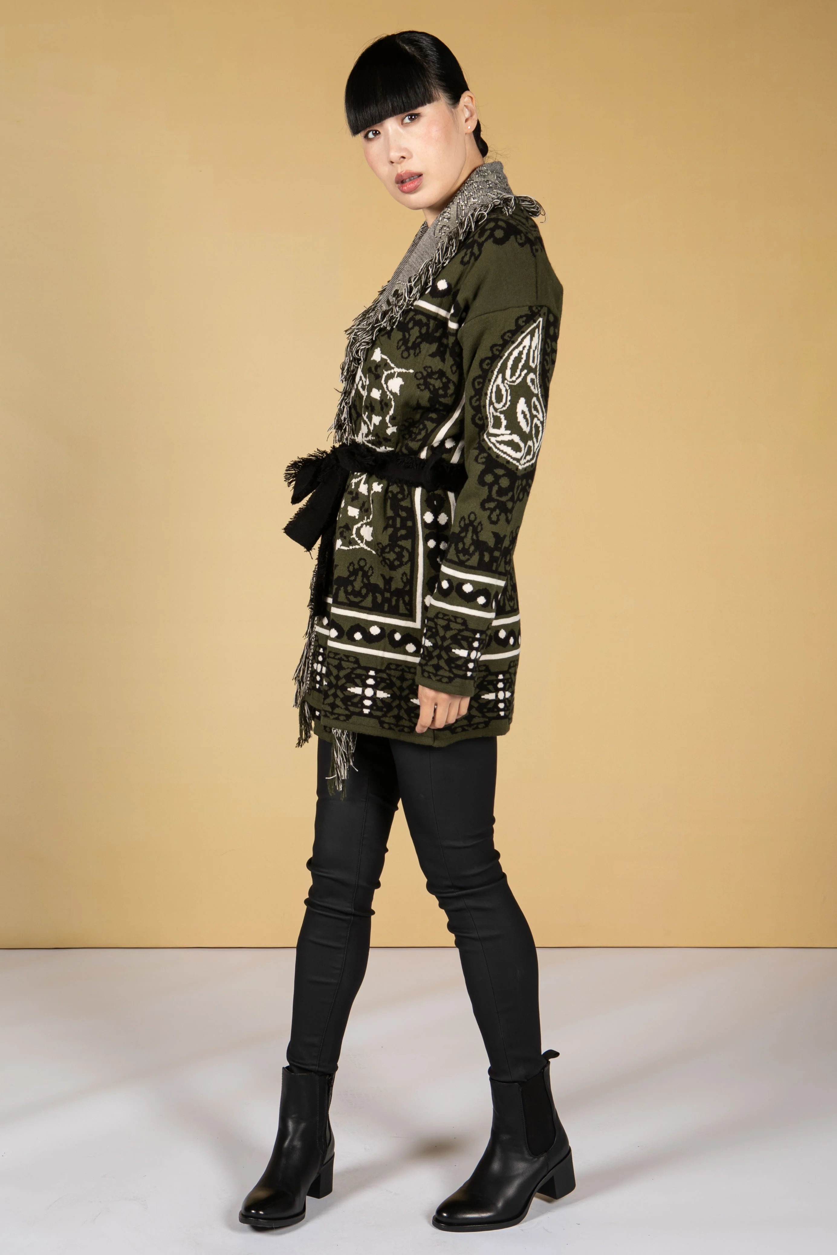 JACQUARD ABSTRACT DESIGN LONG LINE JACKET