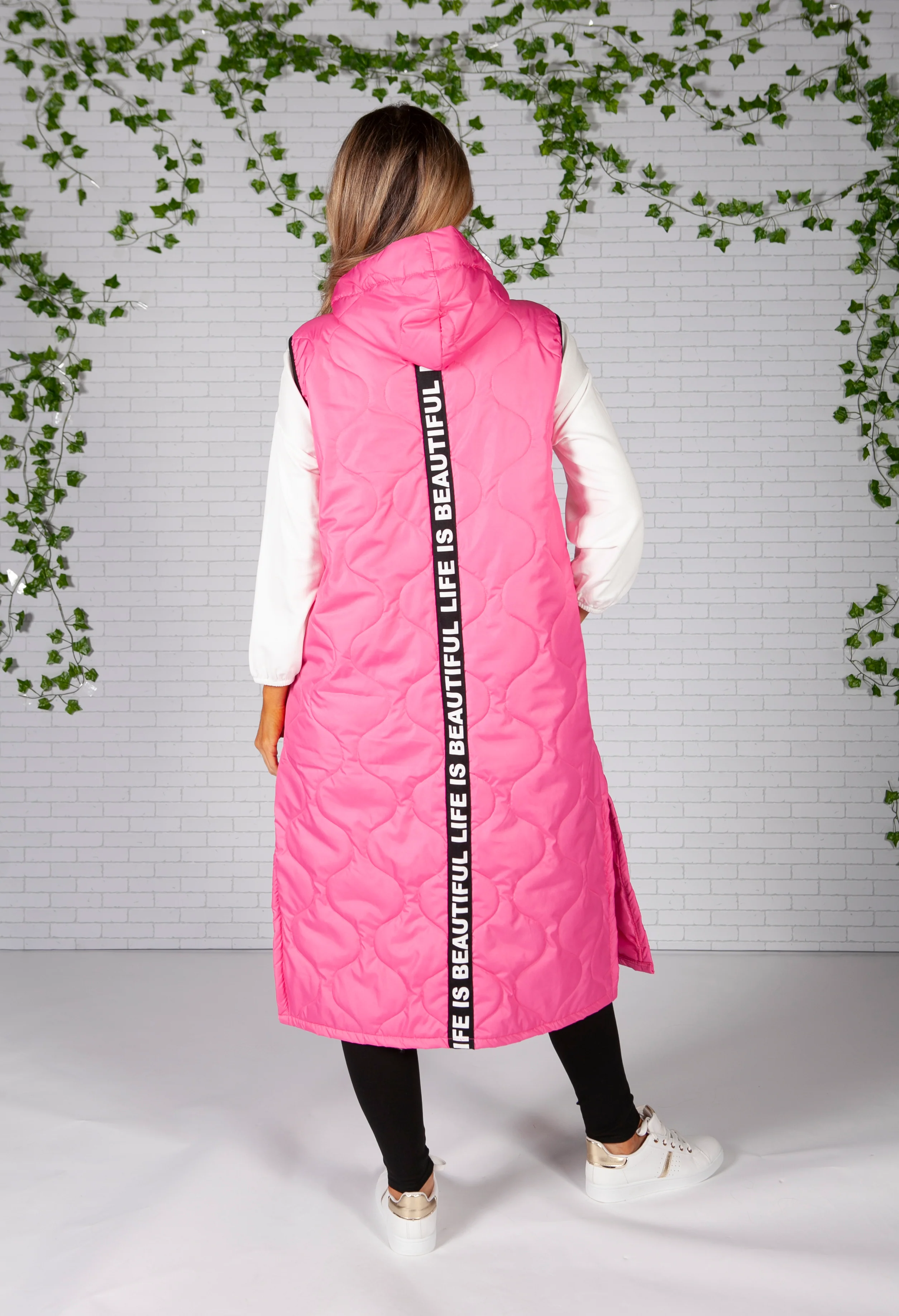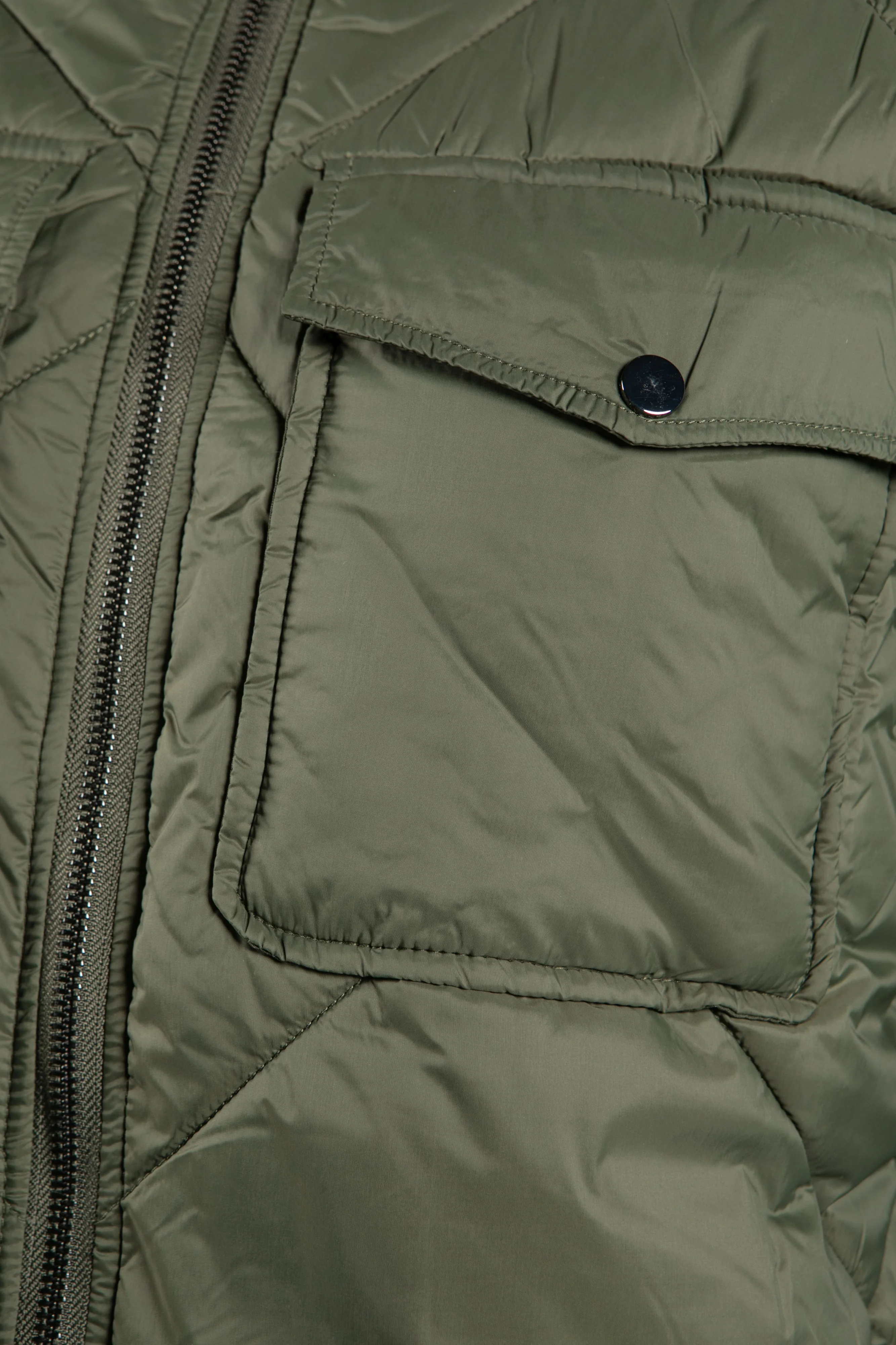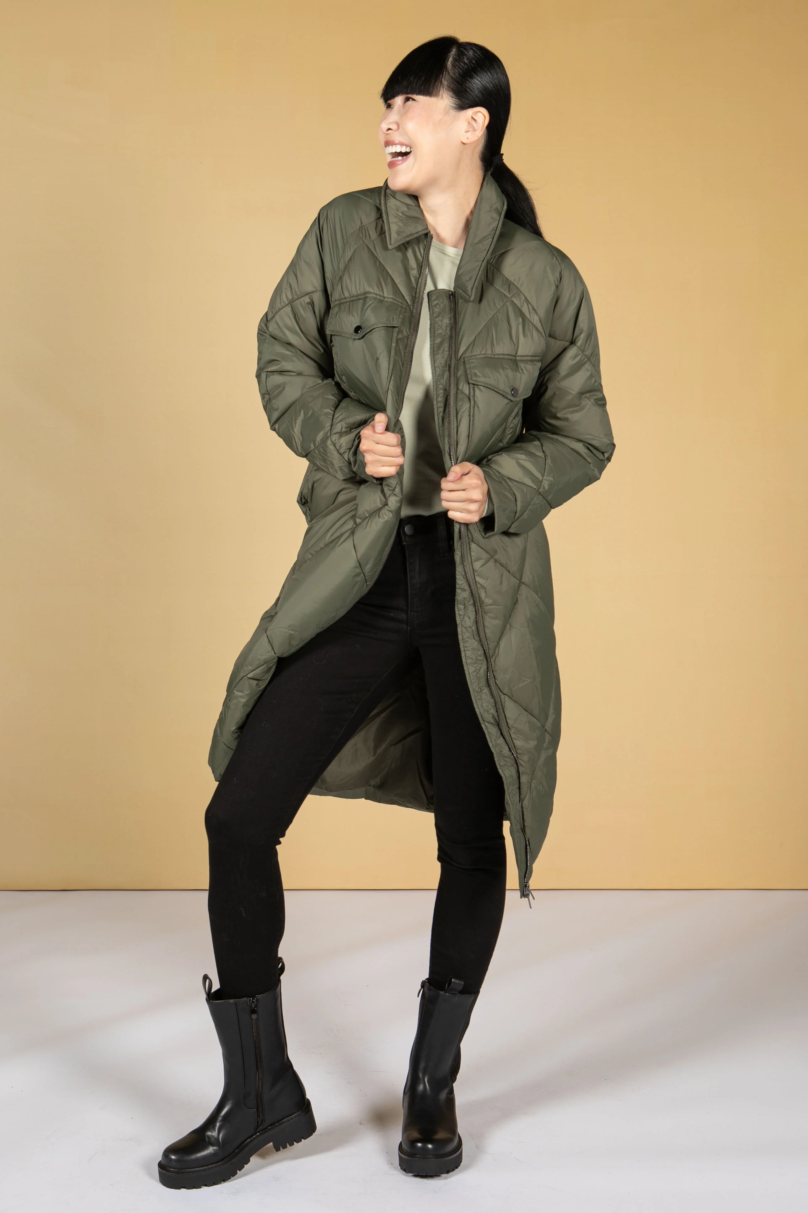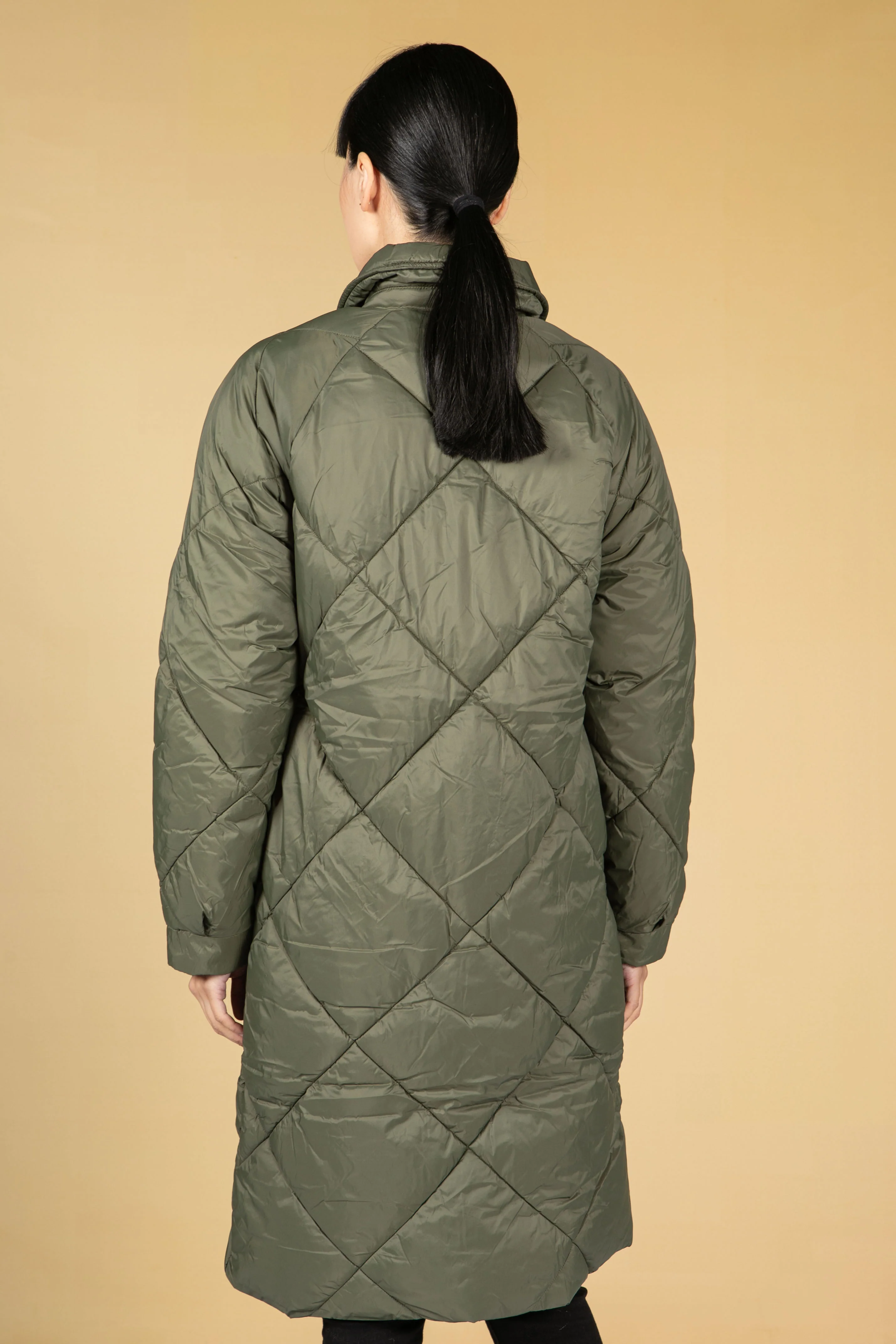 Hoodless Quilted Long-Line Coat in Khaki Green