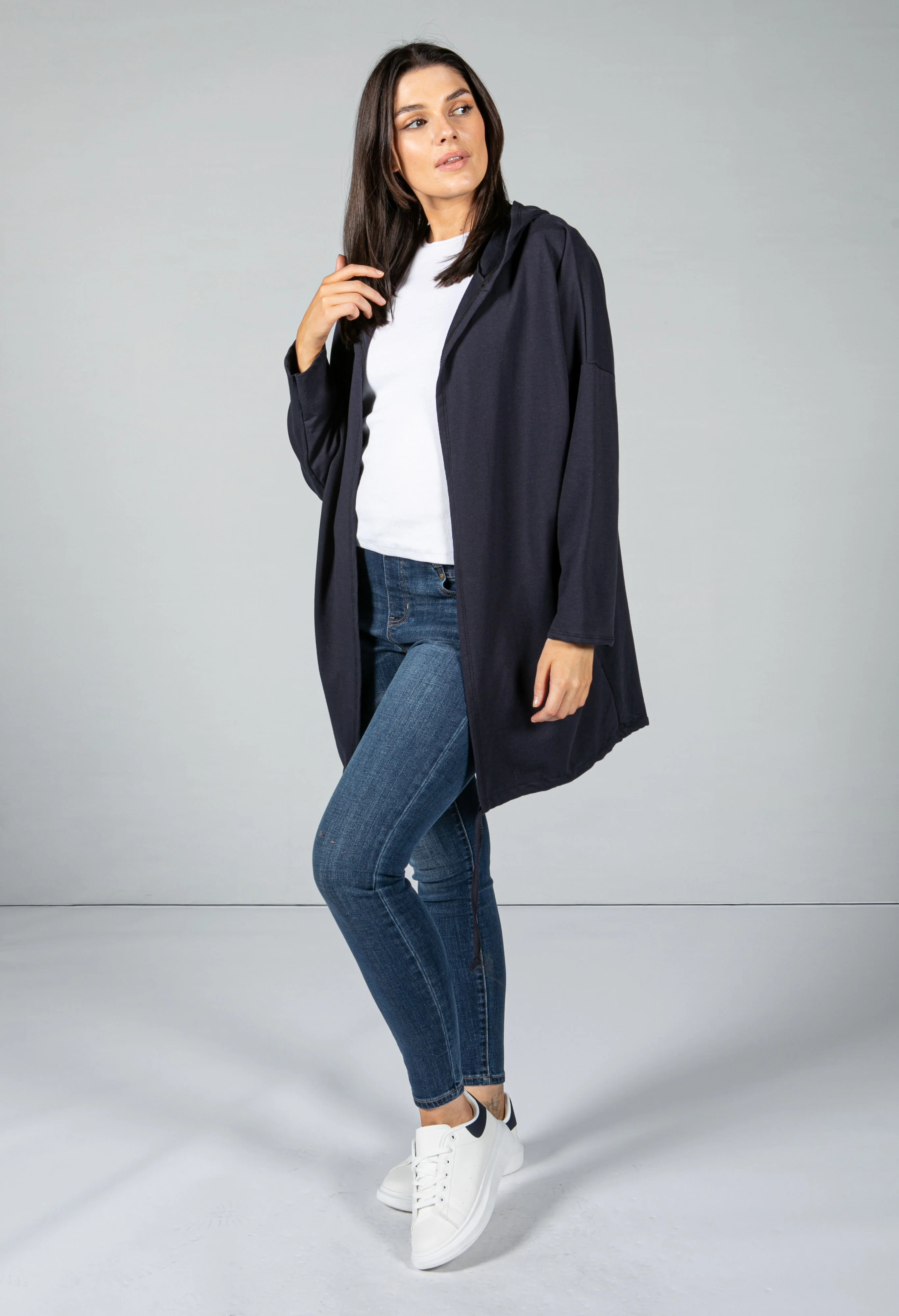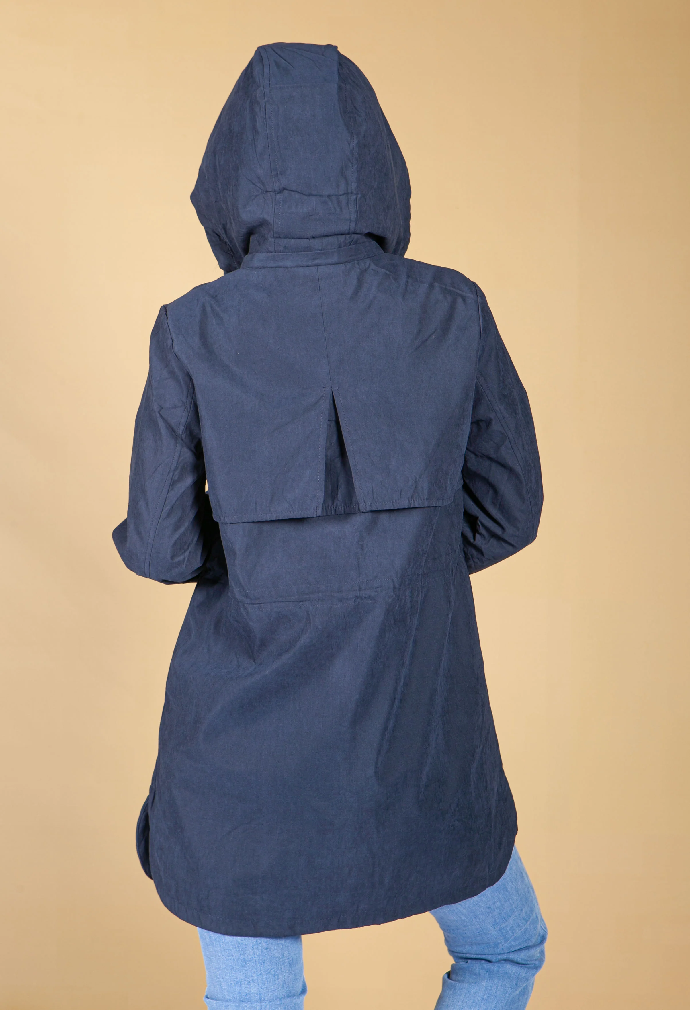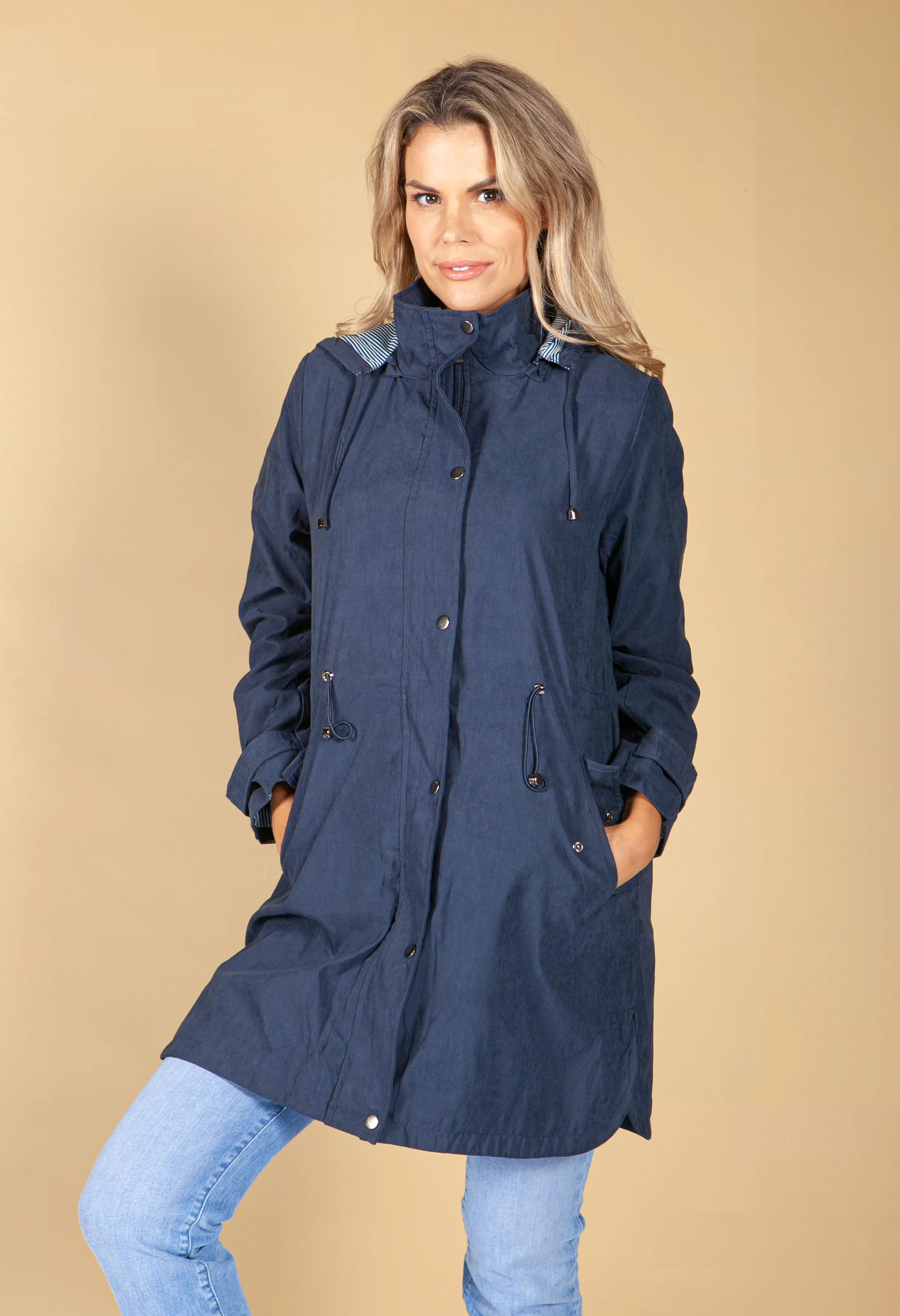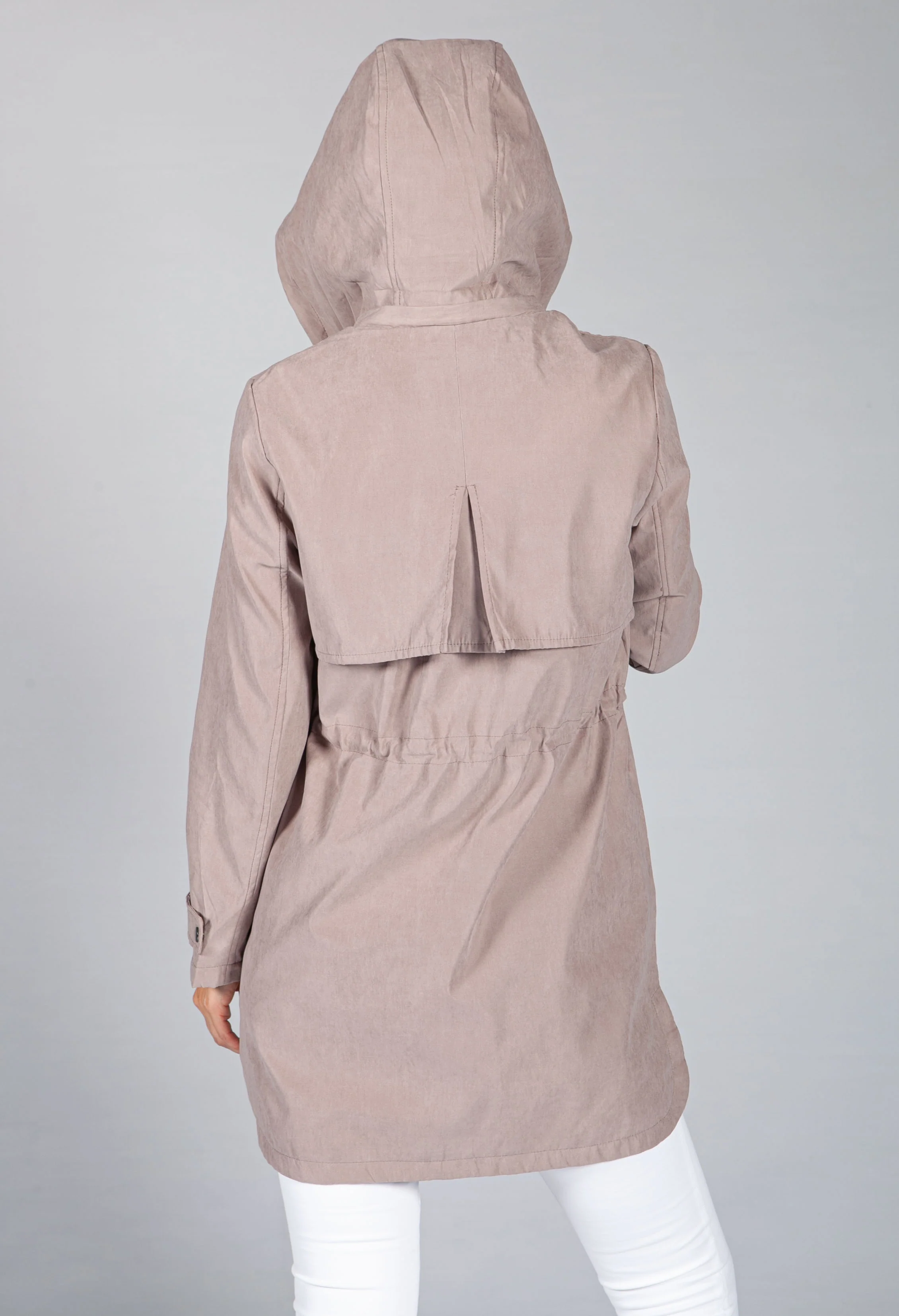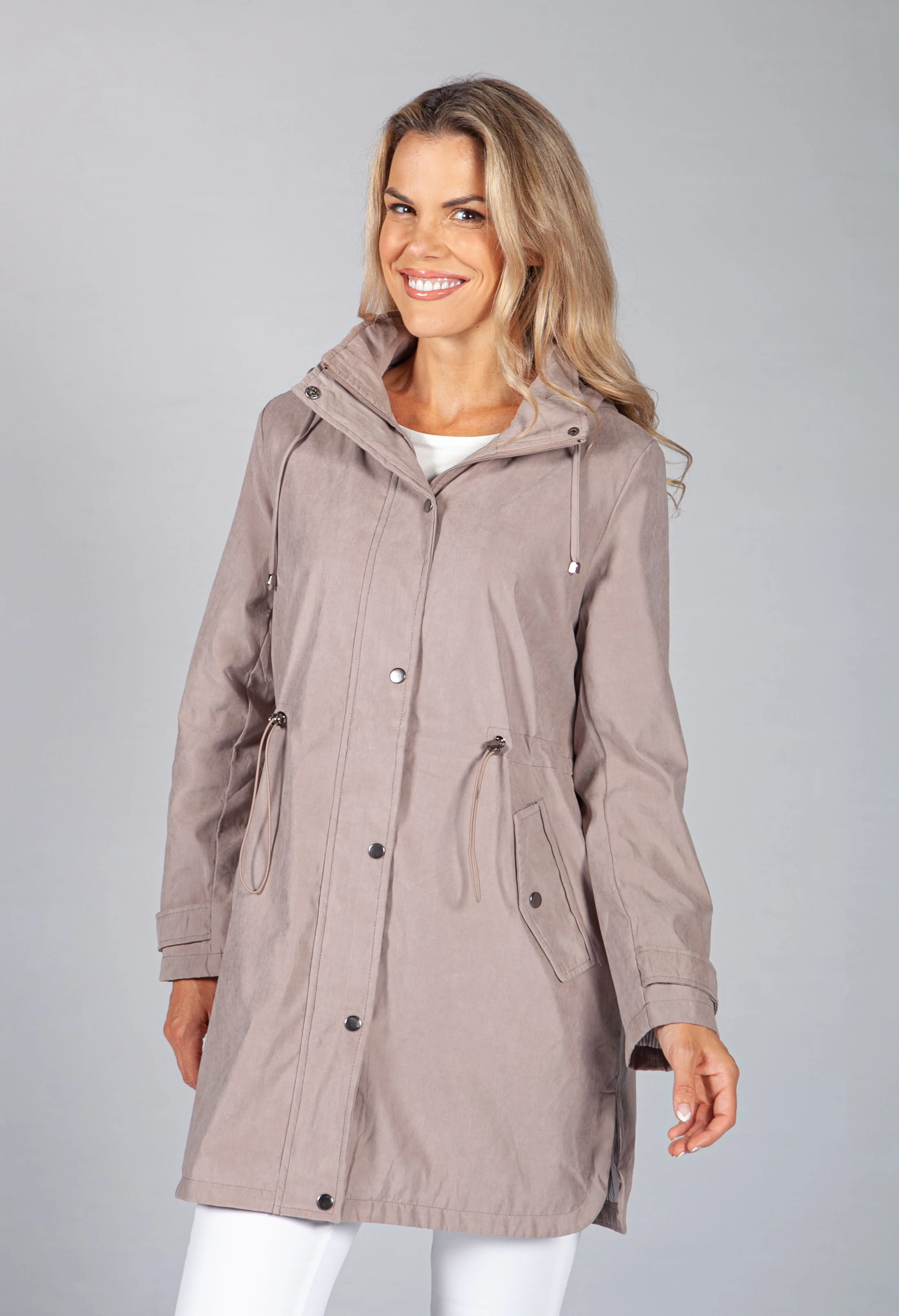 Hoodless Quilted Long-Line Coat in Khaki Green