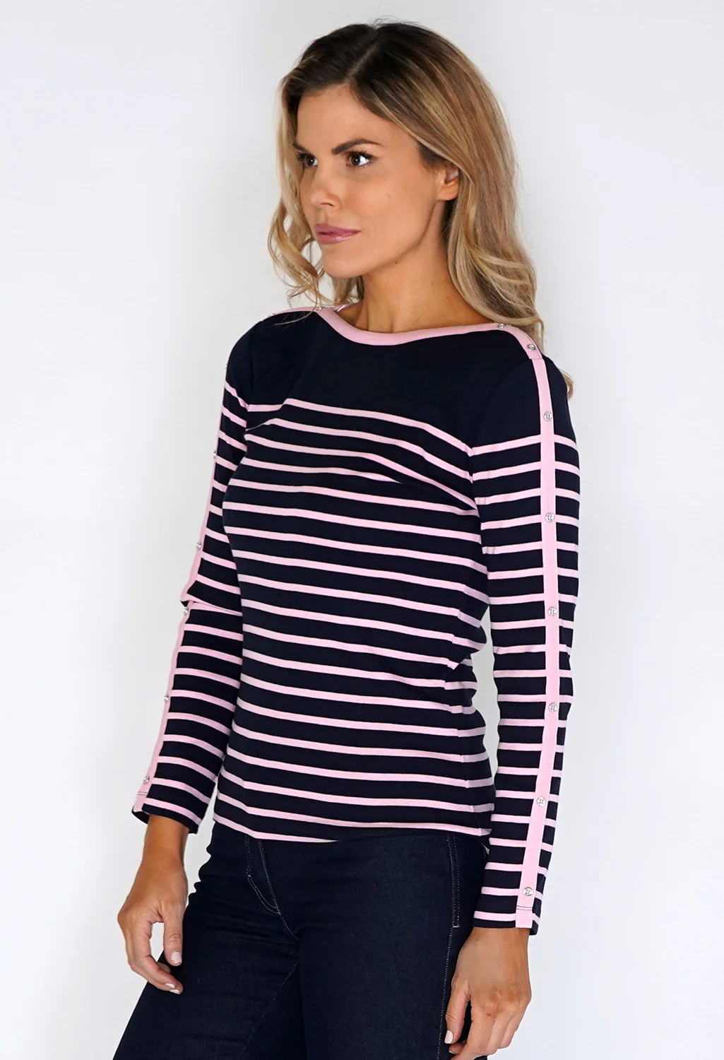 HERITAGE STRIPE MIX TOP WITH SLEEVE DETAIL