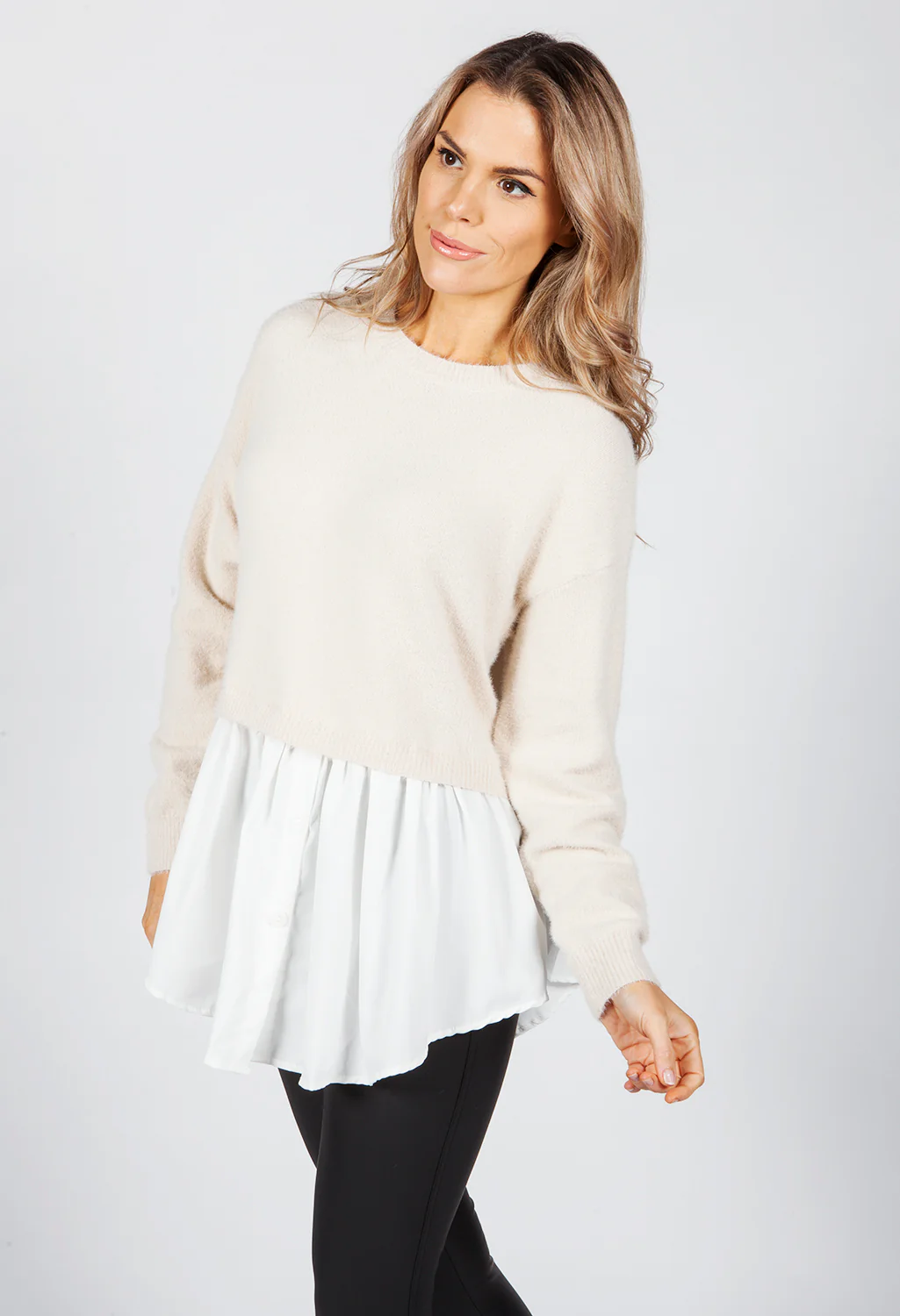 Hazelnut Knit Jumper with Shirt Details